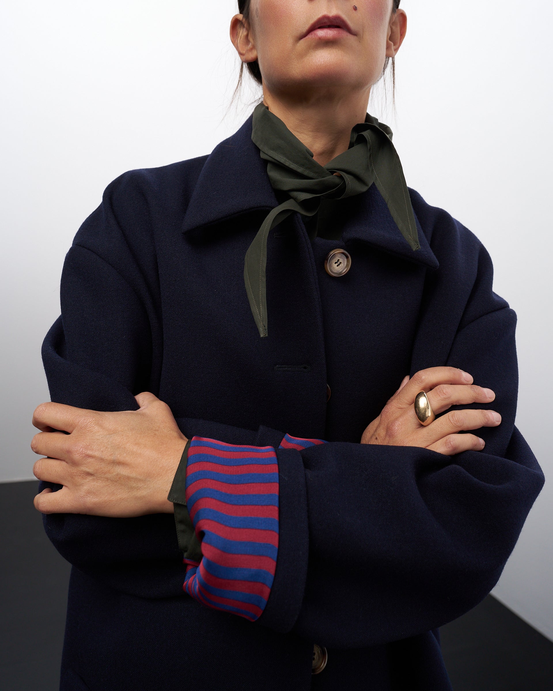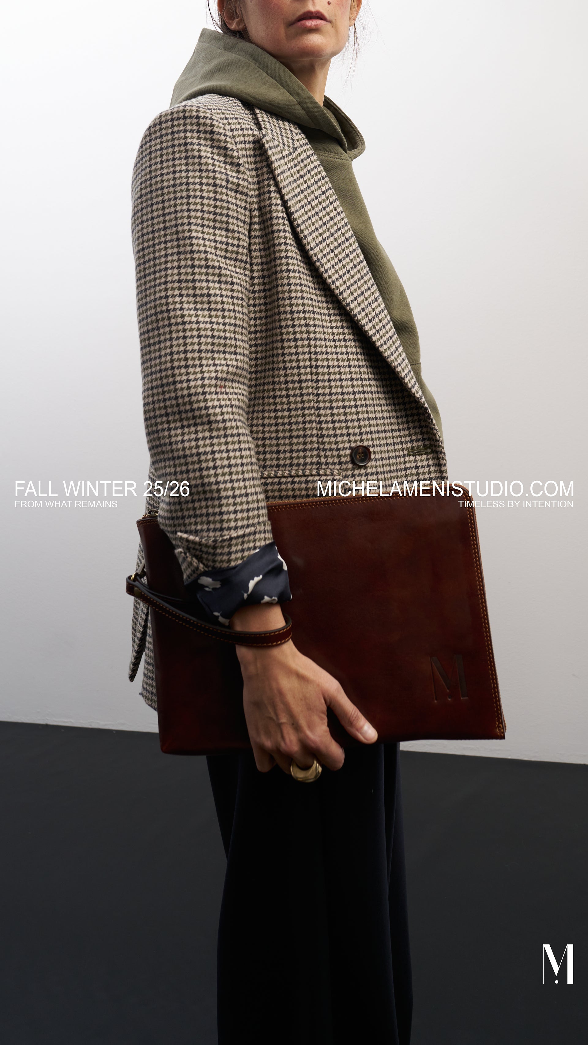 La nuova collezione nasce da tessuti che portano con sé memoria e valore, trasformati in capi essenziali e sofisticati.