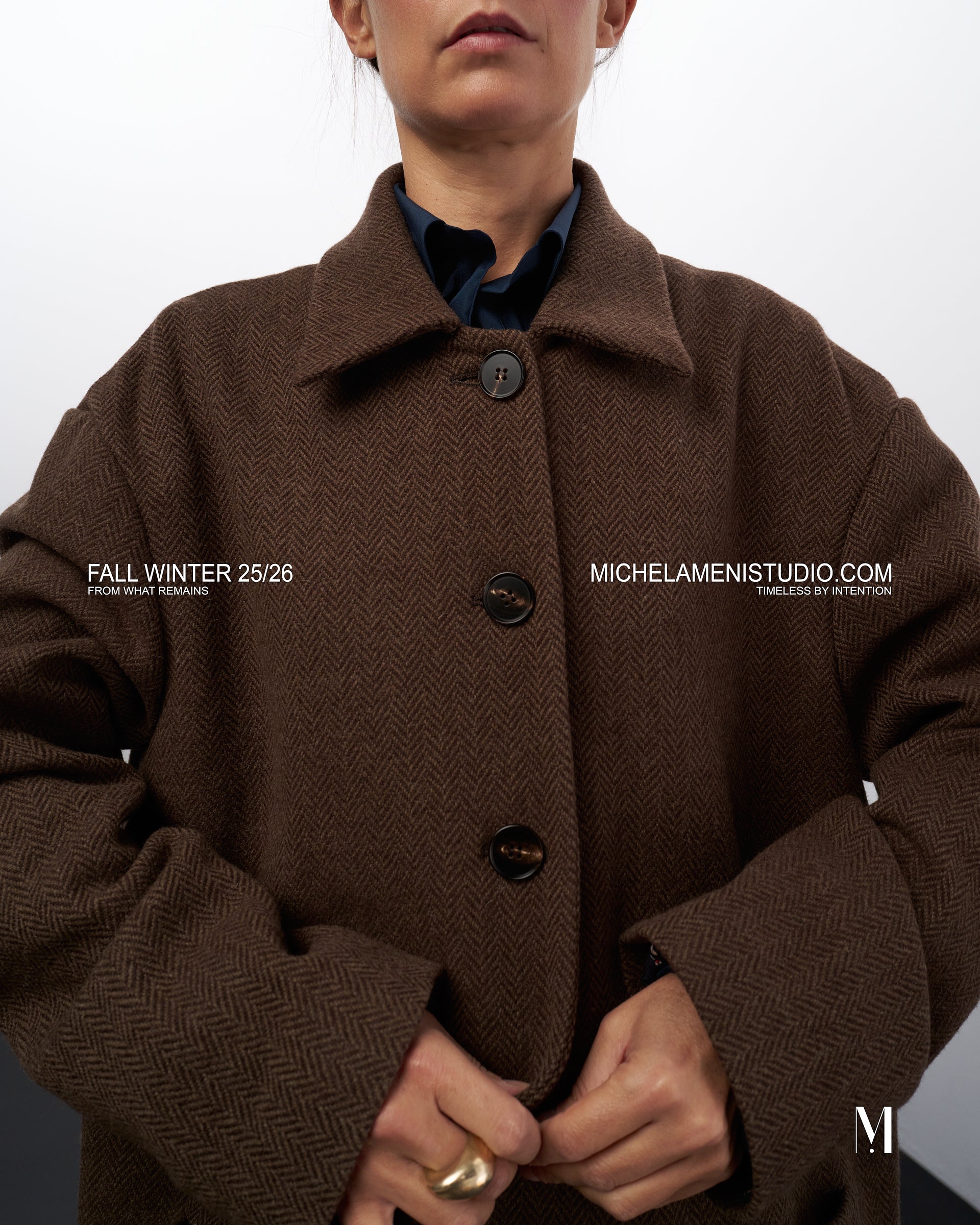 La nuova collezione nasce da tessuti che portano con sé memoria e valore, trasformati in capi essenziali e sofisticati.