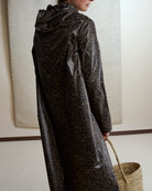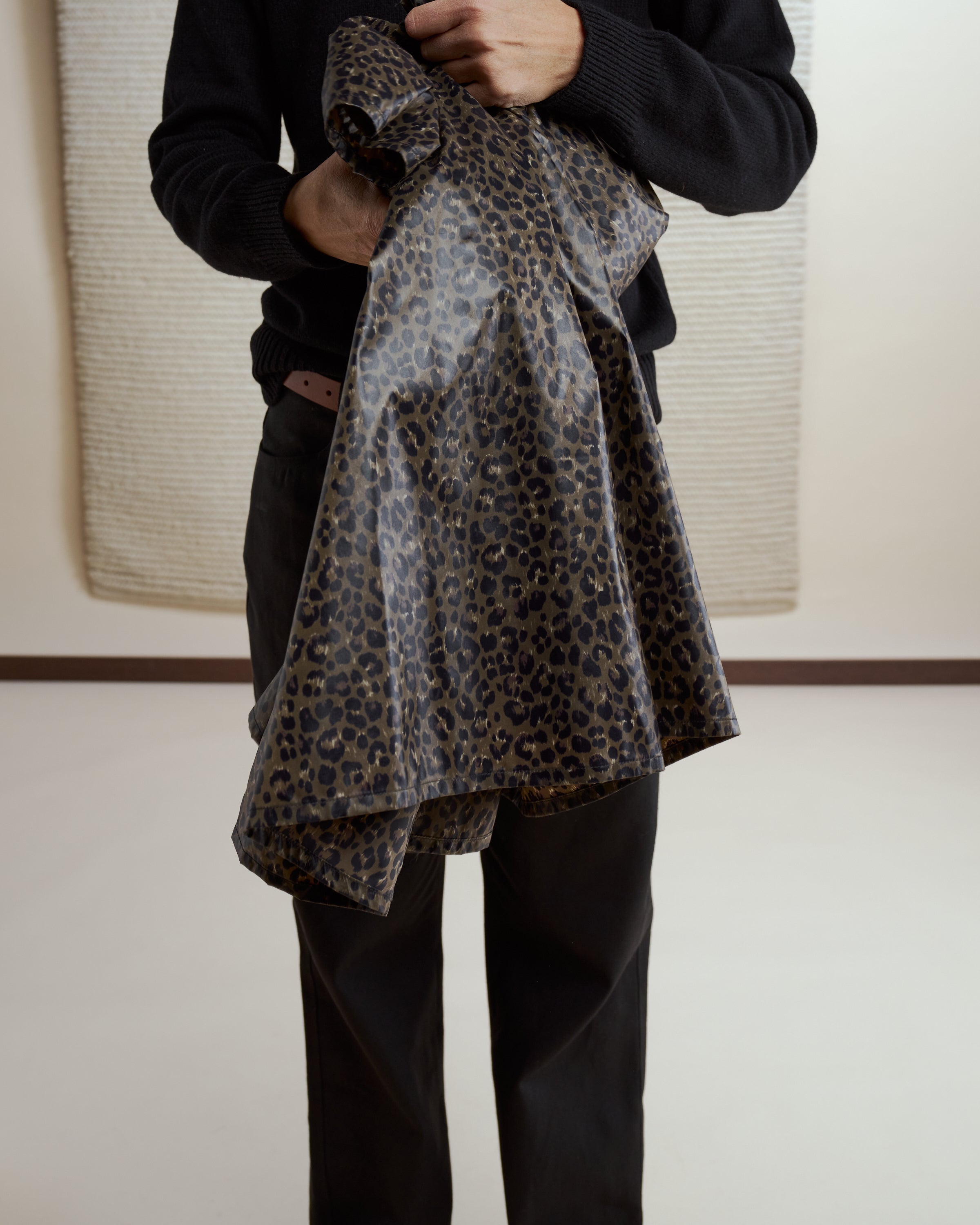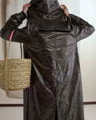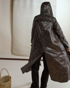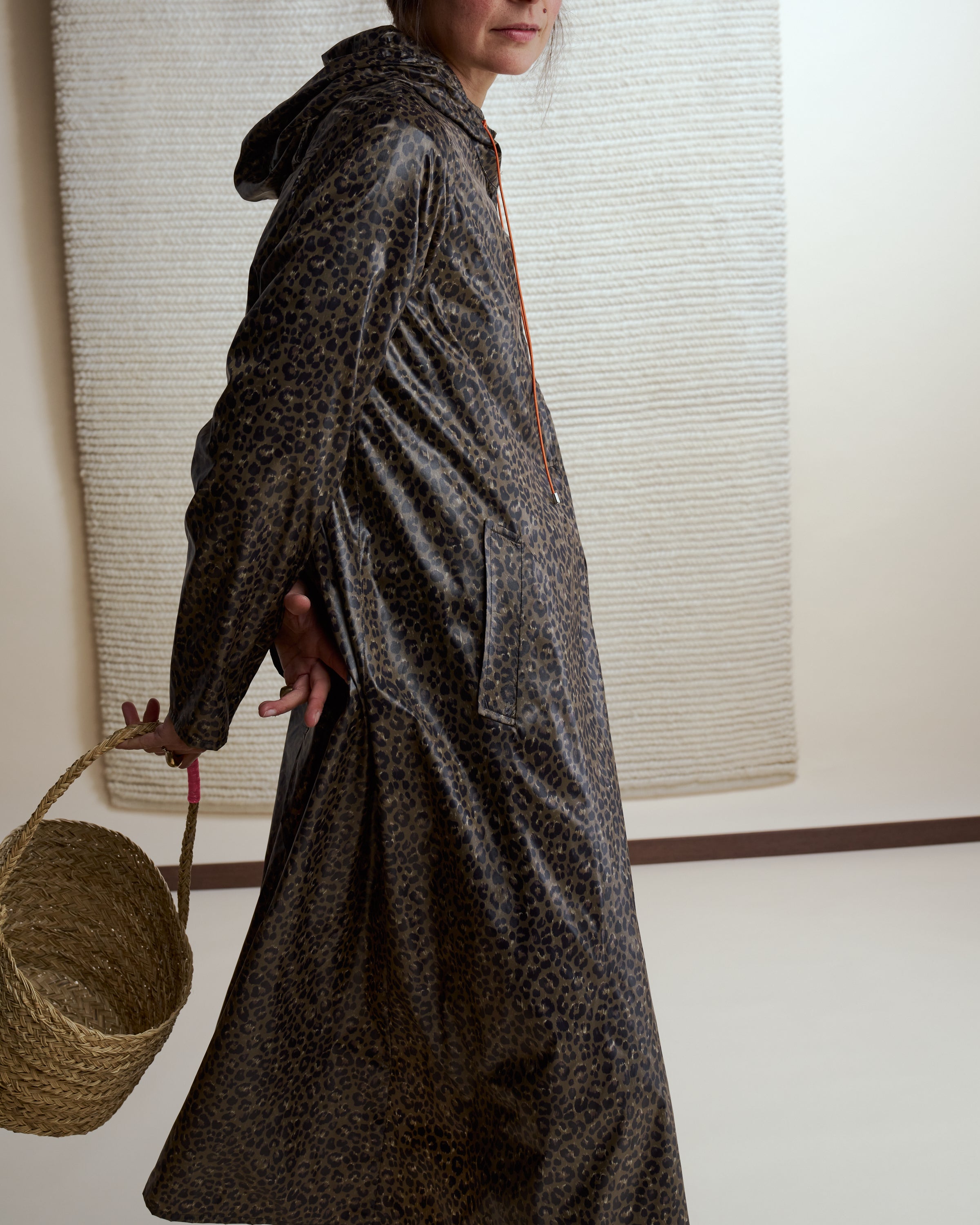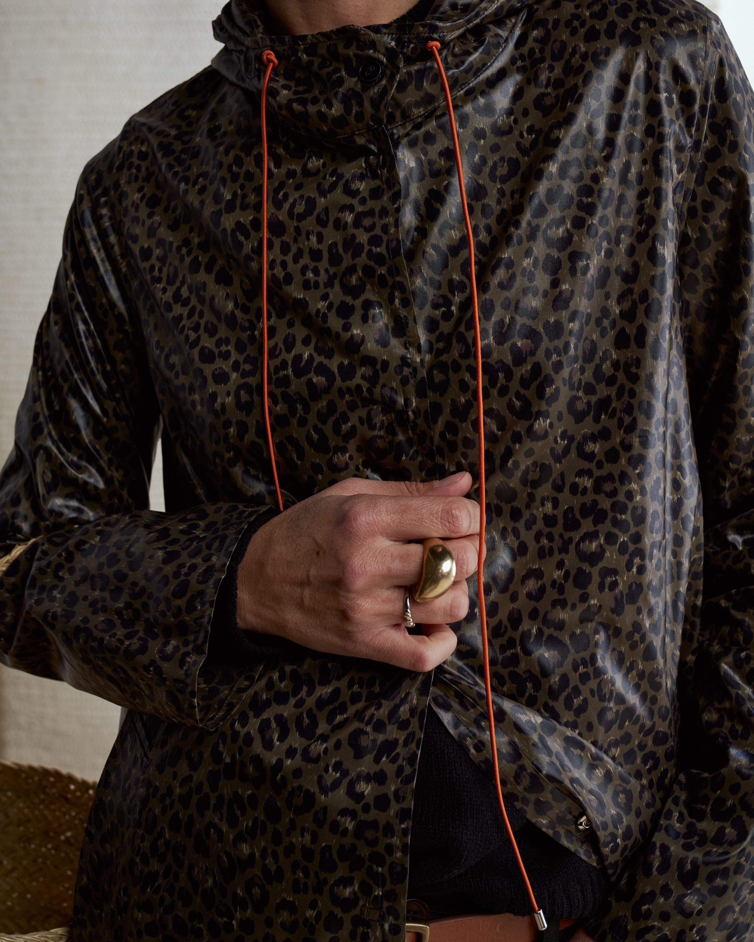 Steve è un impermeabile lungo, con ampio spacco sul retro, allacciato sul davanti e con un cappuccio ampio, chiuso da una coulisse, ma la vera chicca è una tasca sul retro che diventa una pochette dove ripiegare il capo per metterlo comodamente in borsa.