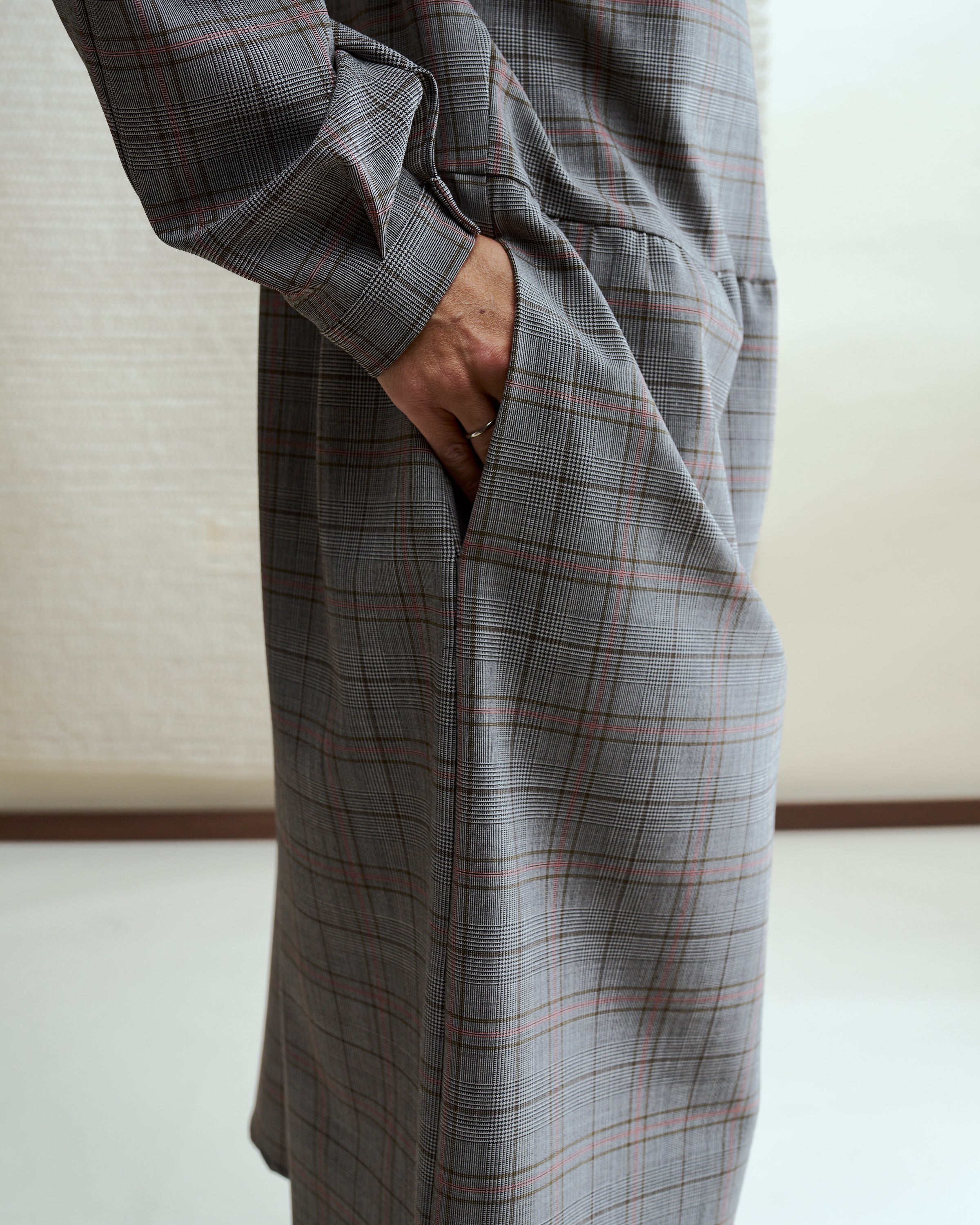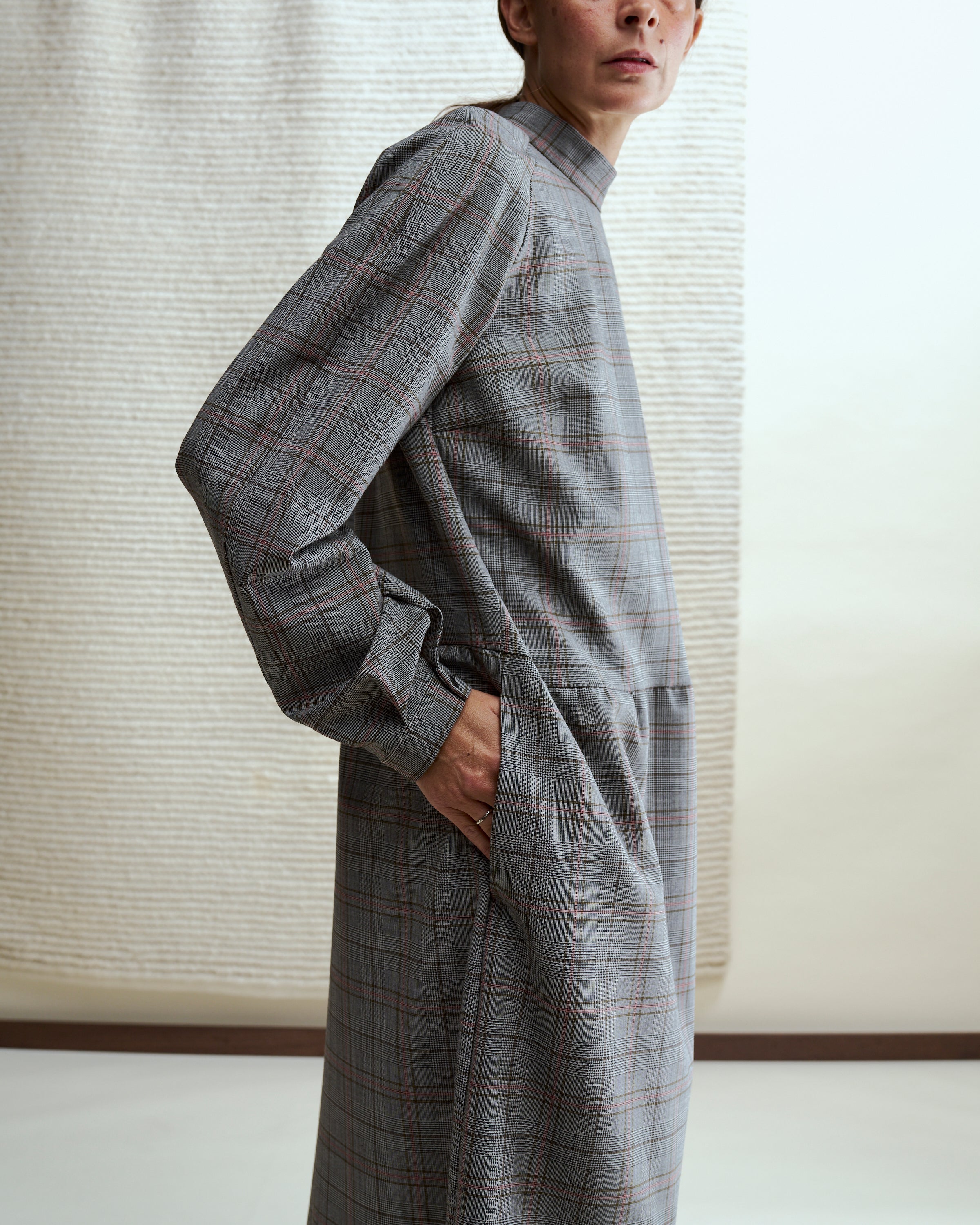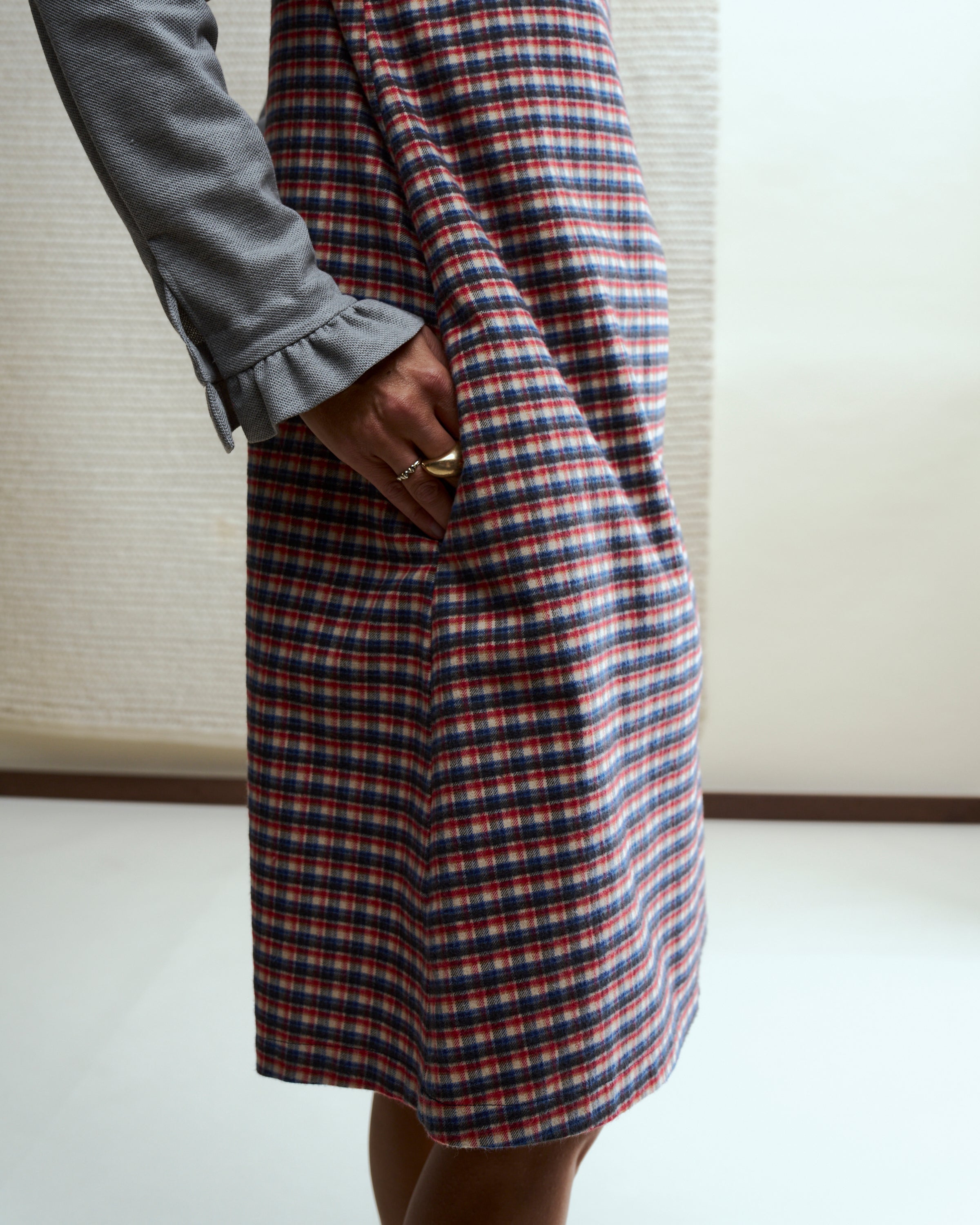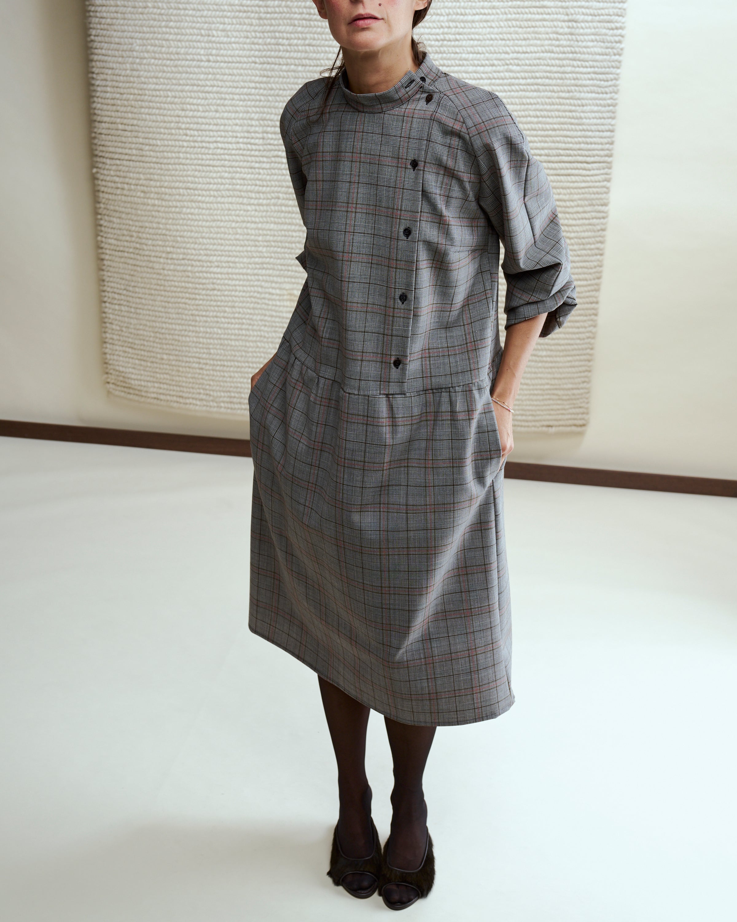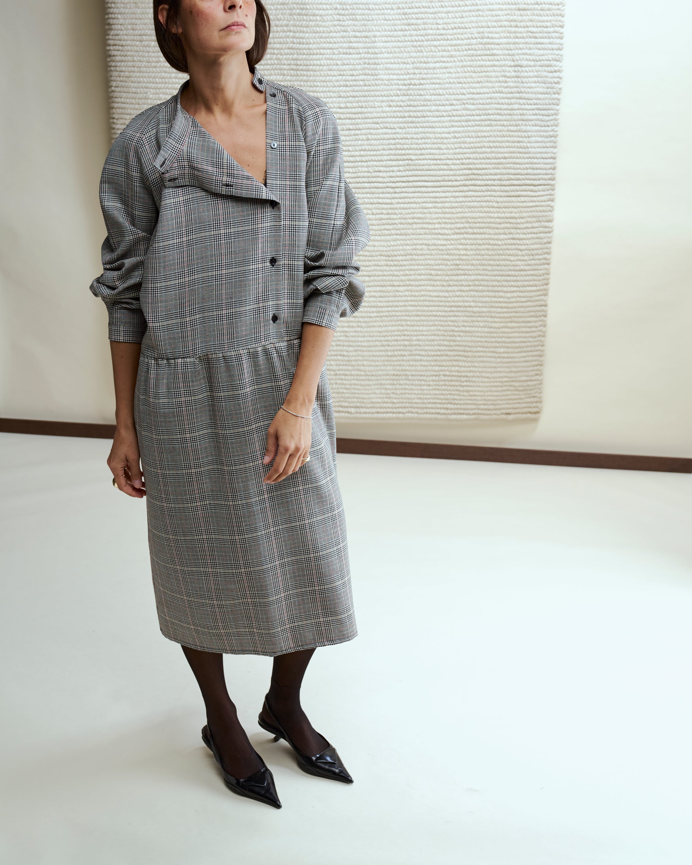 Abito Luisa | Fresco di Lana Principe di Galles Riga Azzurra