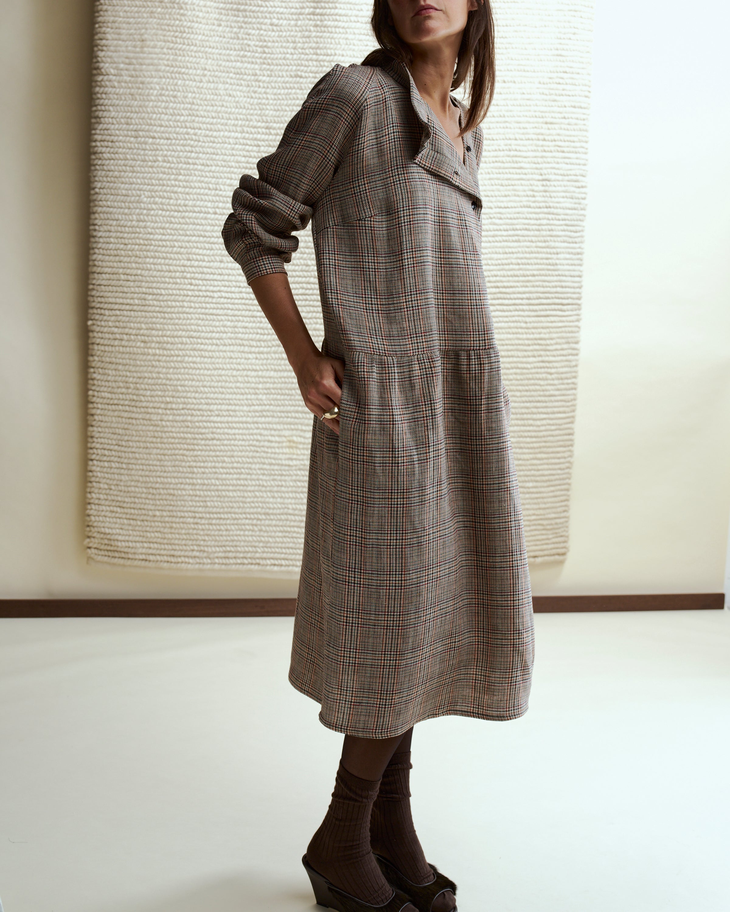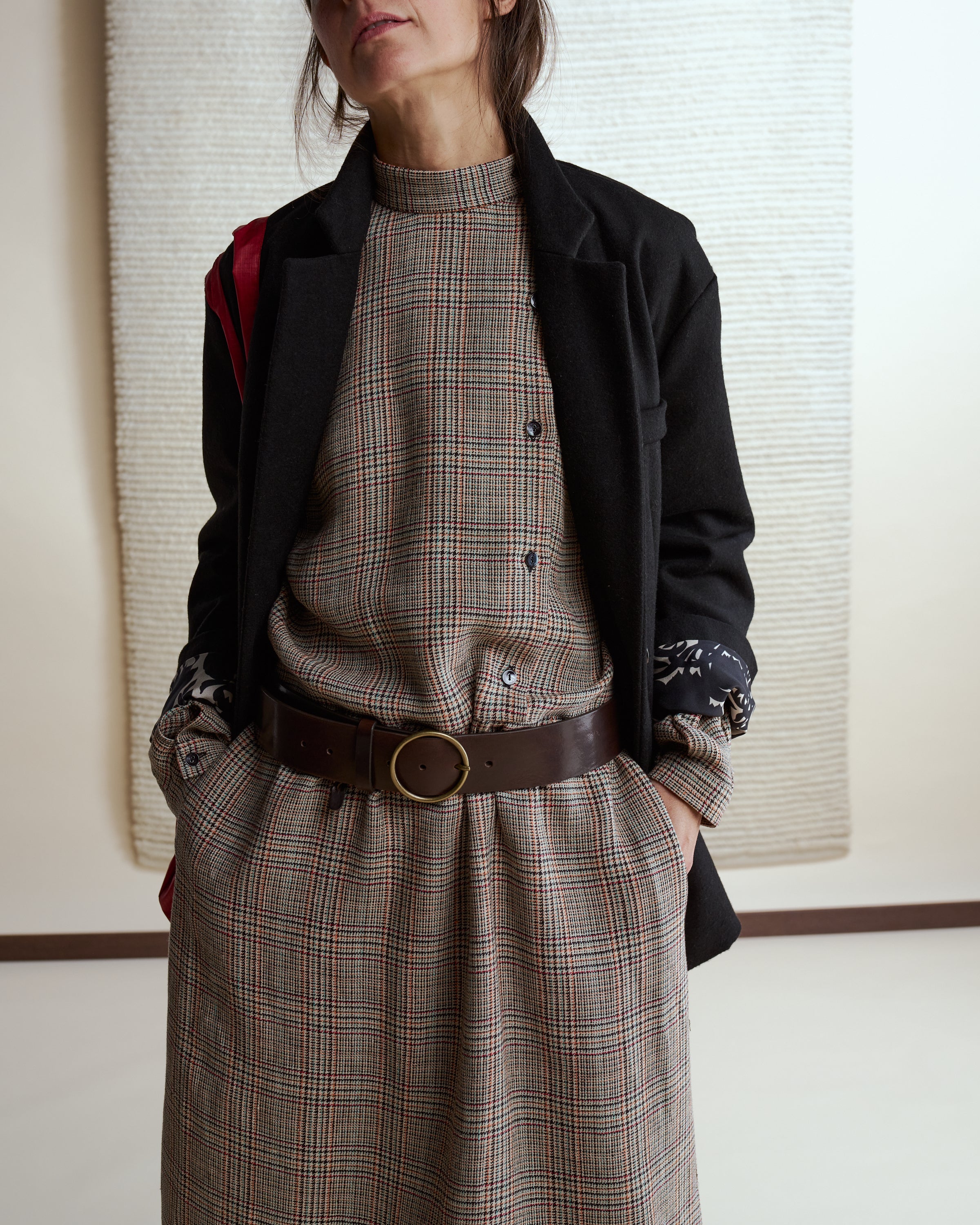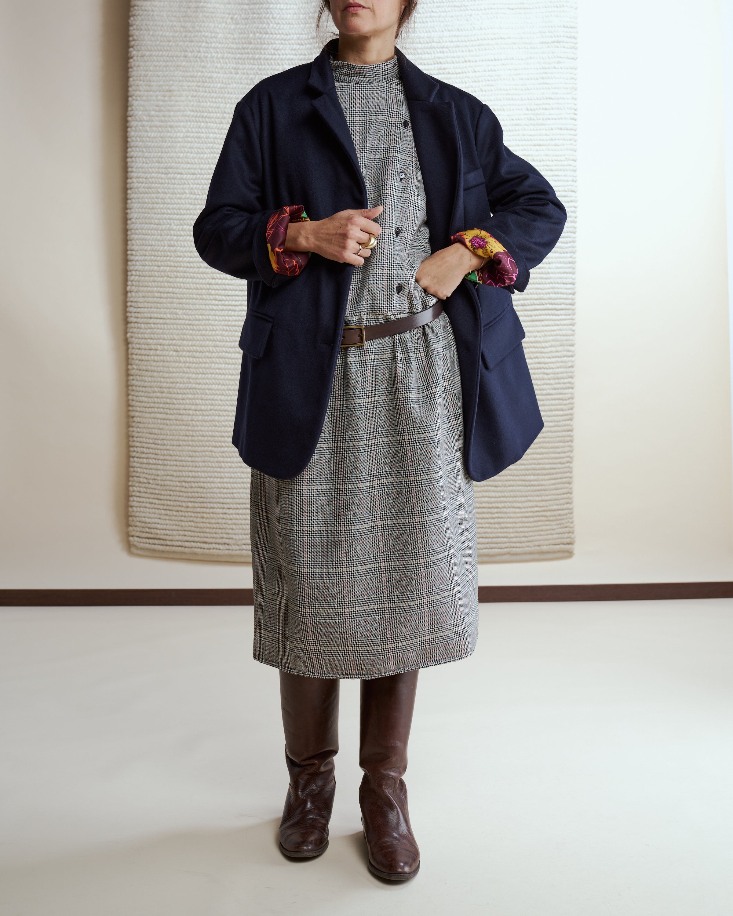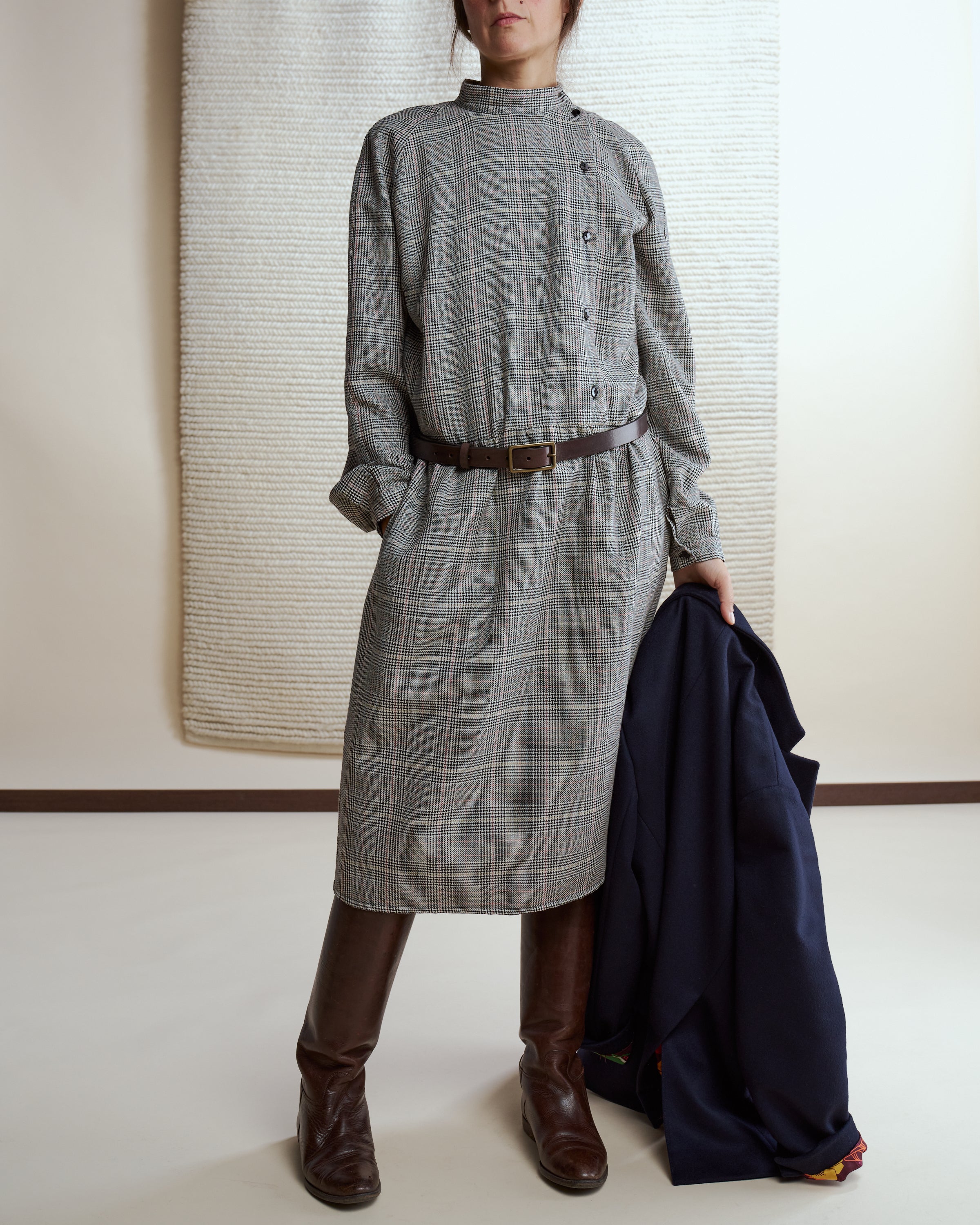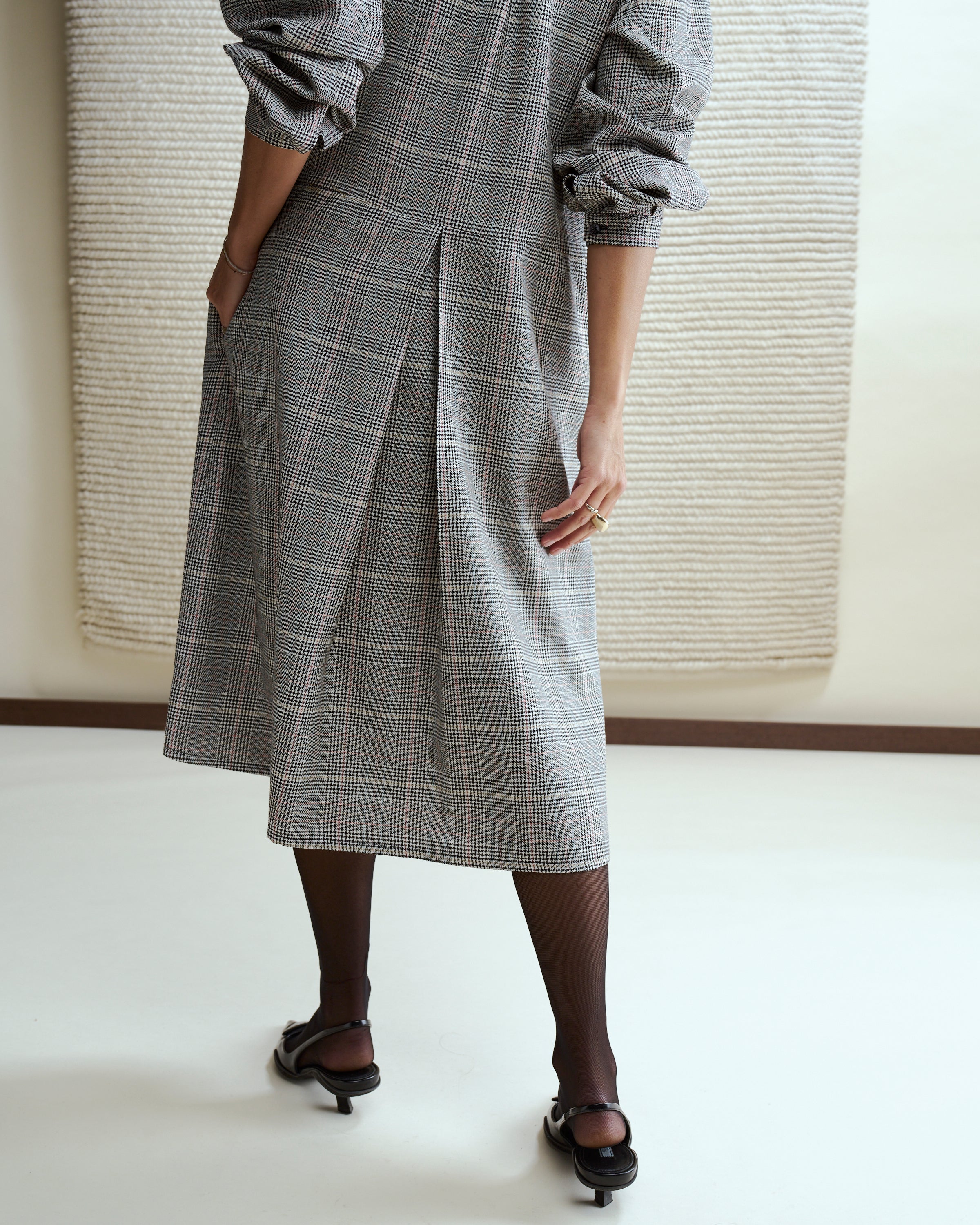 Abito Luisa | Fresco di Lana Principe di Galles Riga Azzurra