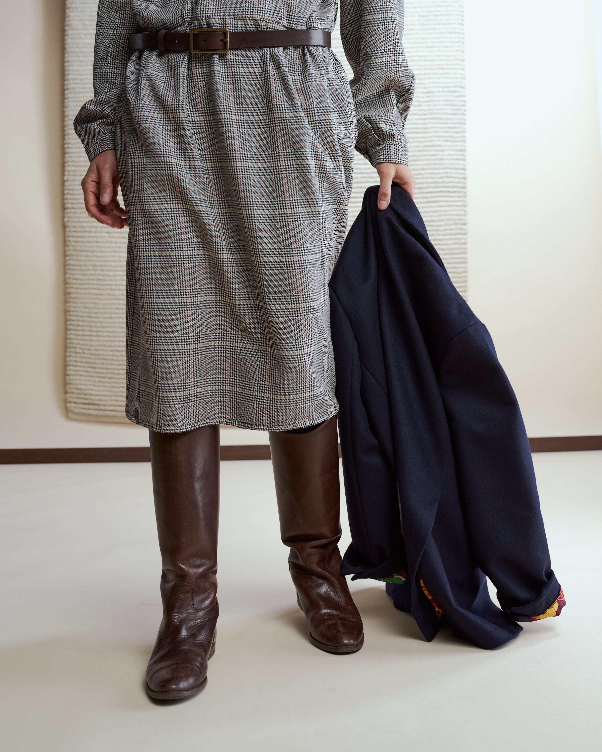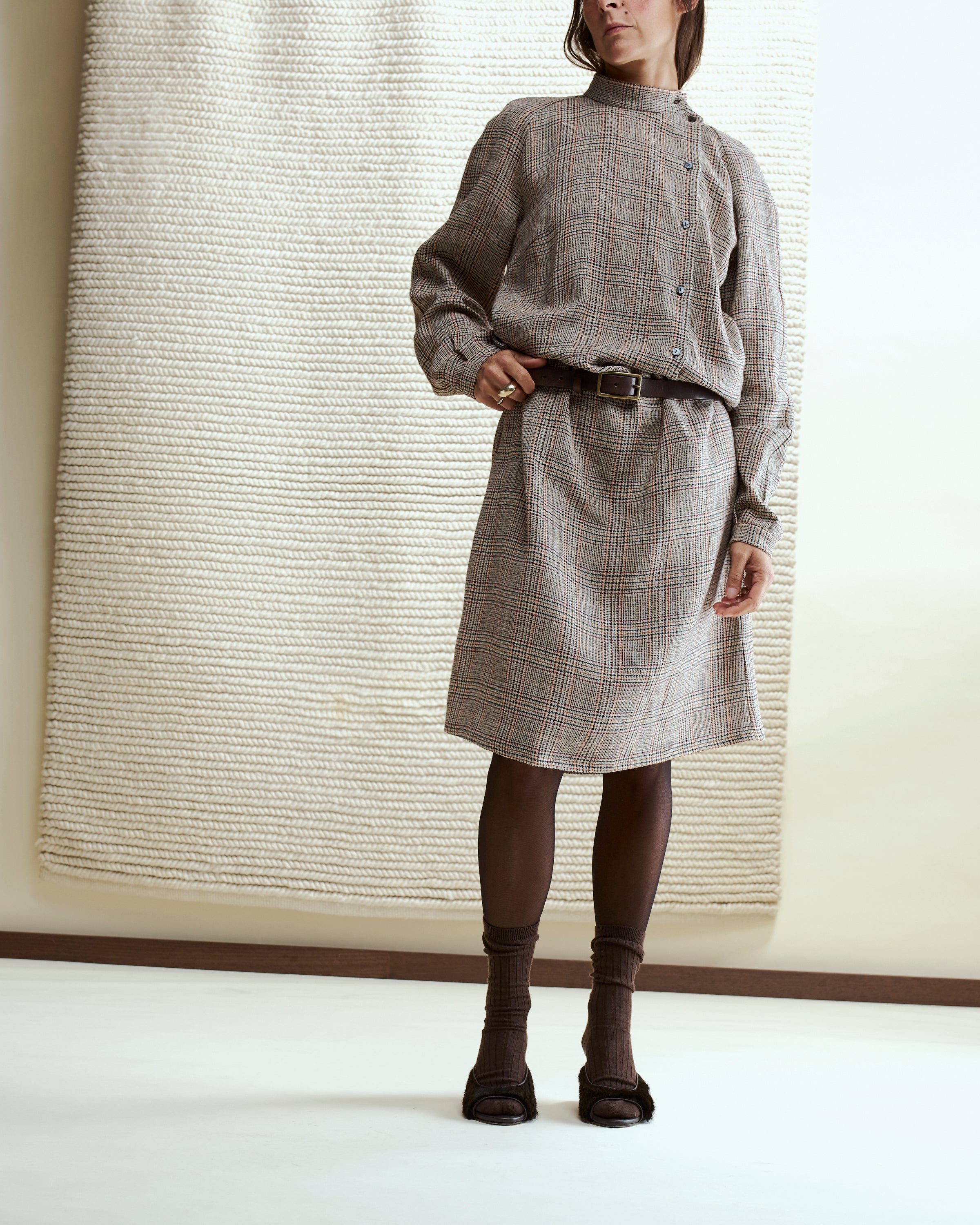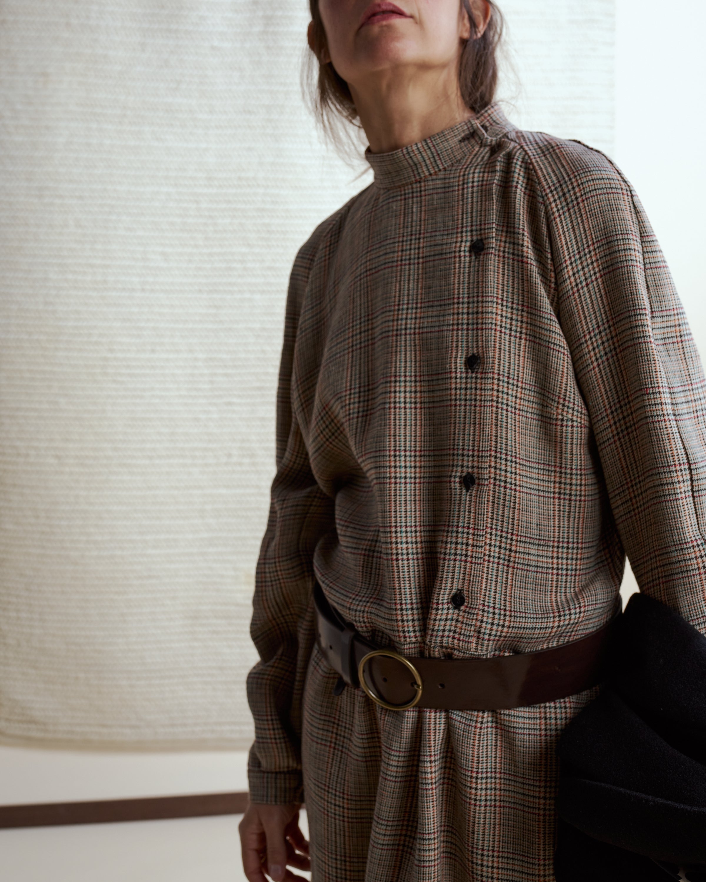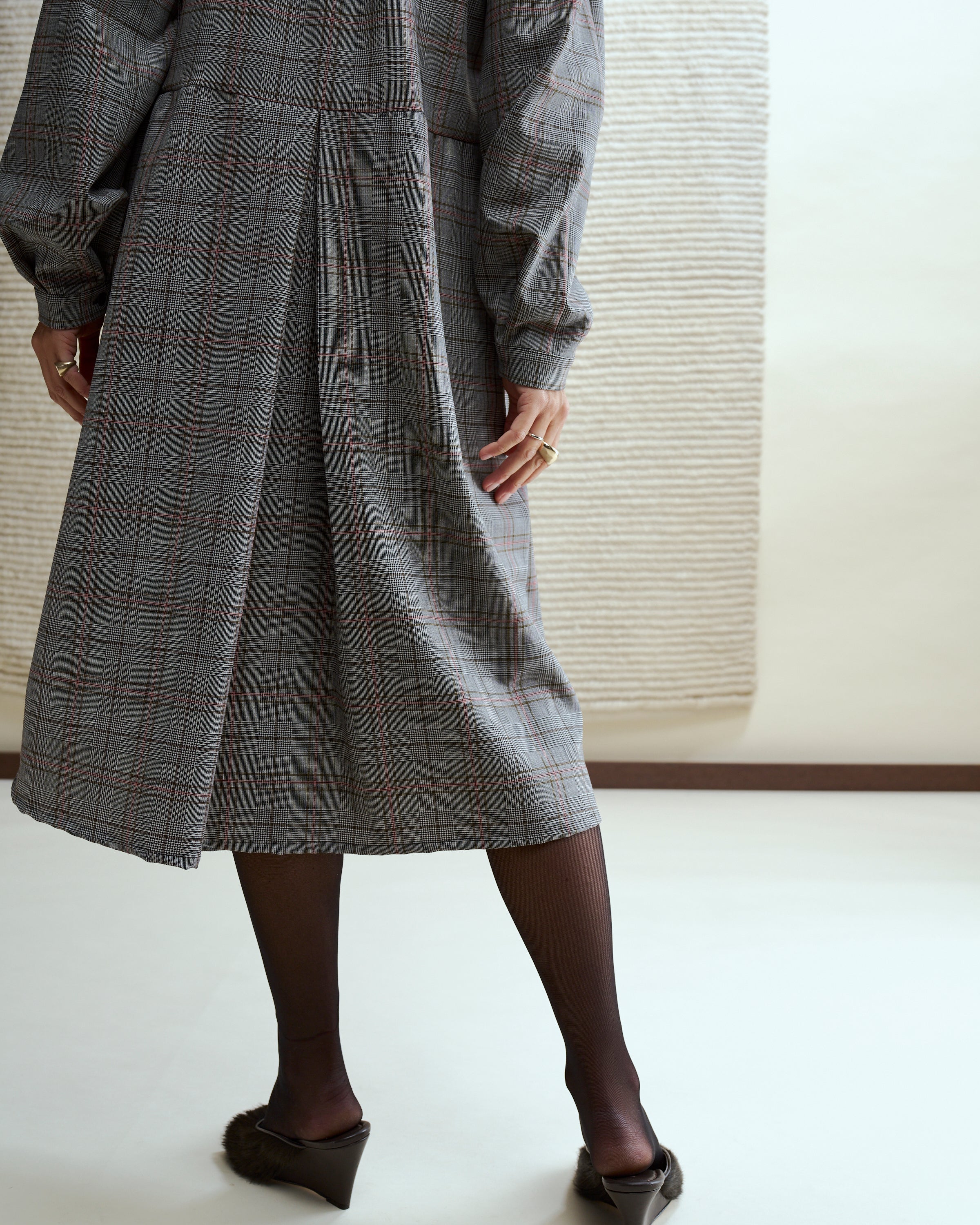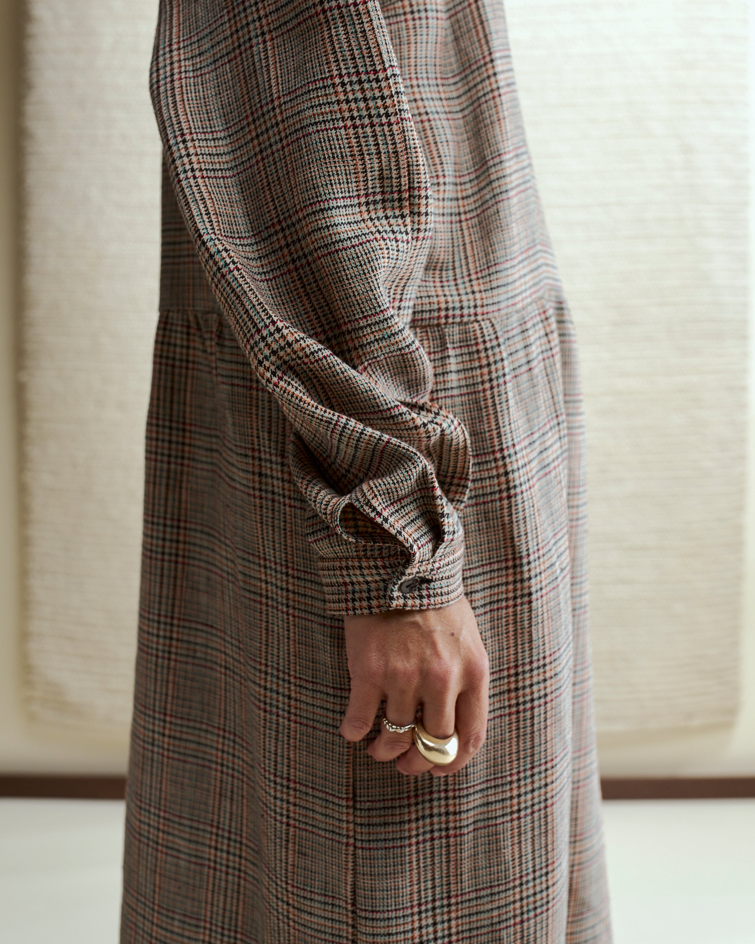 Abito Luisa | Fresco di Lana Principe di Galles Riga Azzurra