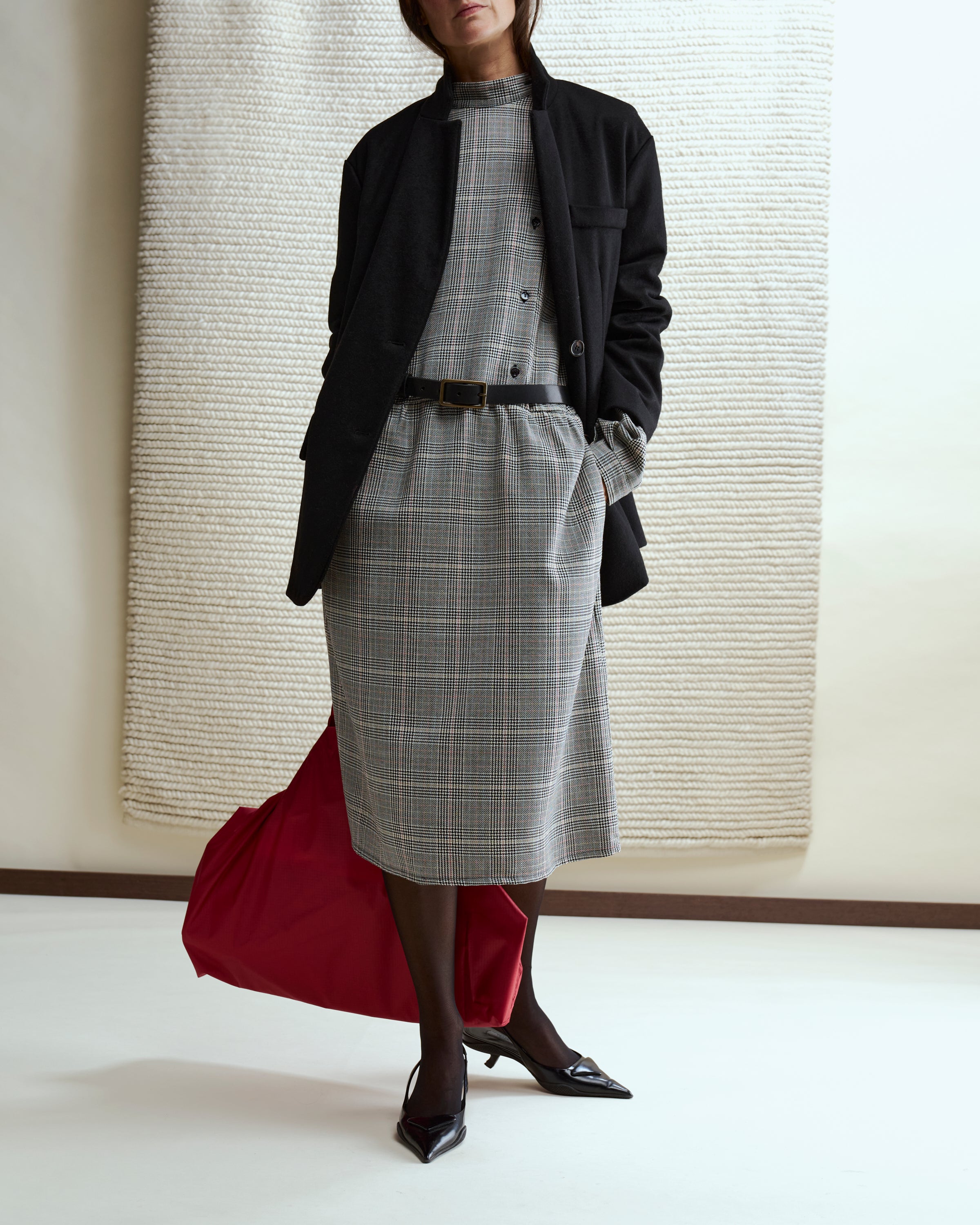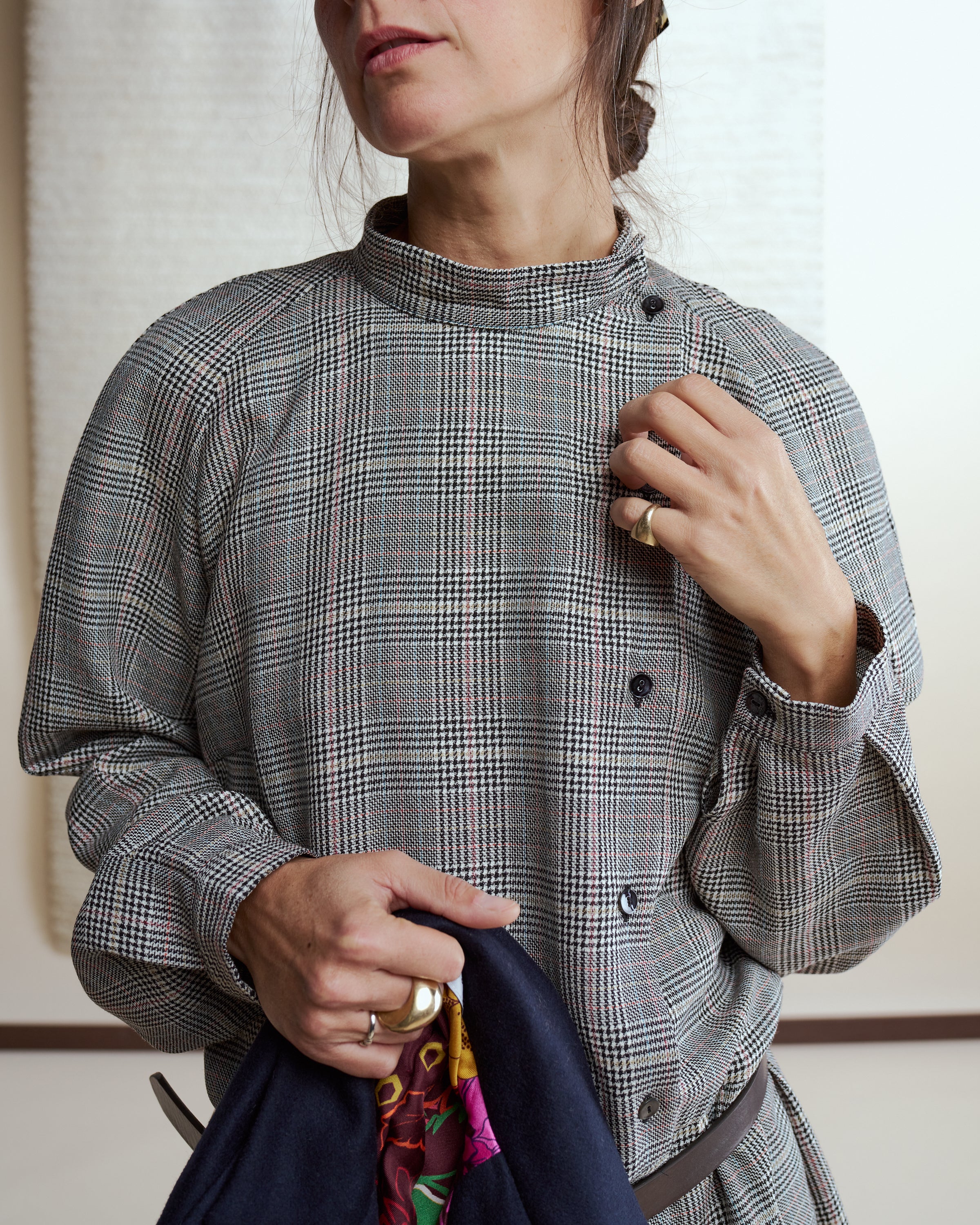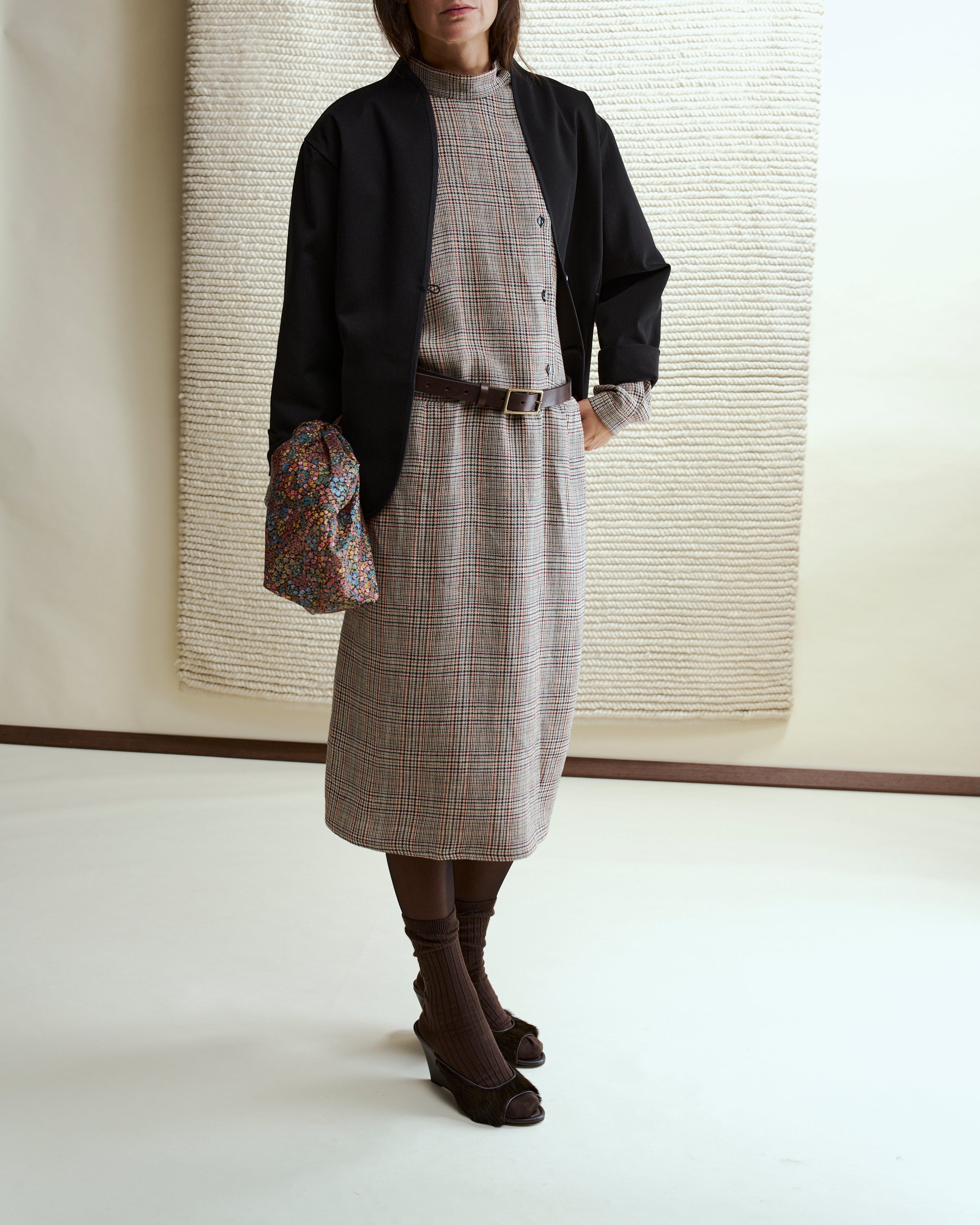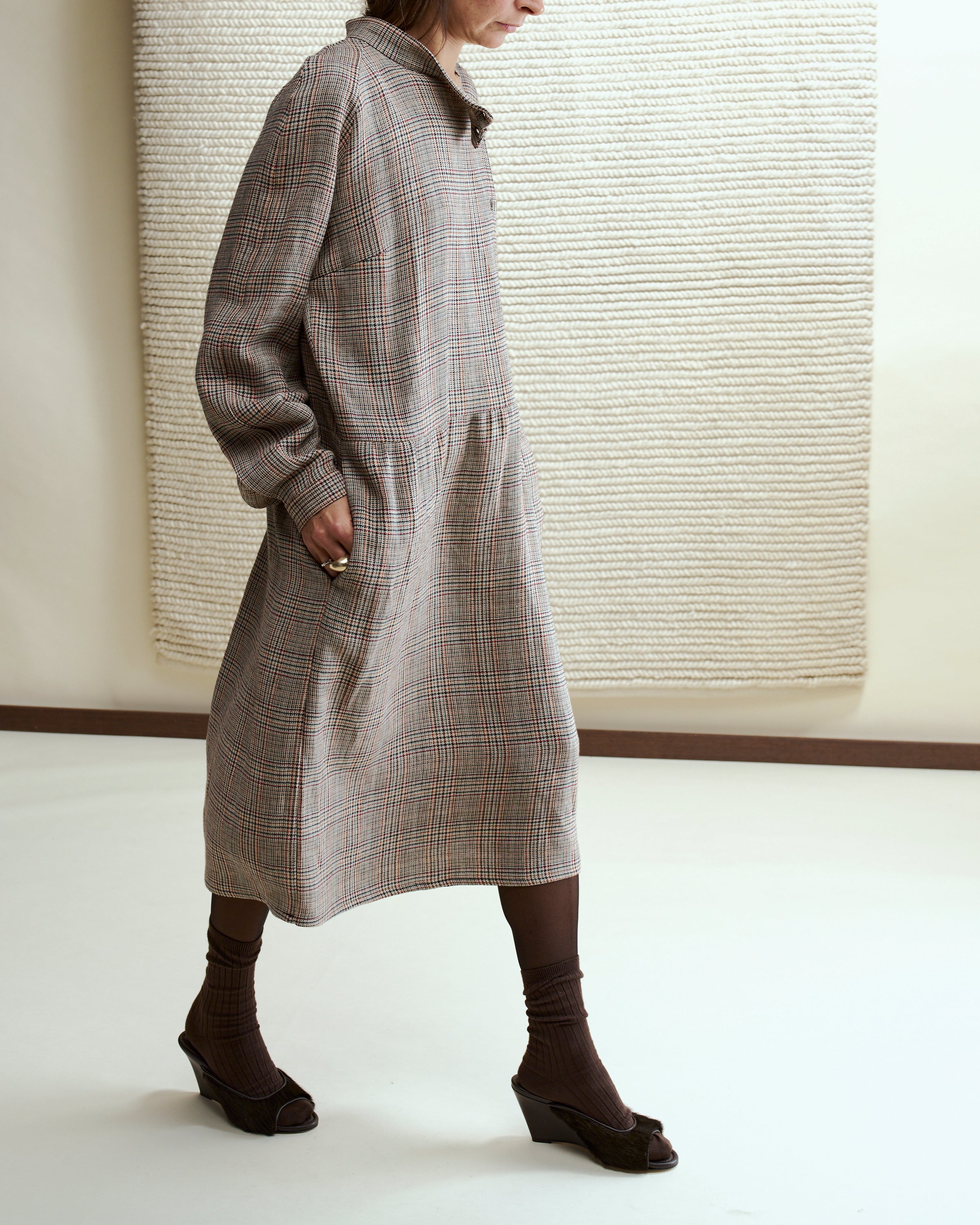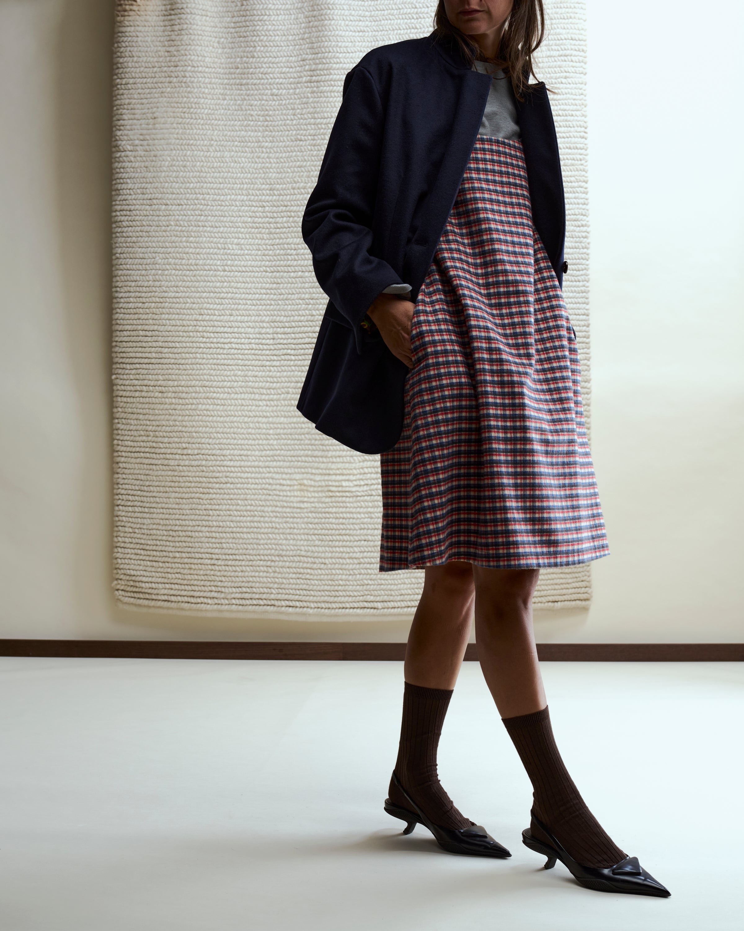 Abito Luisa | Fresco di Lana Principe di Galles Riga Azzurra