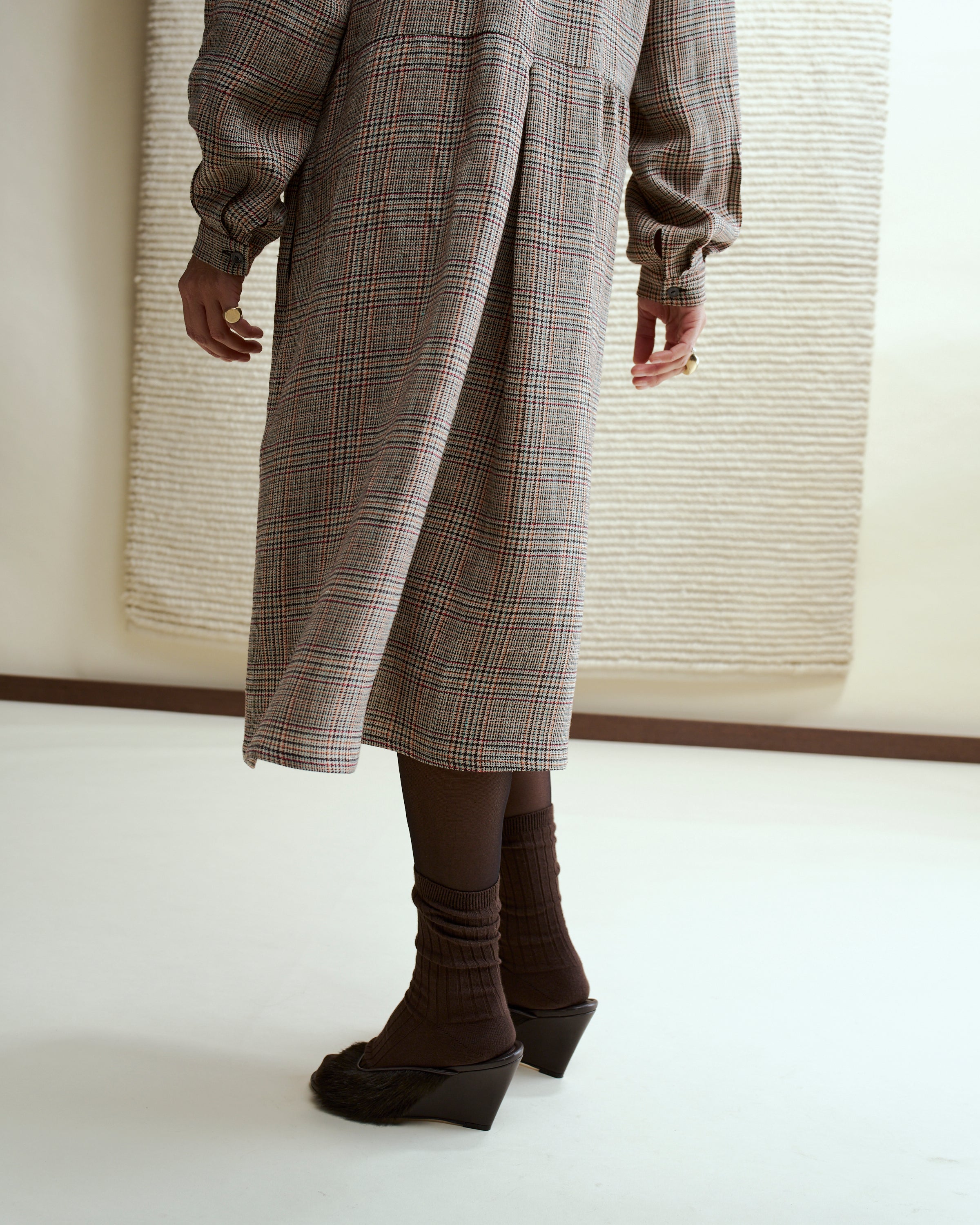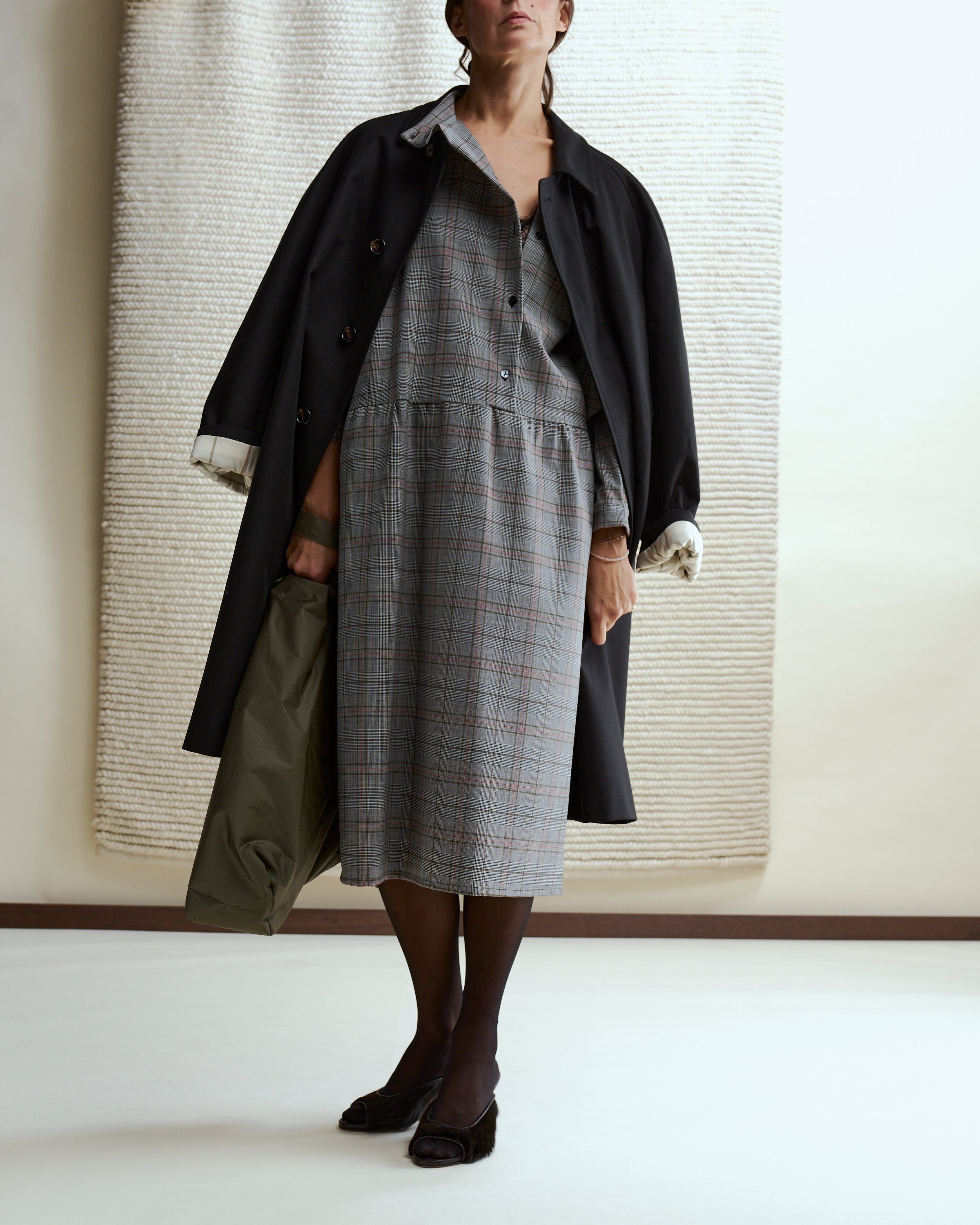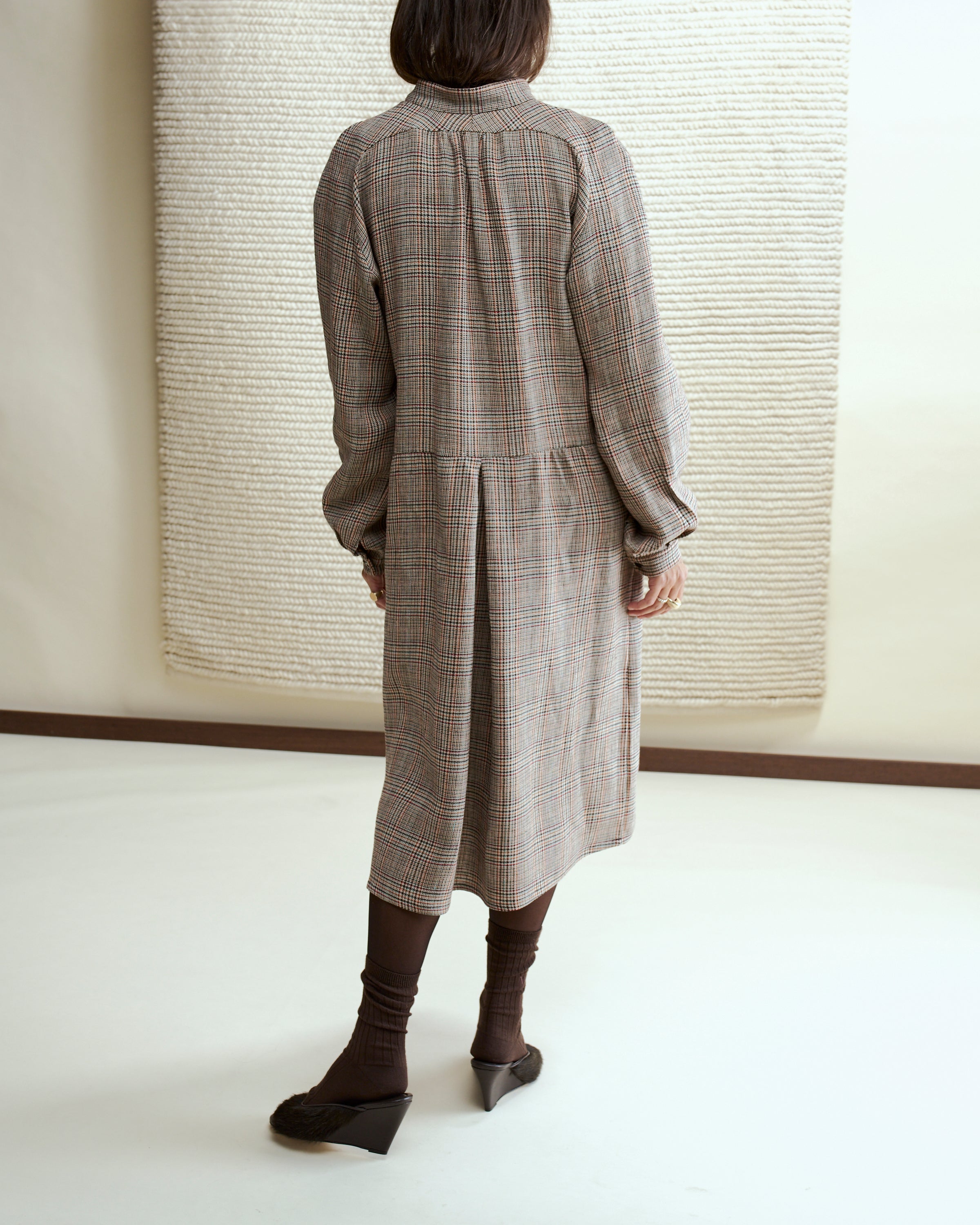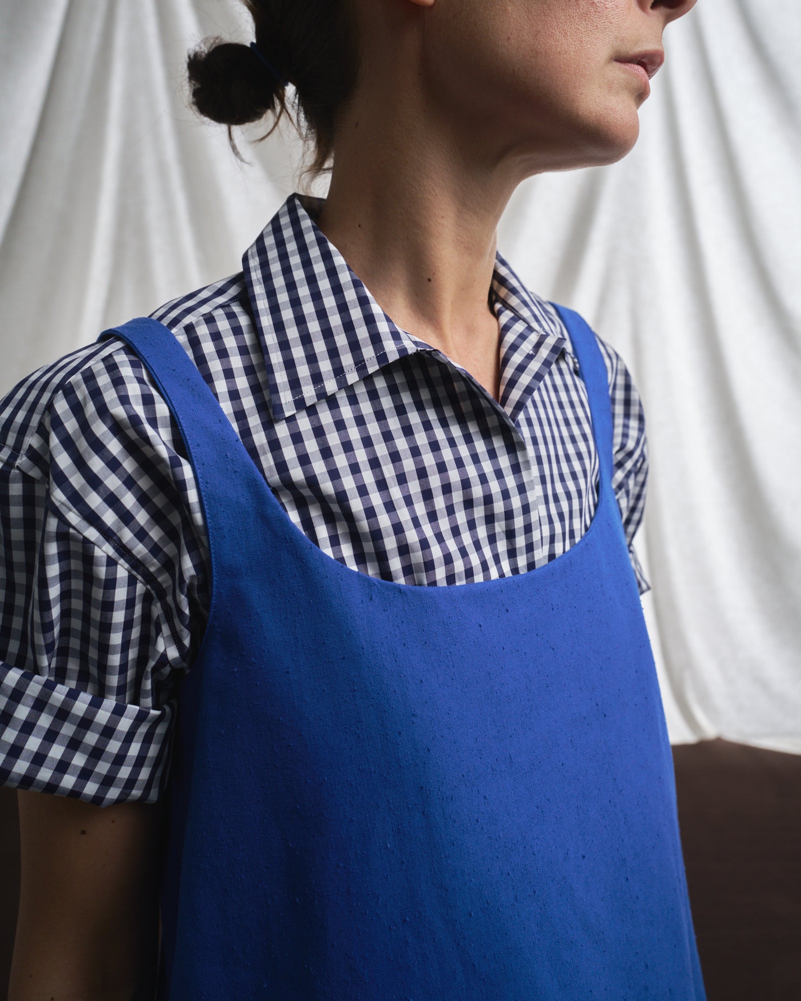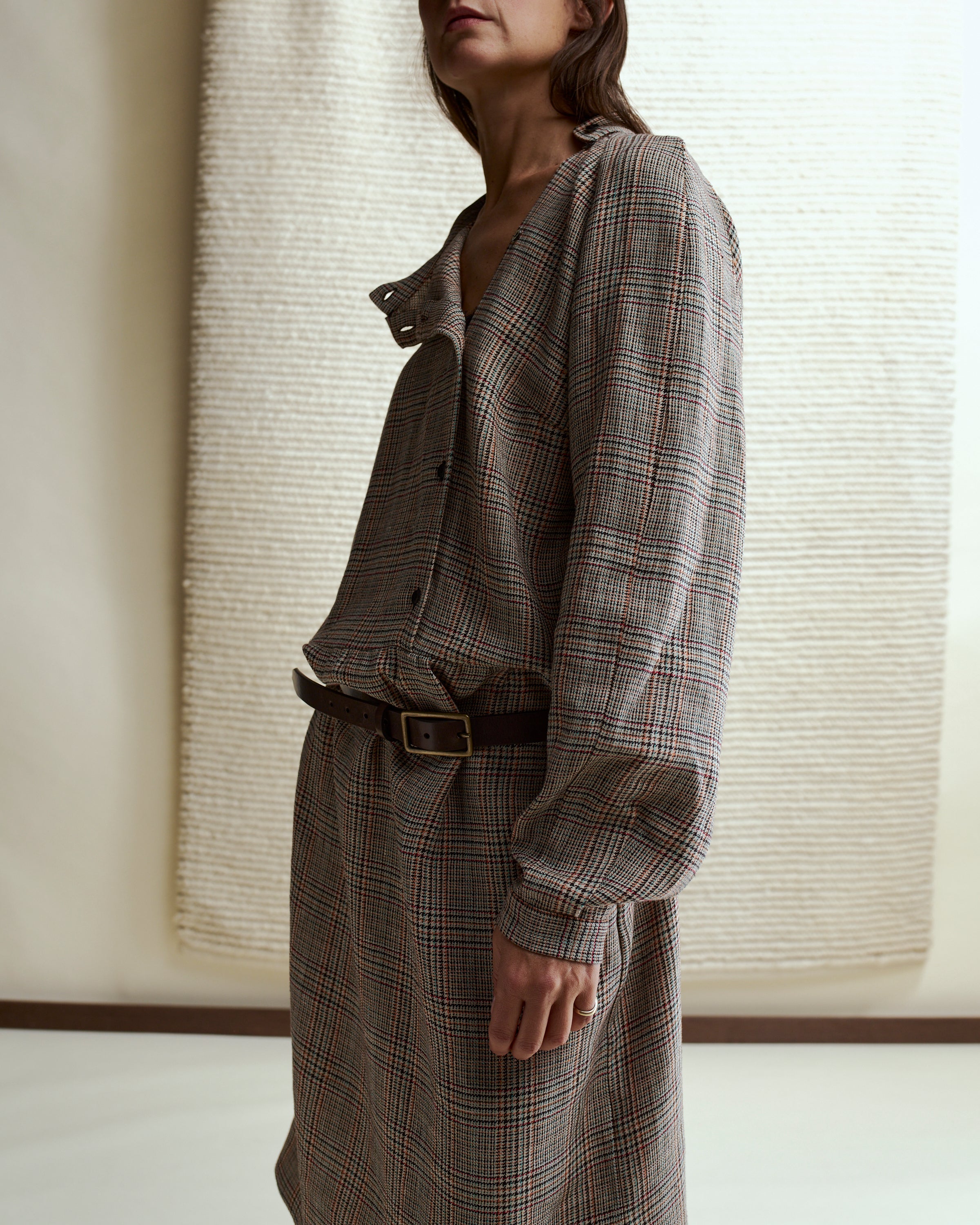 Abito Luisa | Fresco di Lana Principe di Galles Riga Azzurra