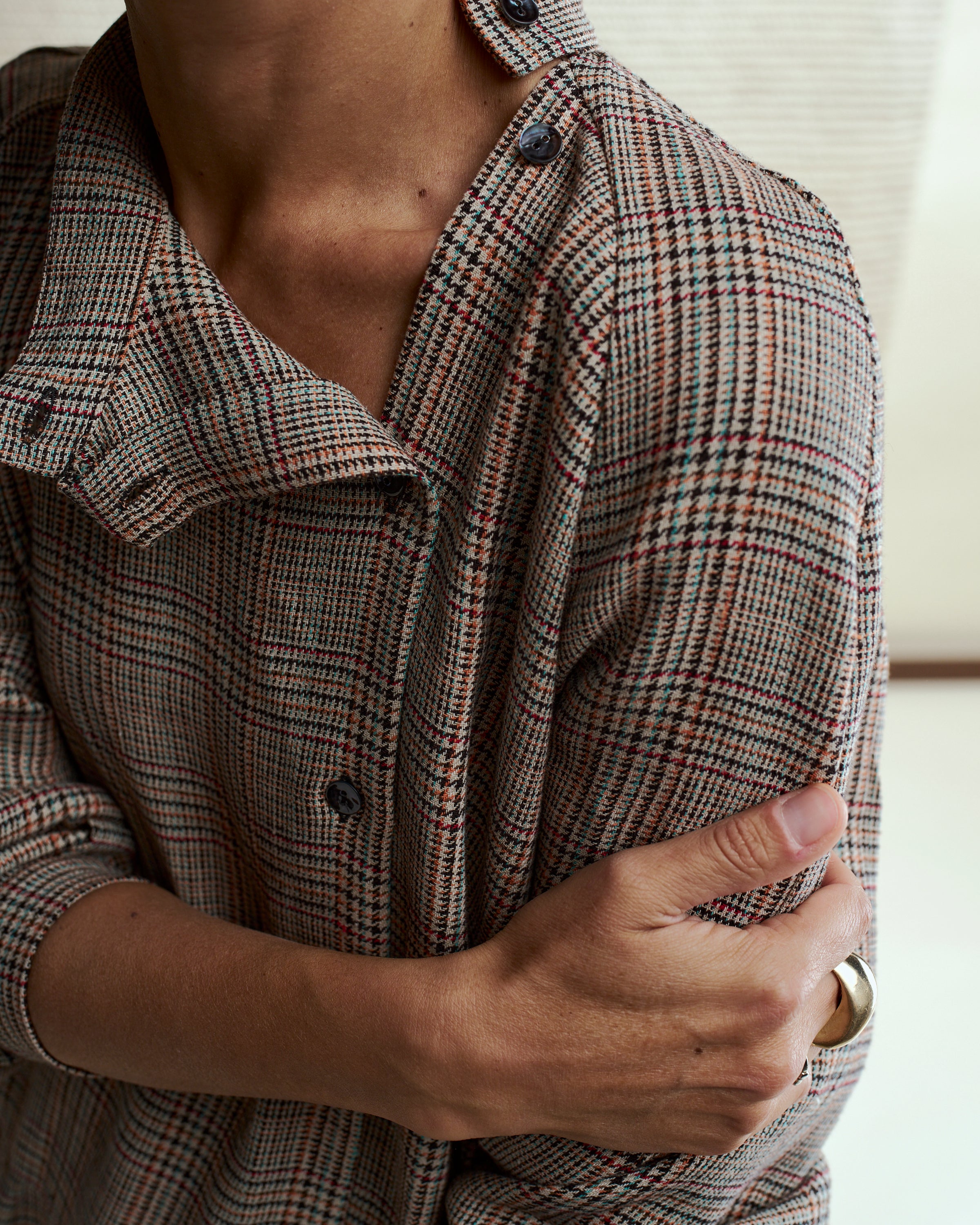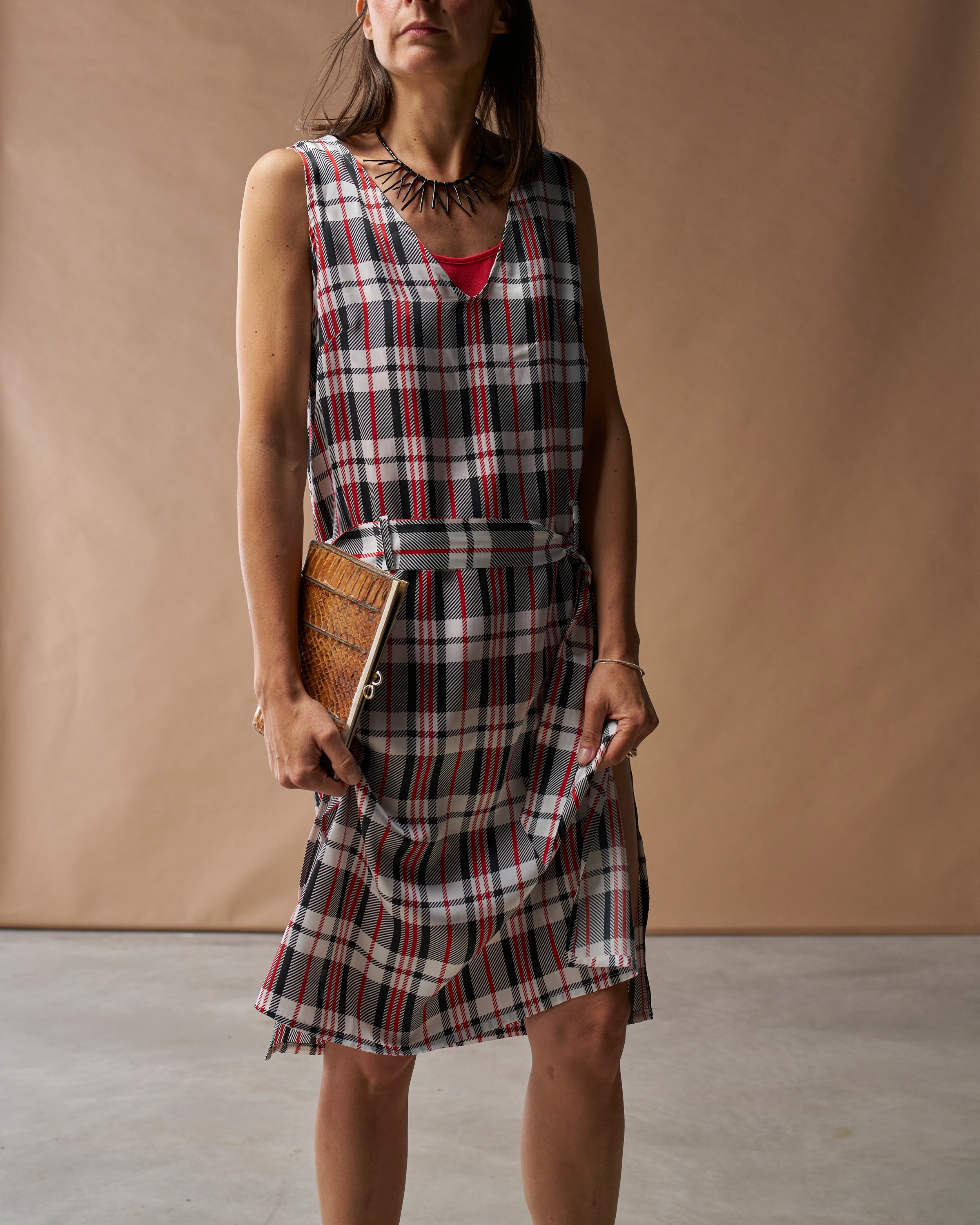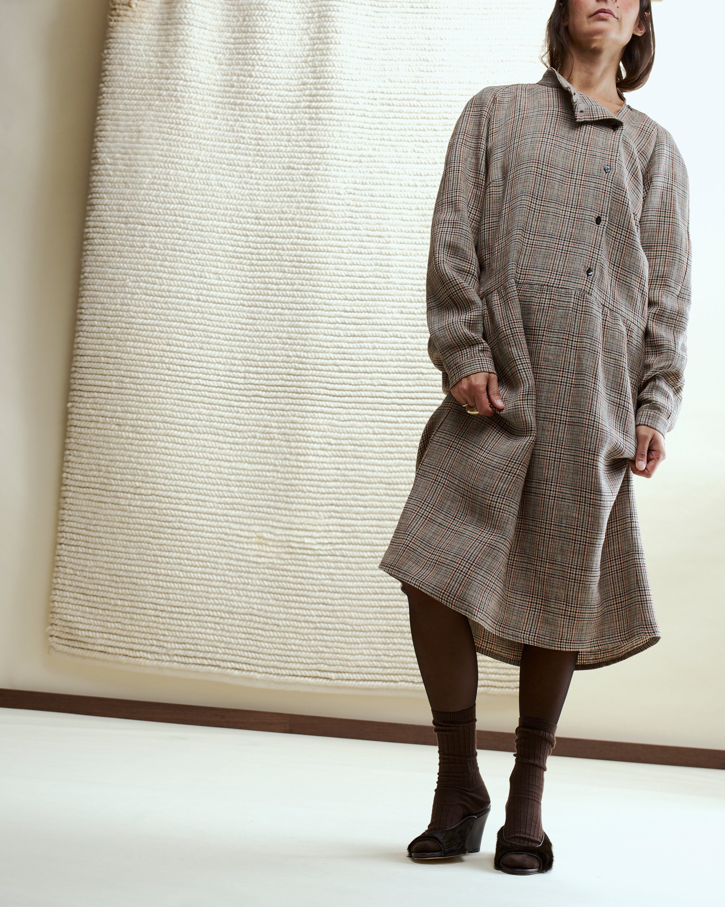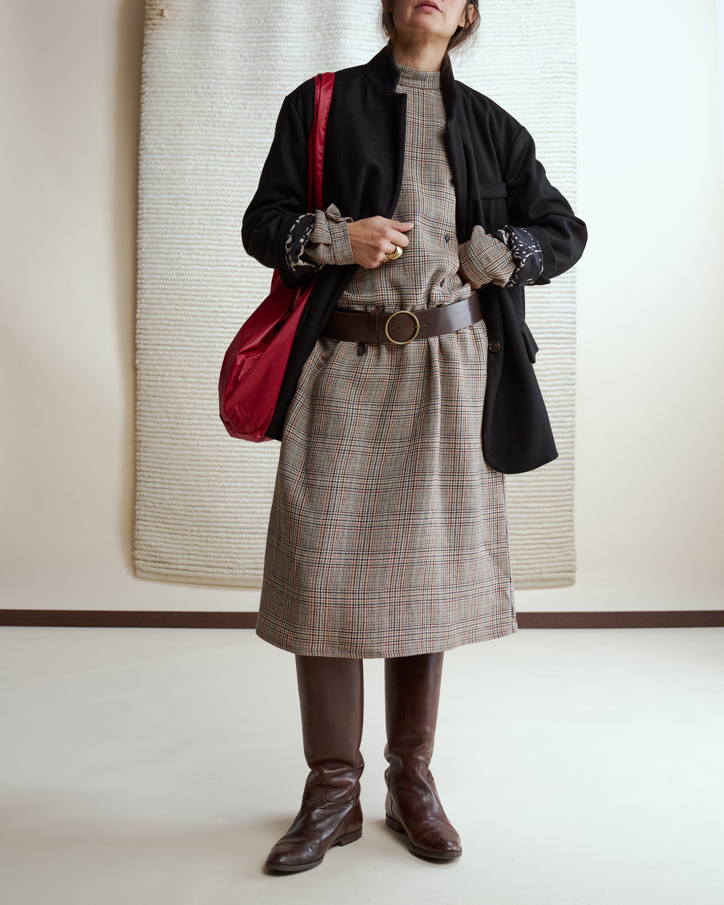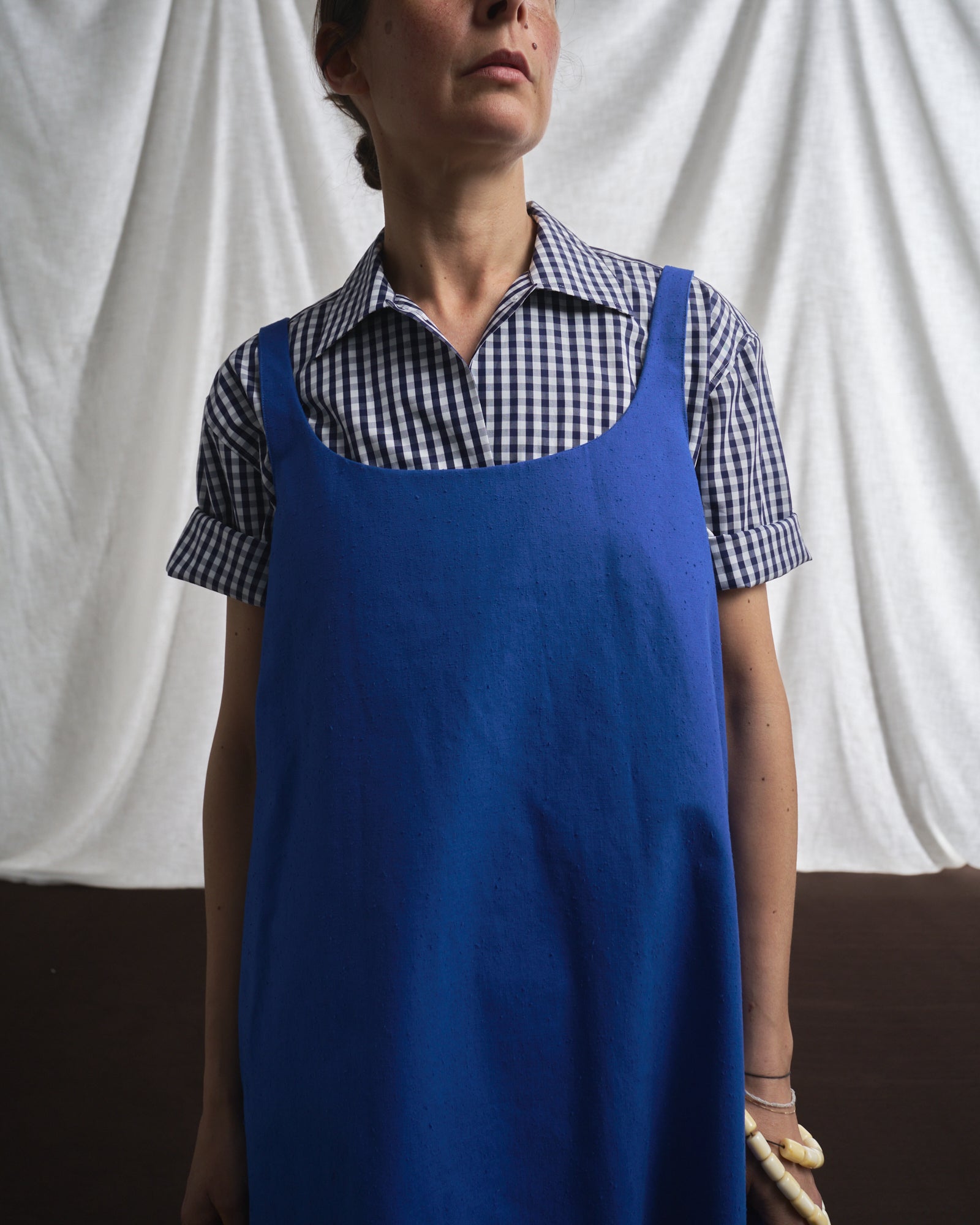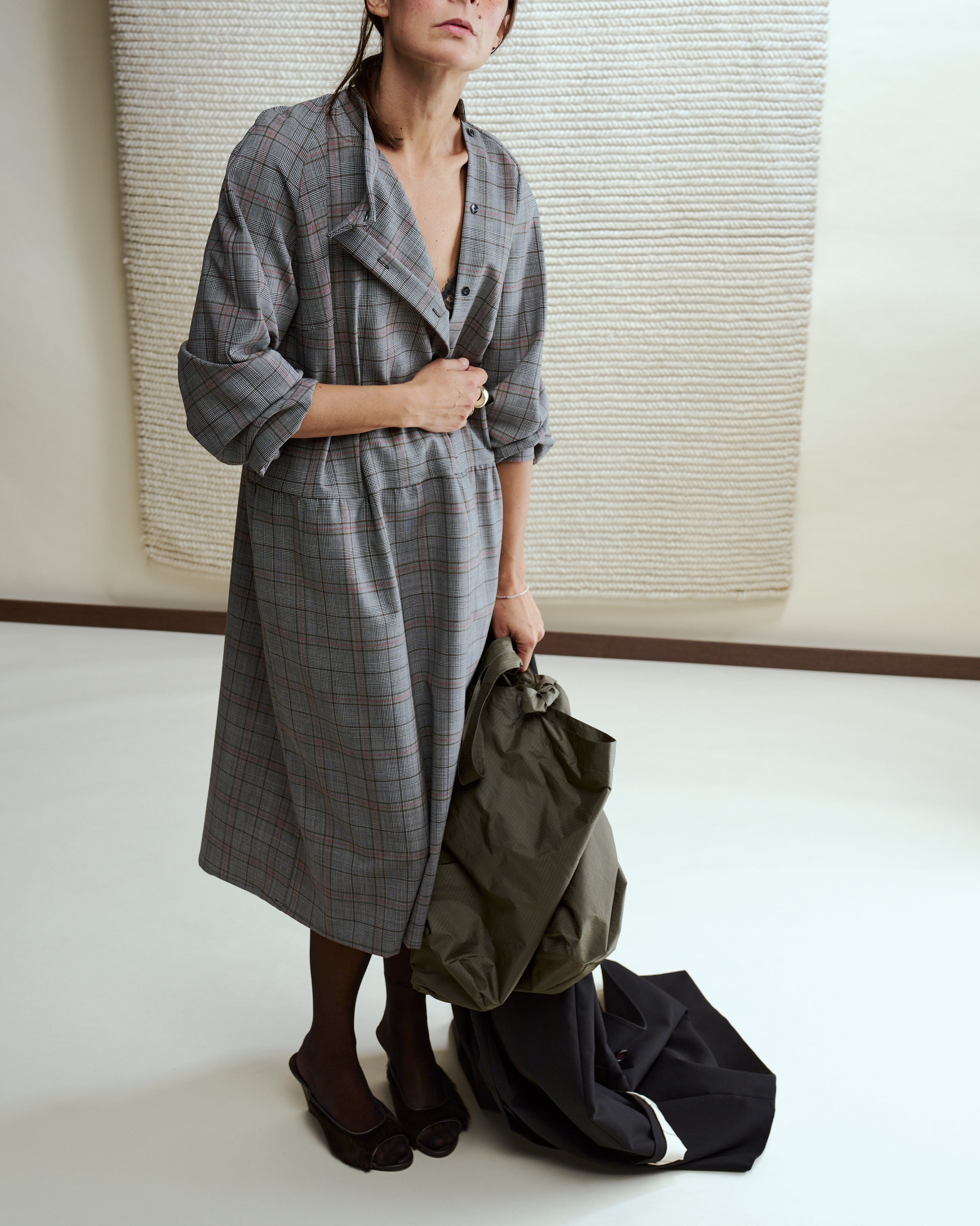 Abito Luisa | Fresco di Lana Principe di Galles Riga Azzurra