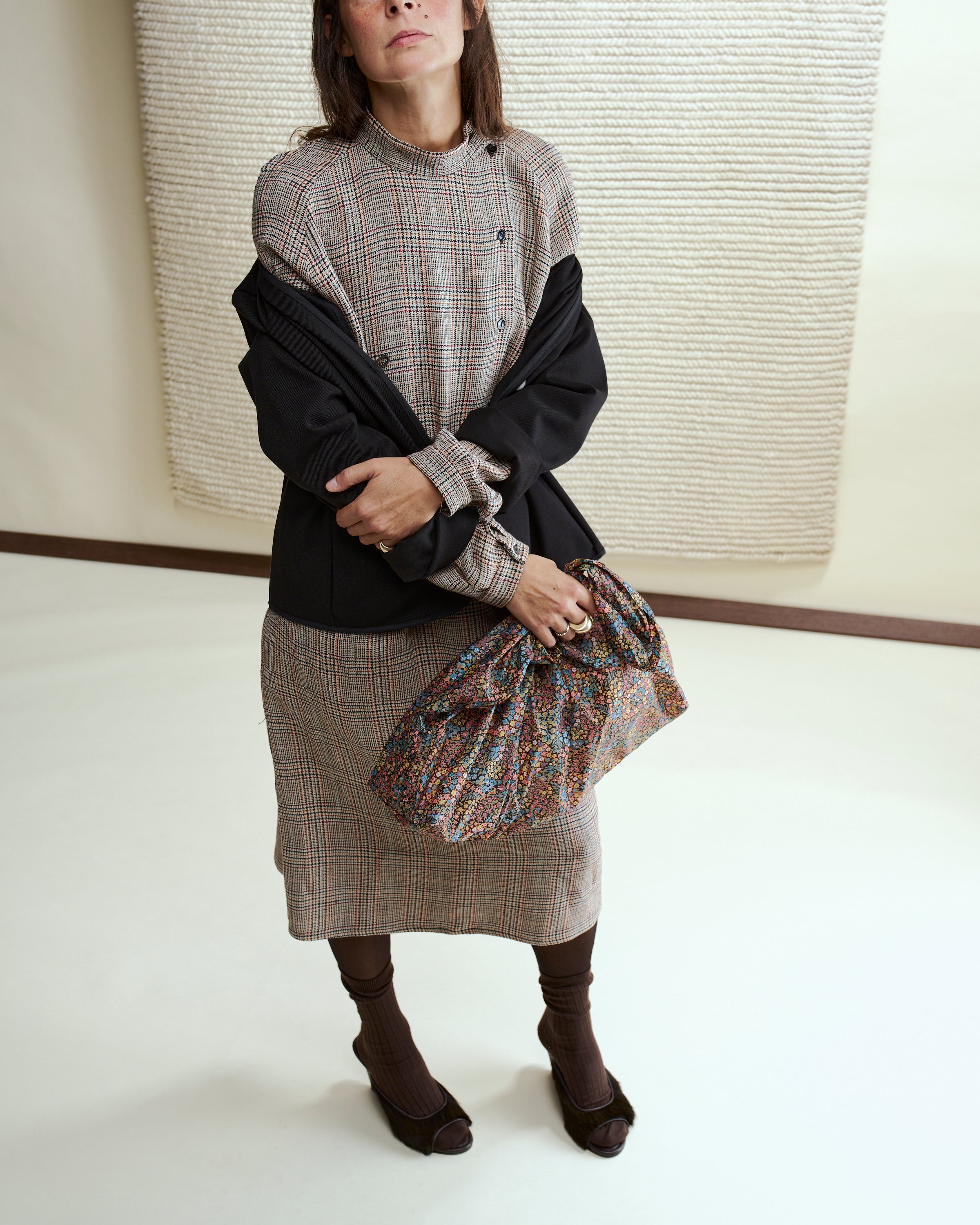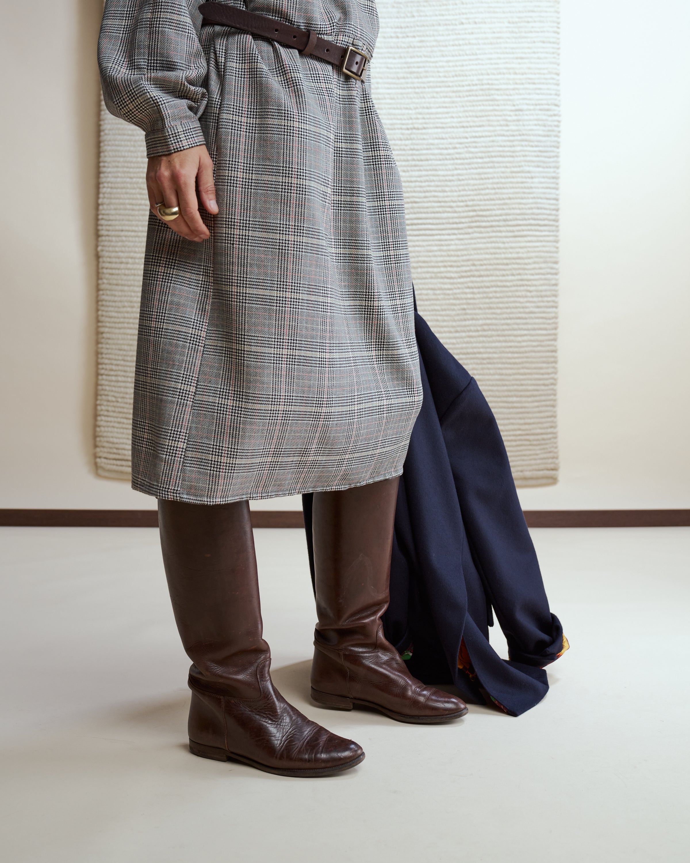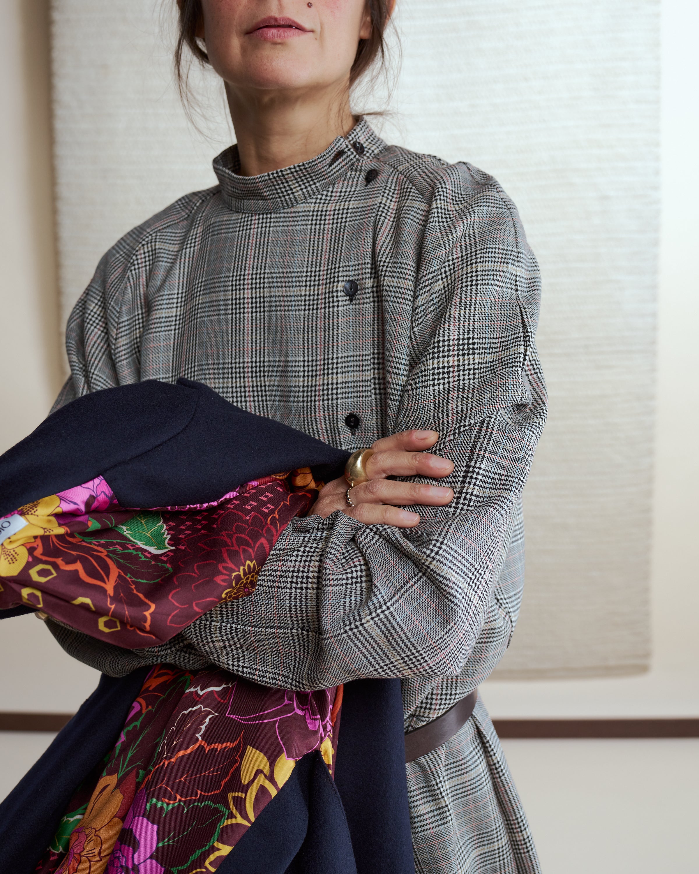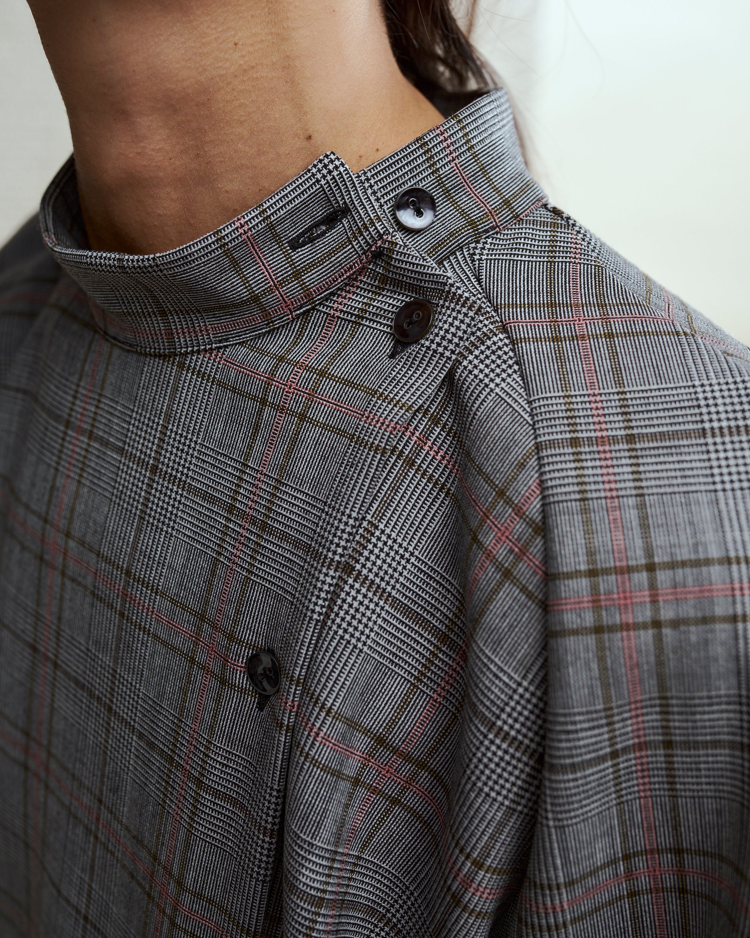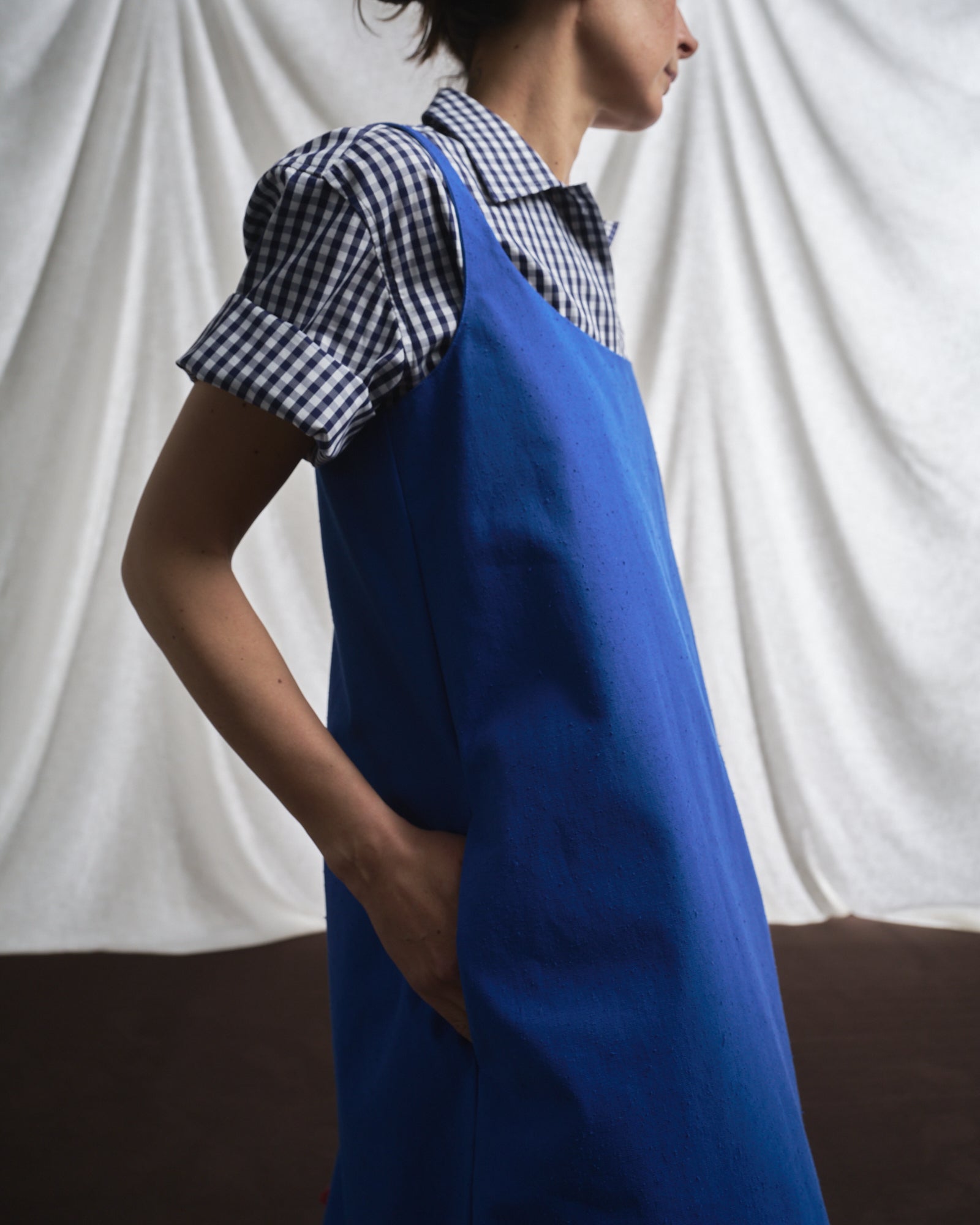 Abito Luisa | Fresco di Lana Principe di Galles Riga Azzurra