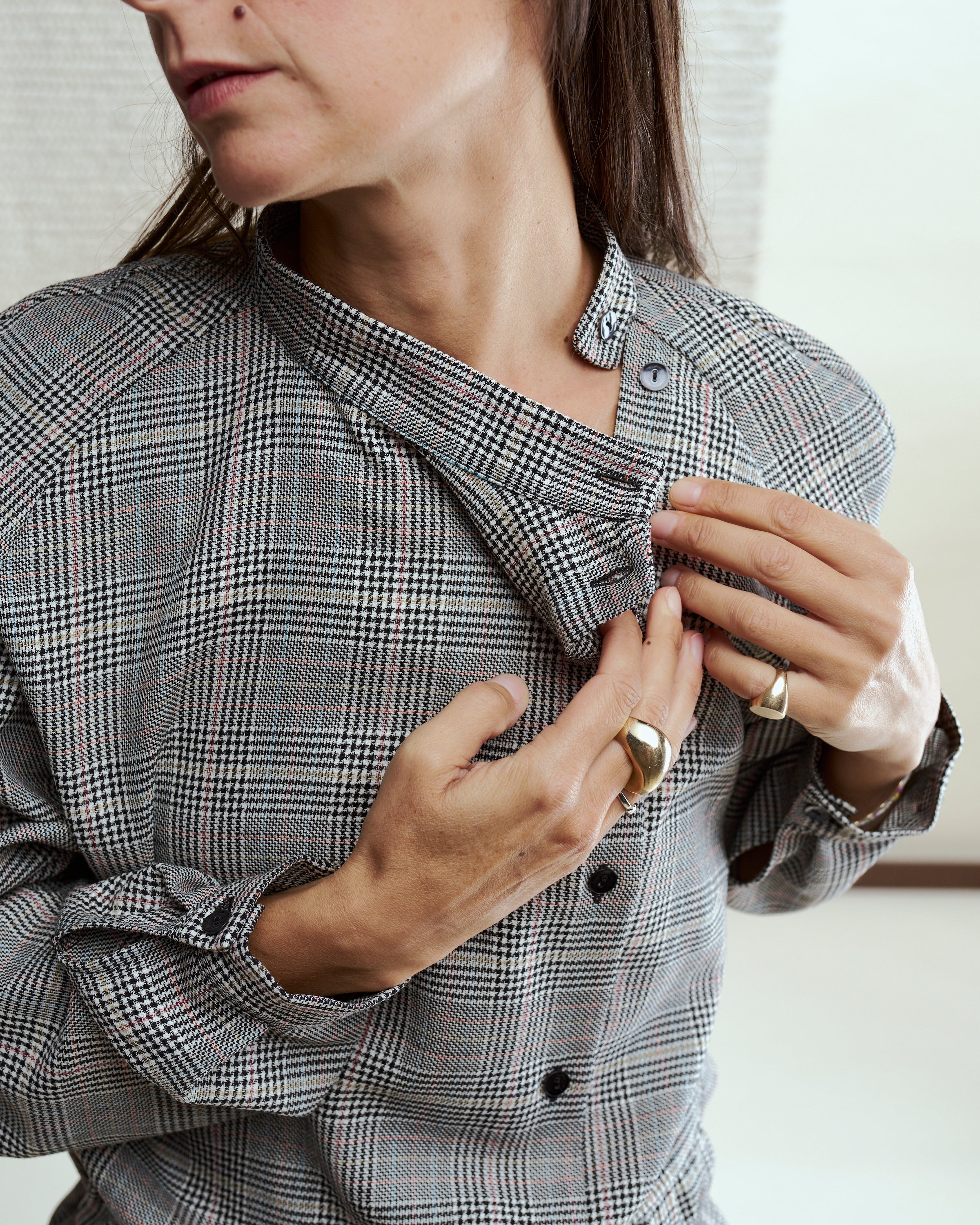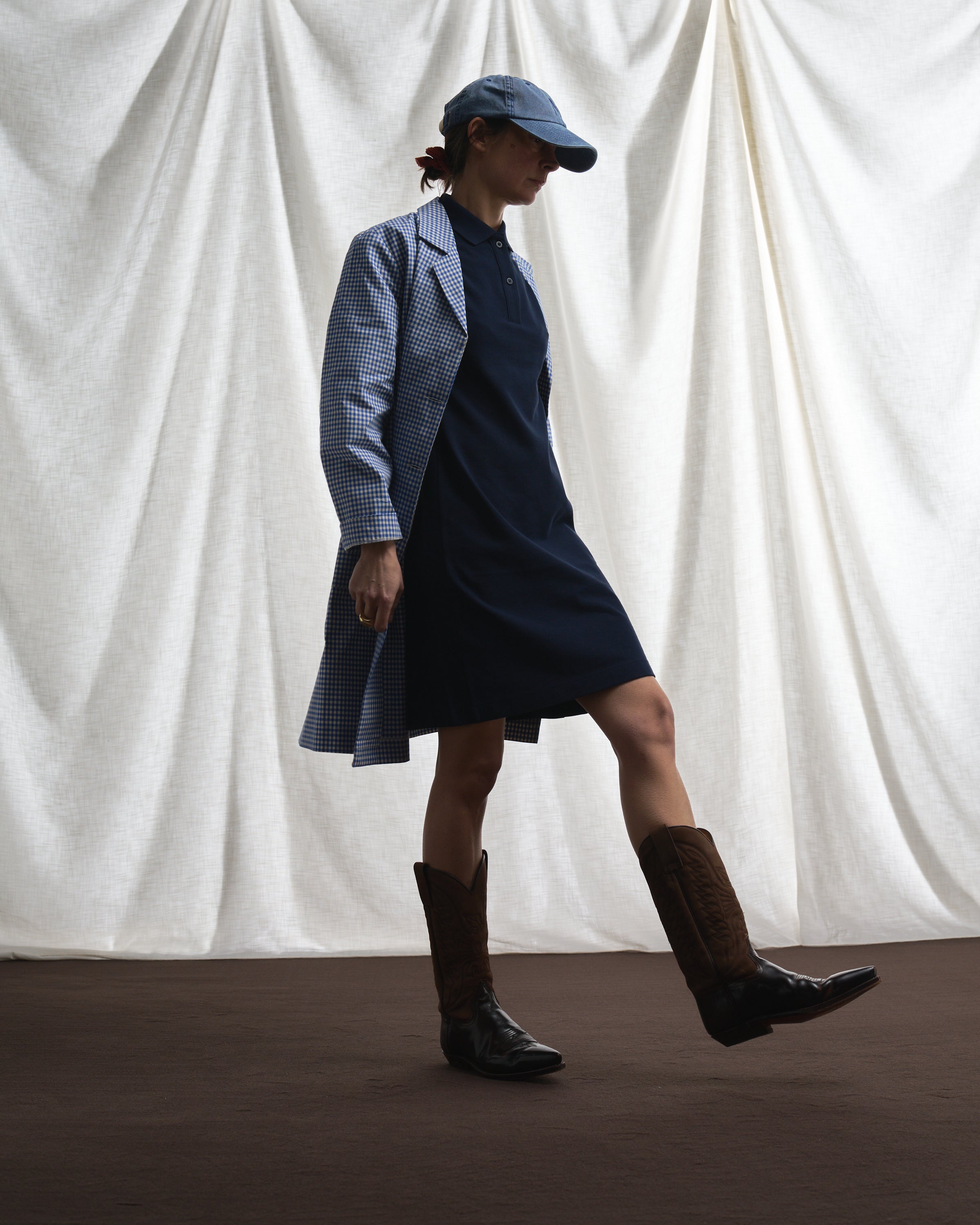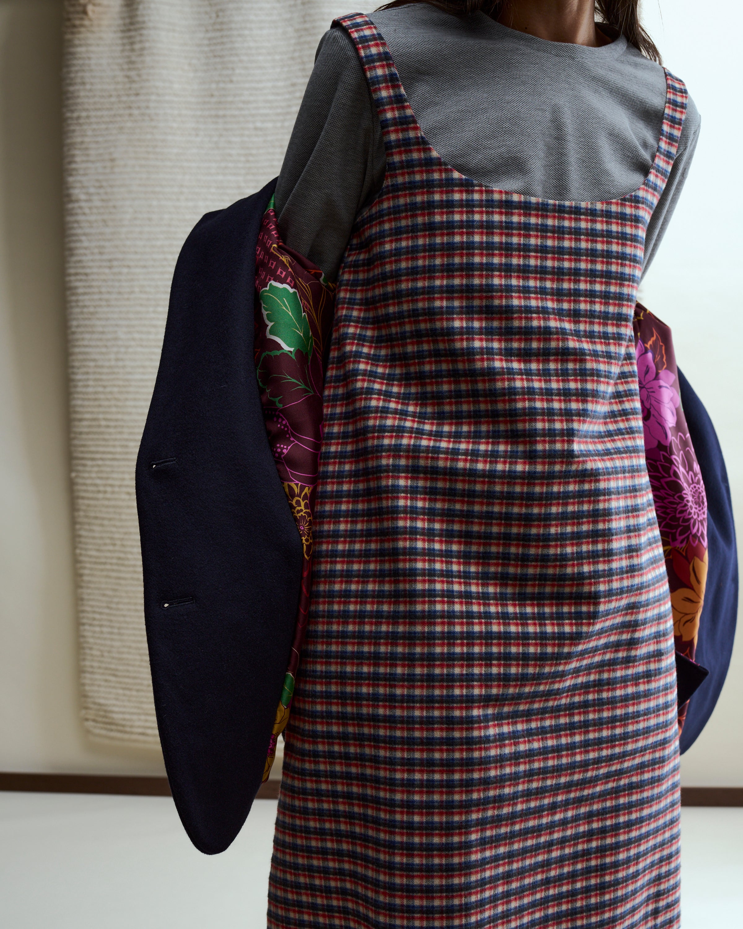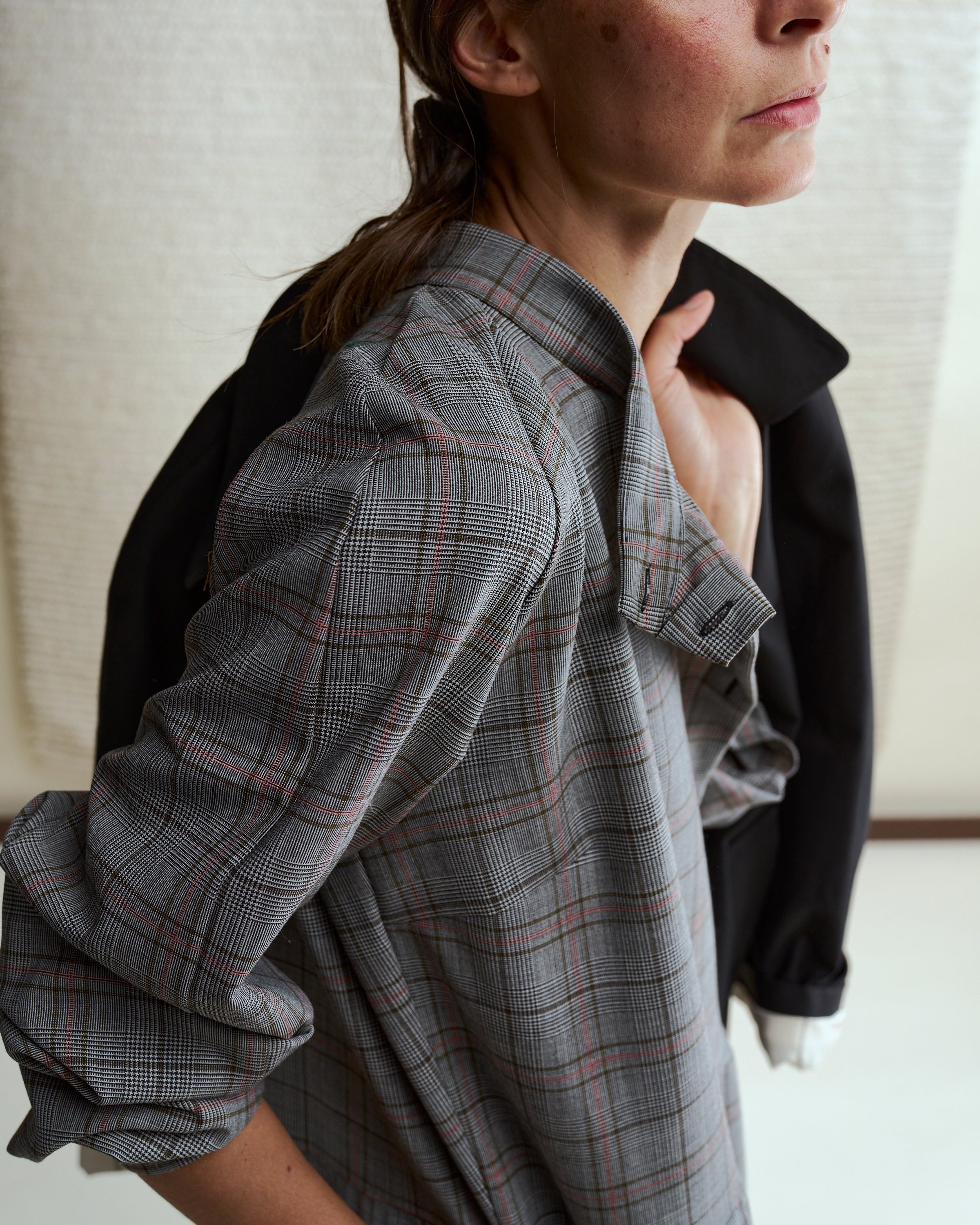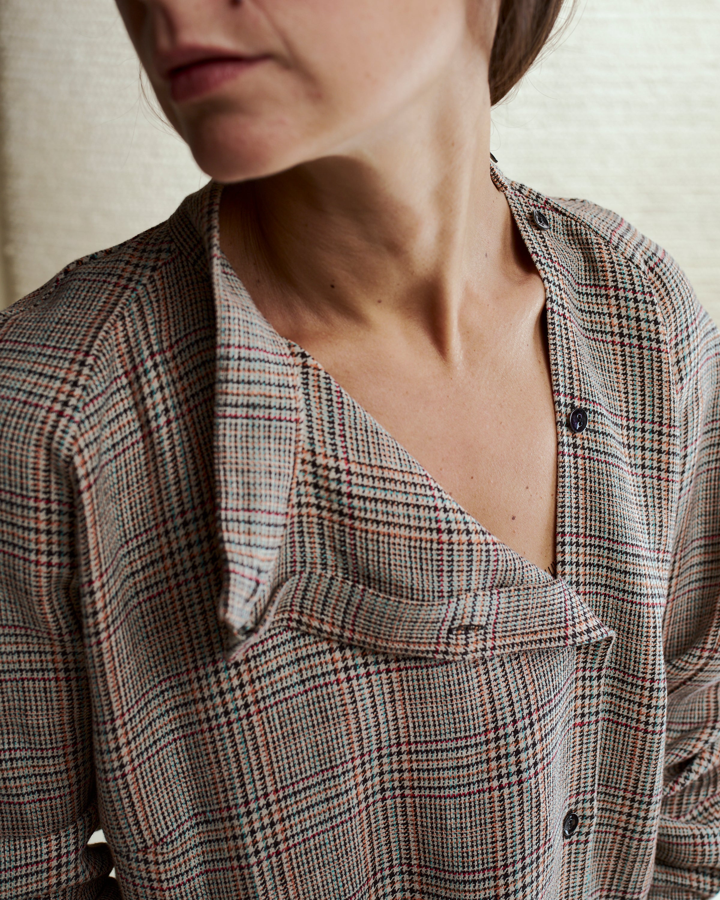 Abito Luisa | Fresco di Lana Principe di Galles Riga Azzurra