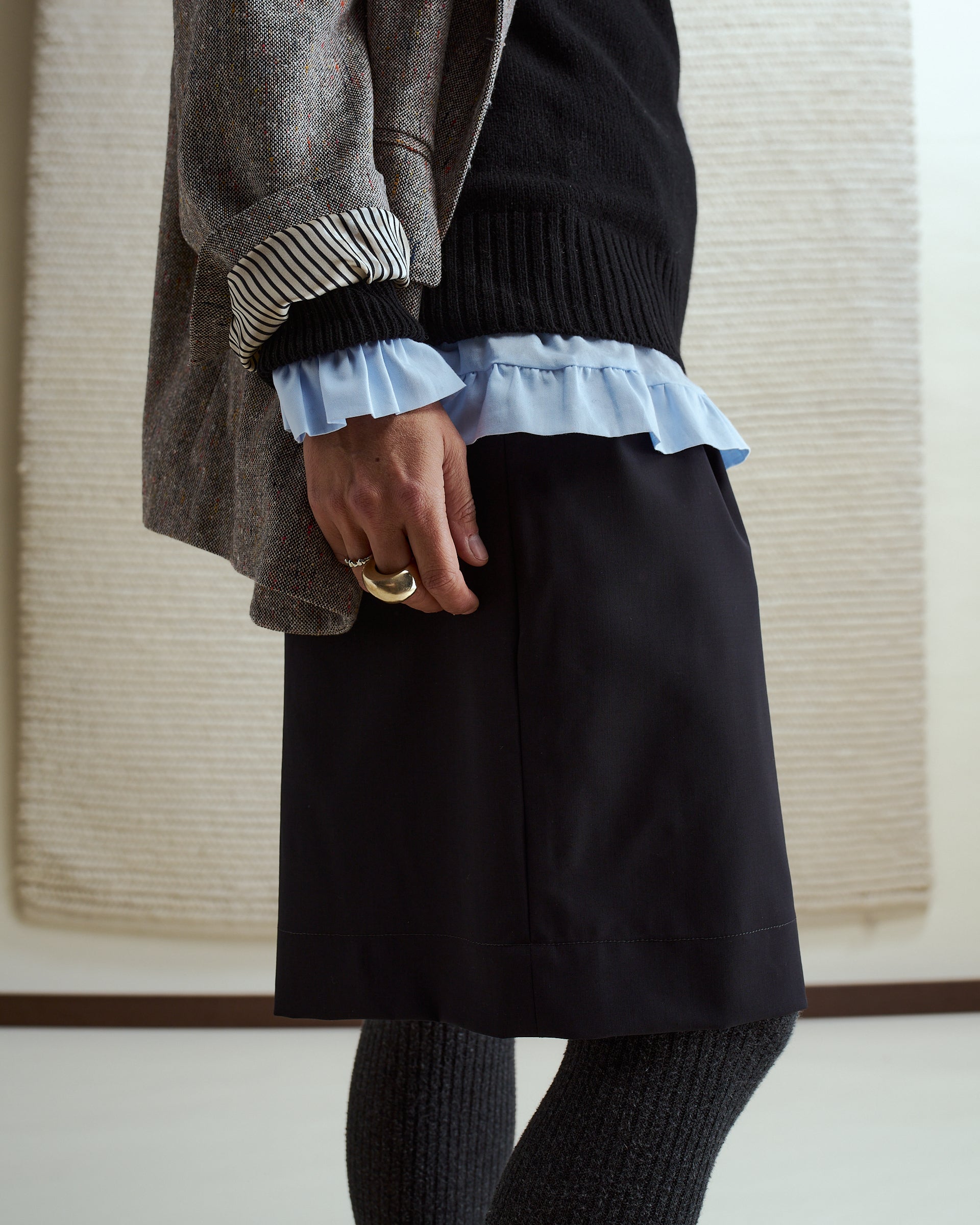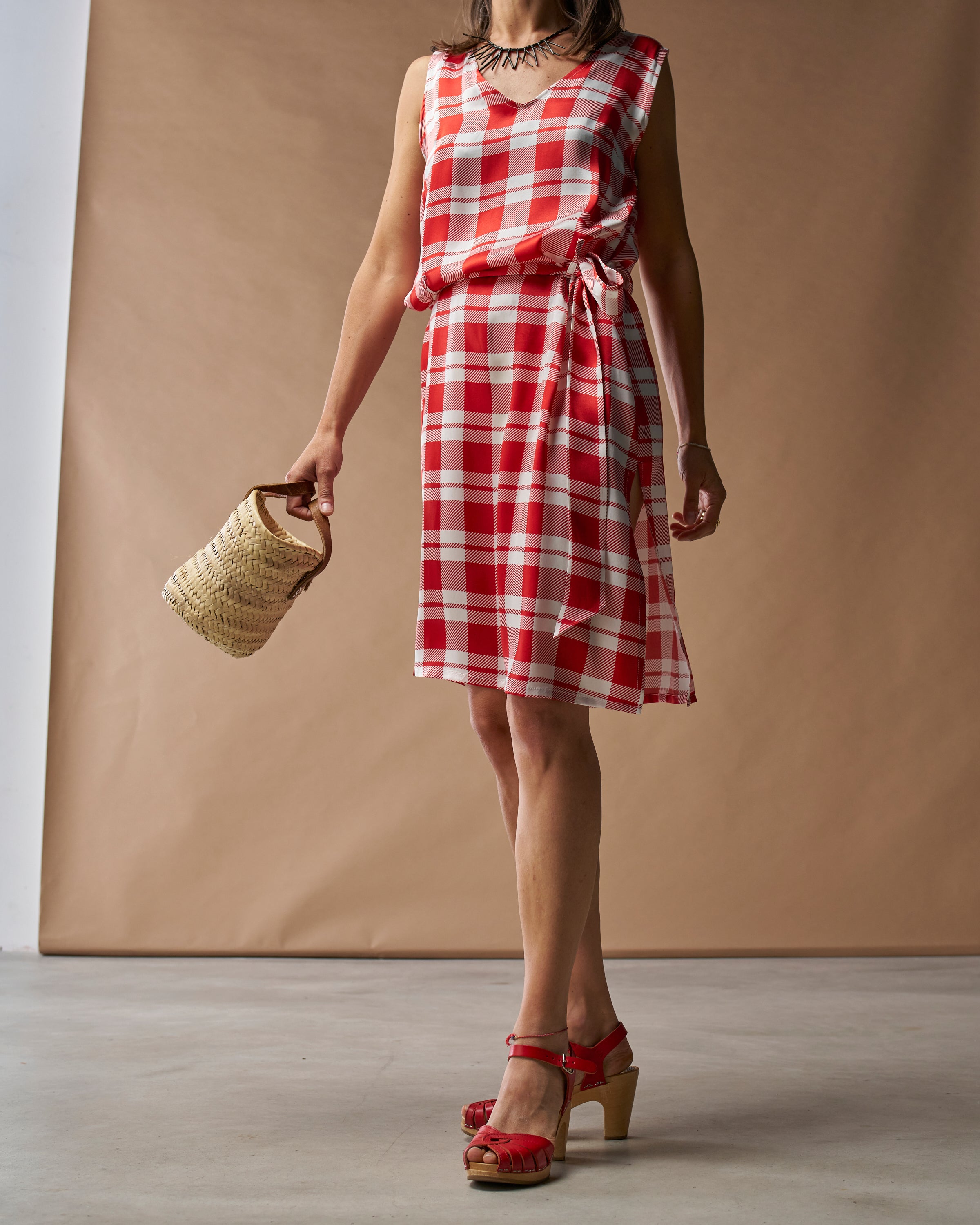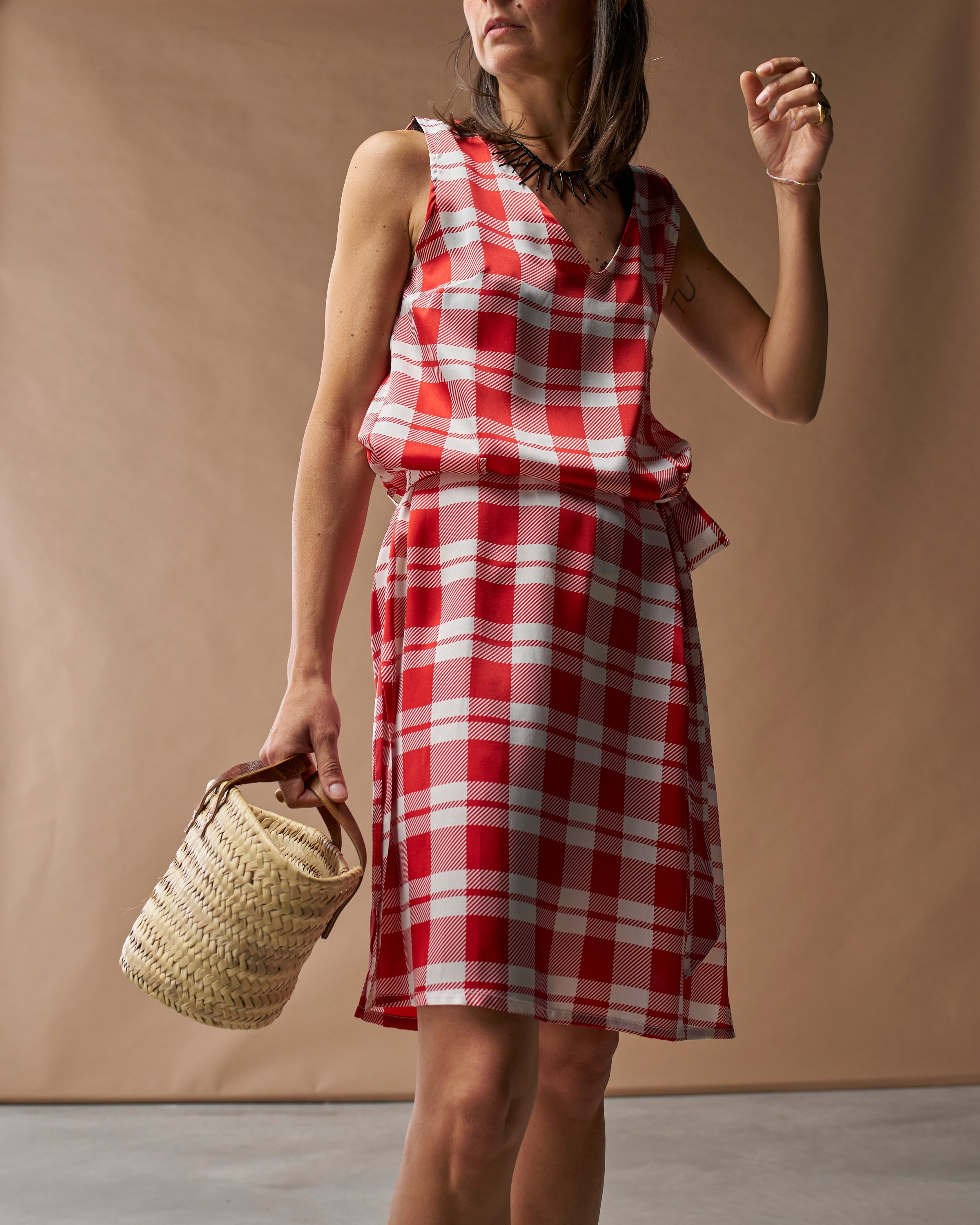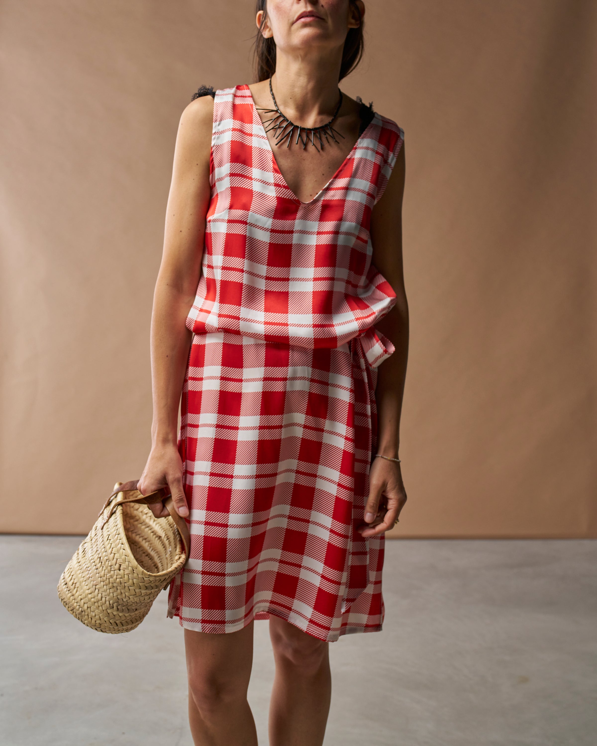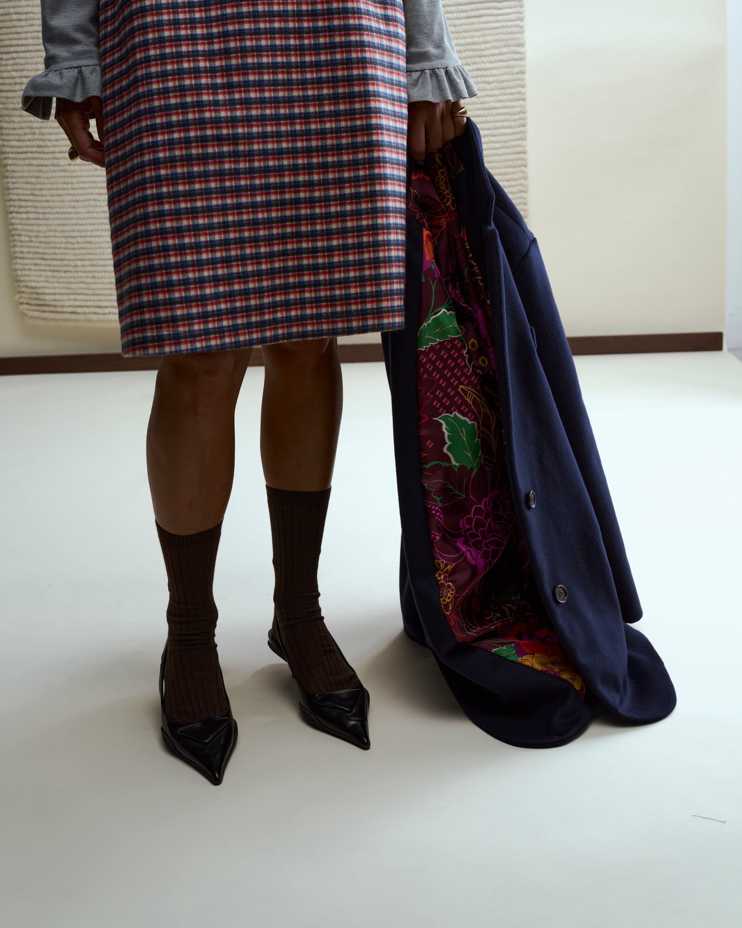 Abito Luisa | Fresco di Lana Principe di Galles Riga Azzurra