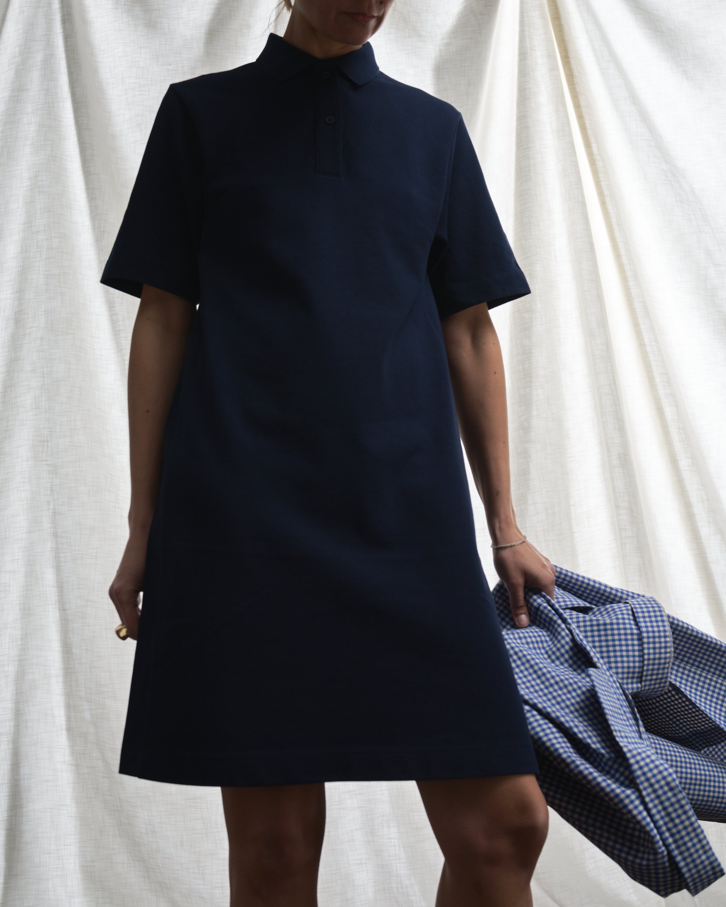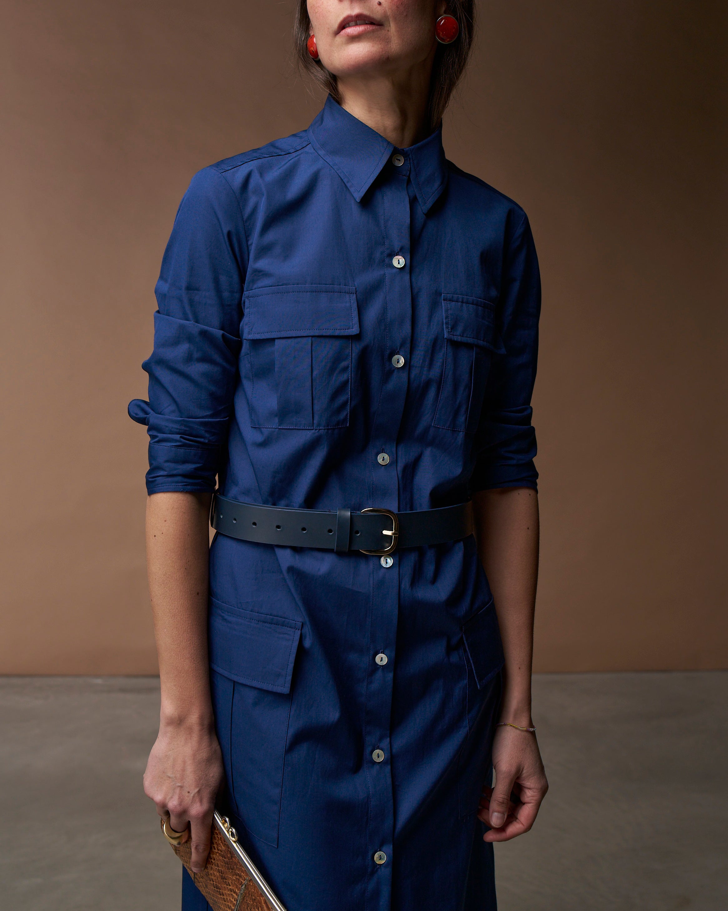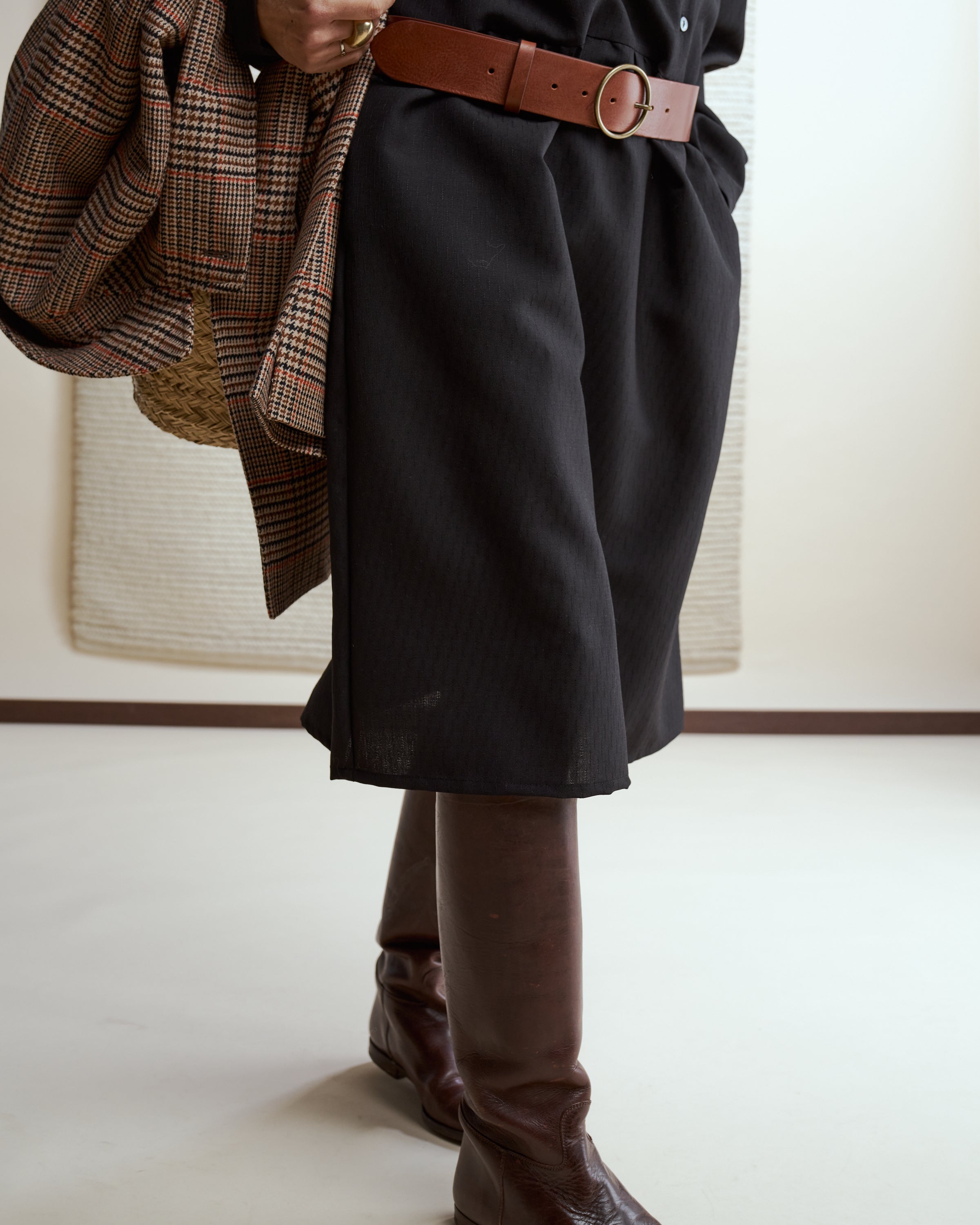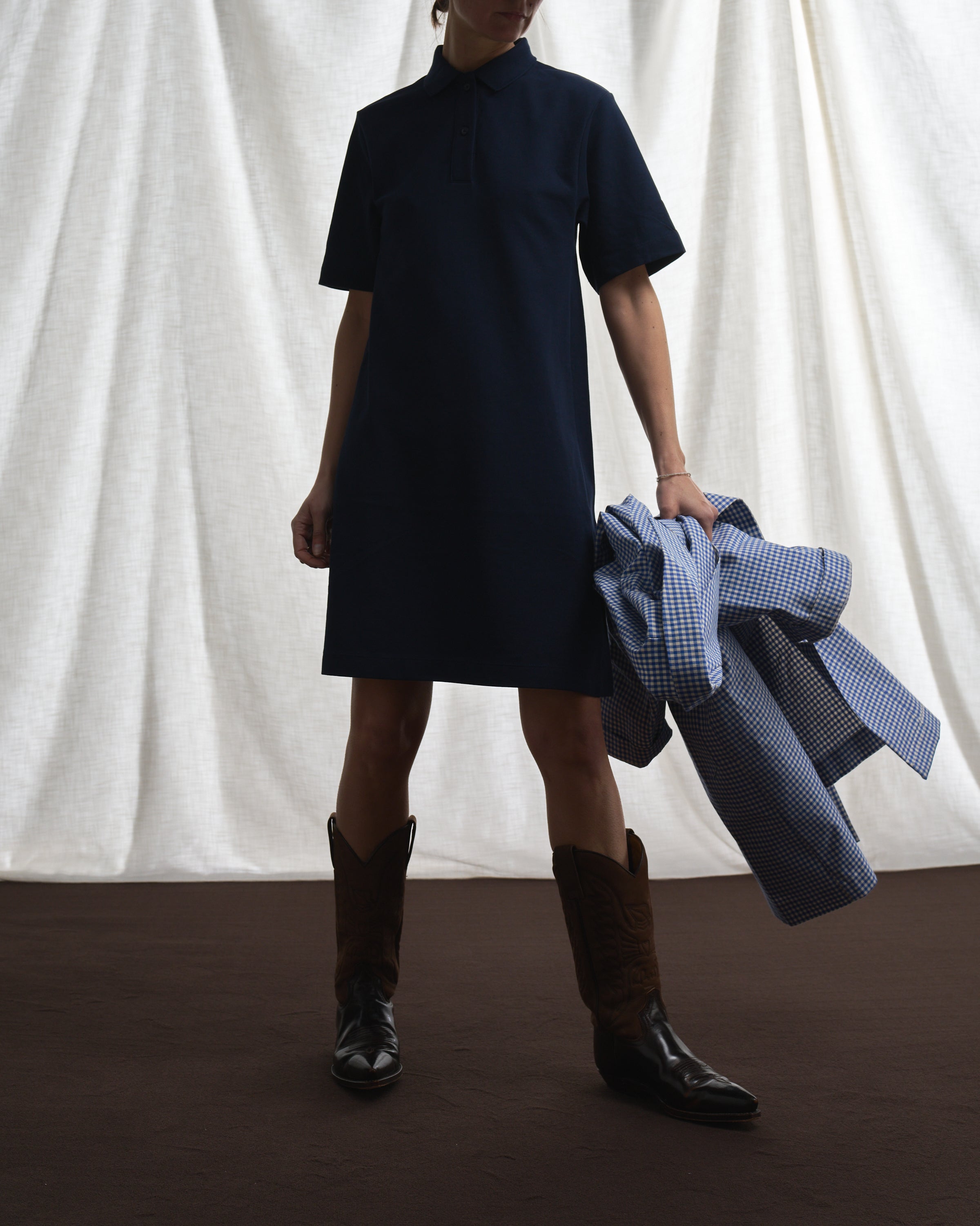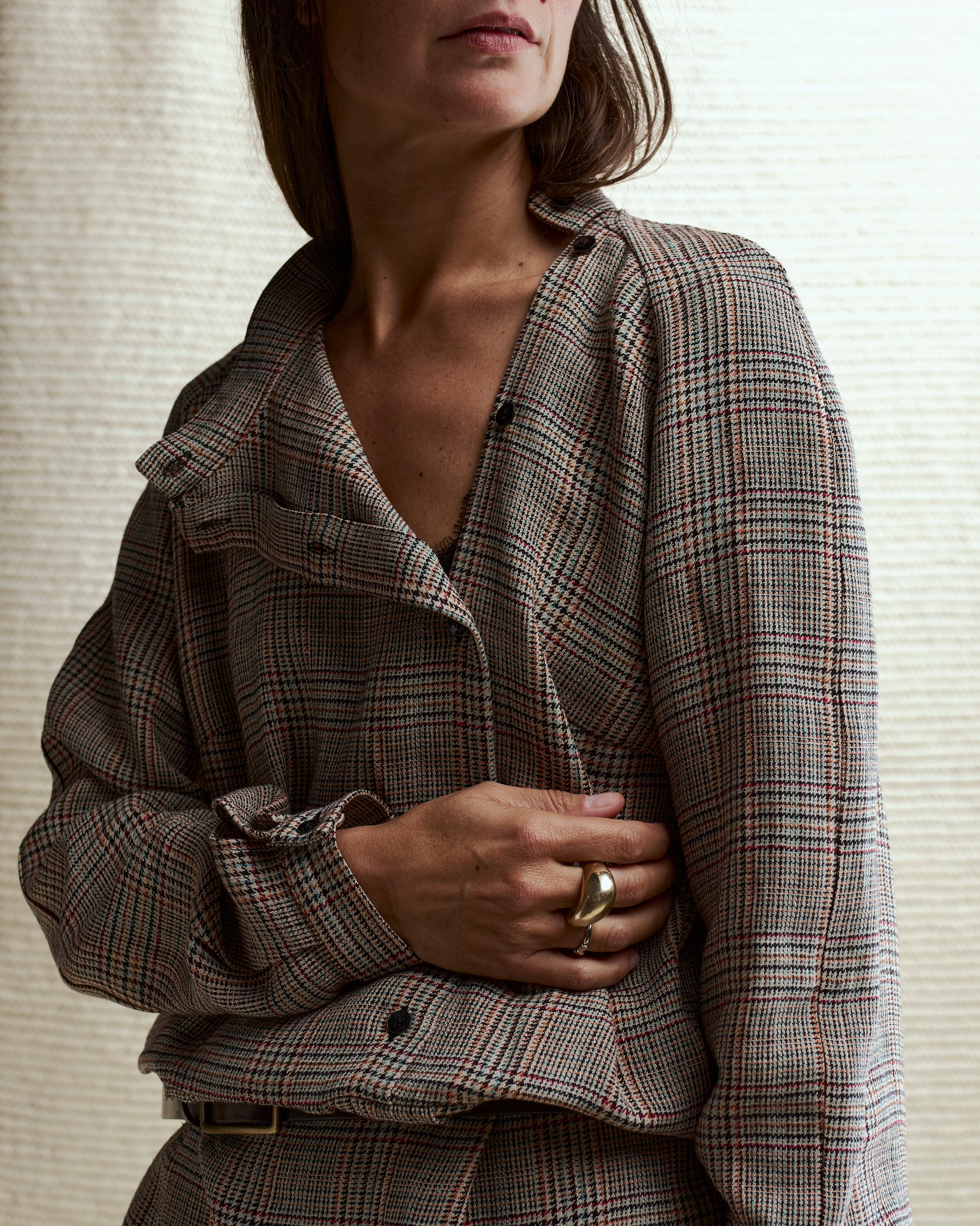 Abito Luisa | Fresco di Lana Principe di Galles Riga Azzurra