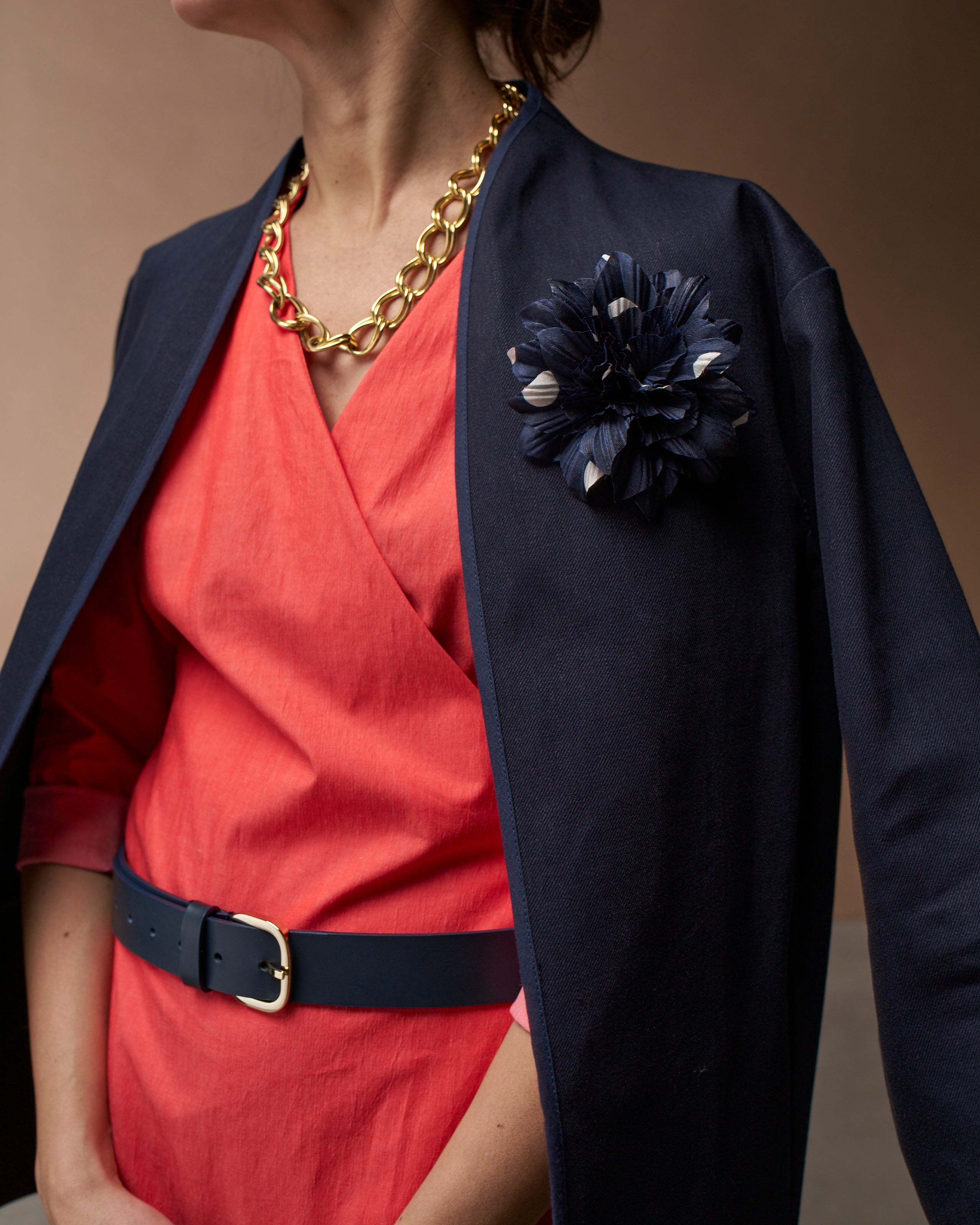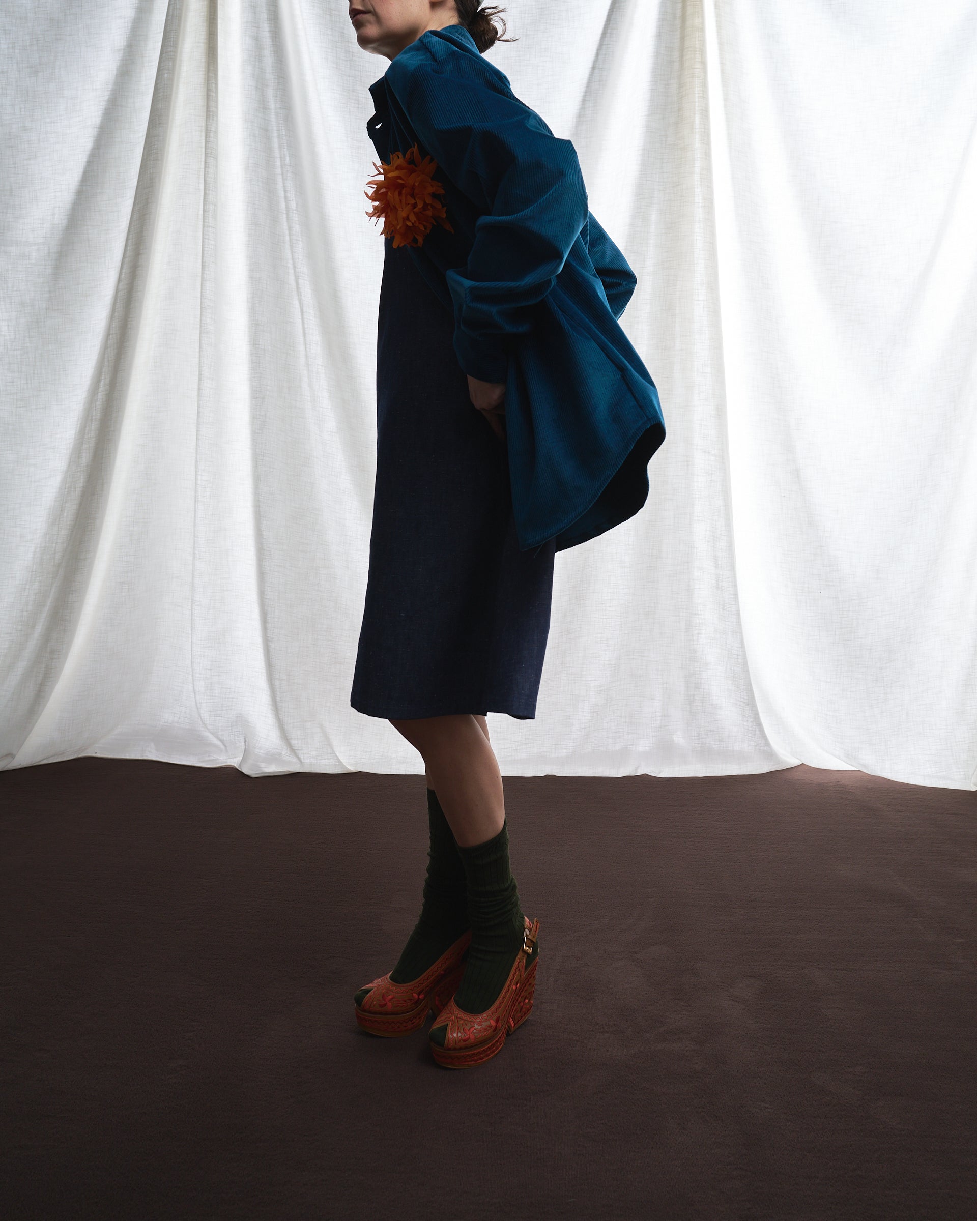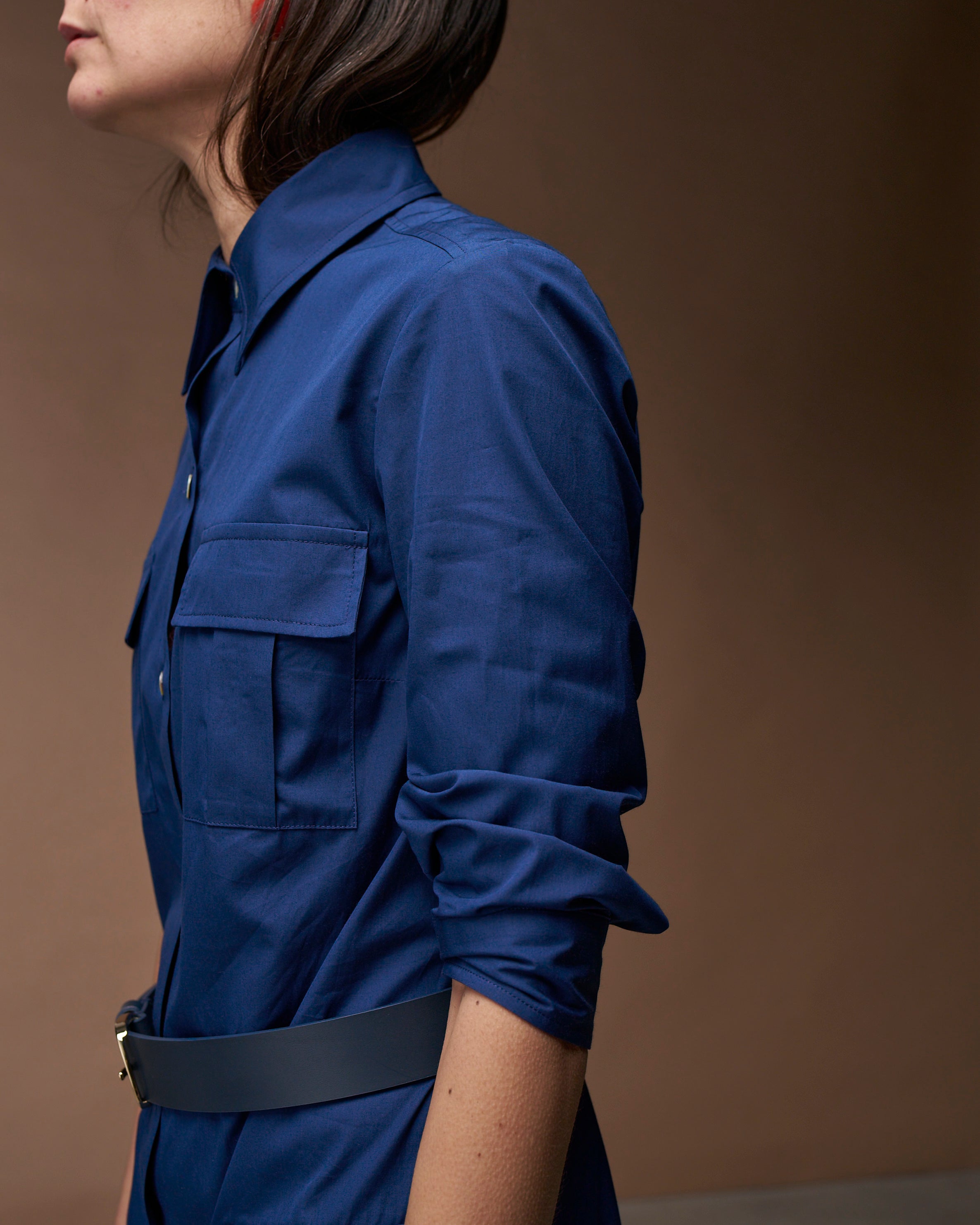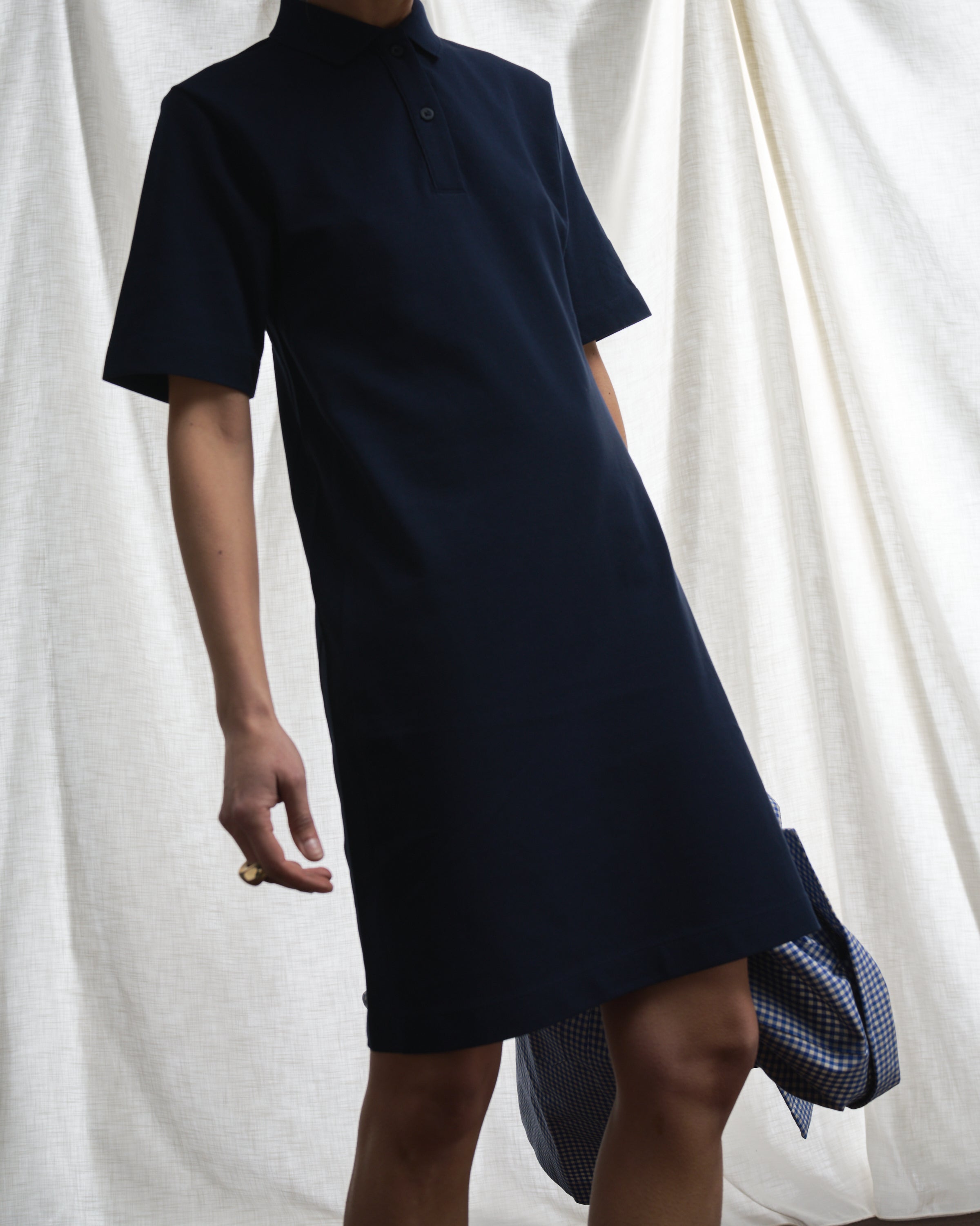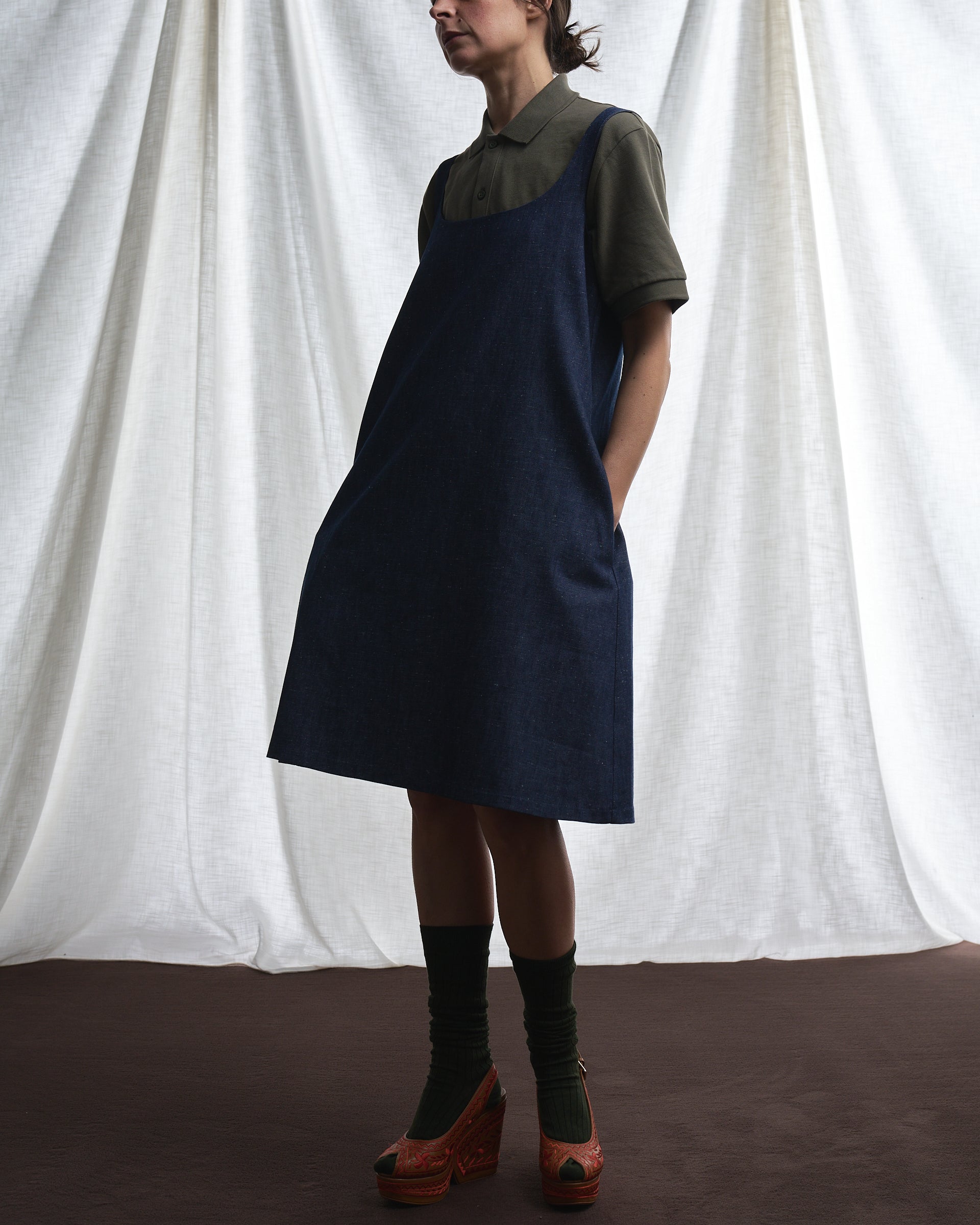 Abito Luisa | Fresco di Lana Principe di Galles Riga Azzurra