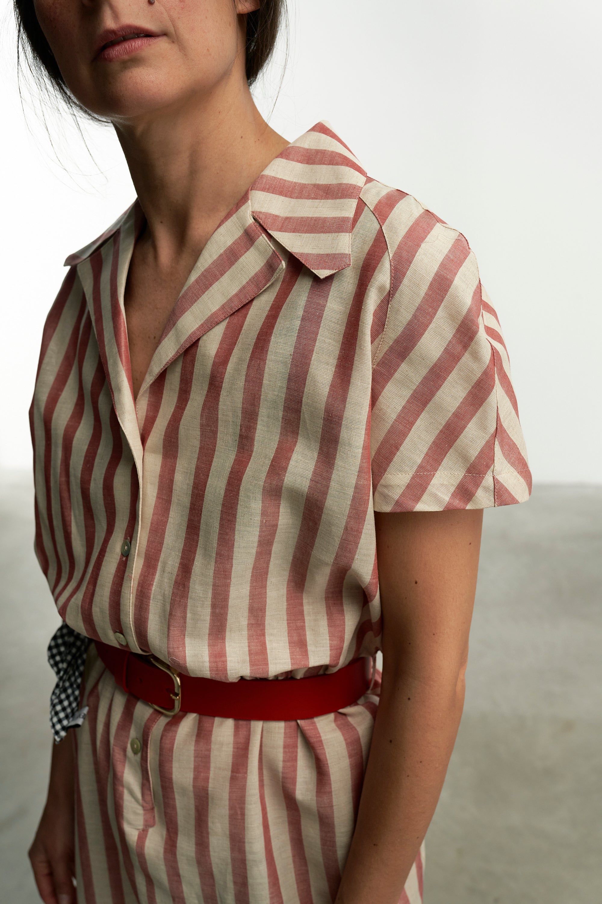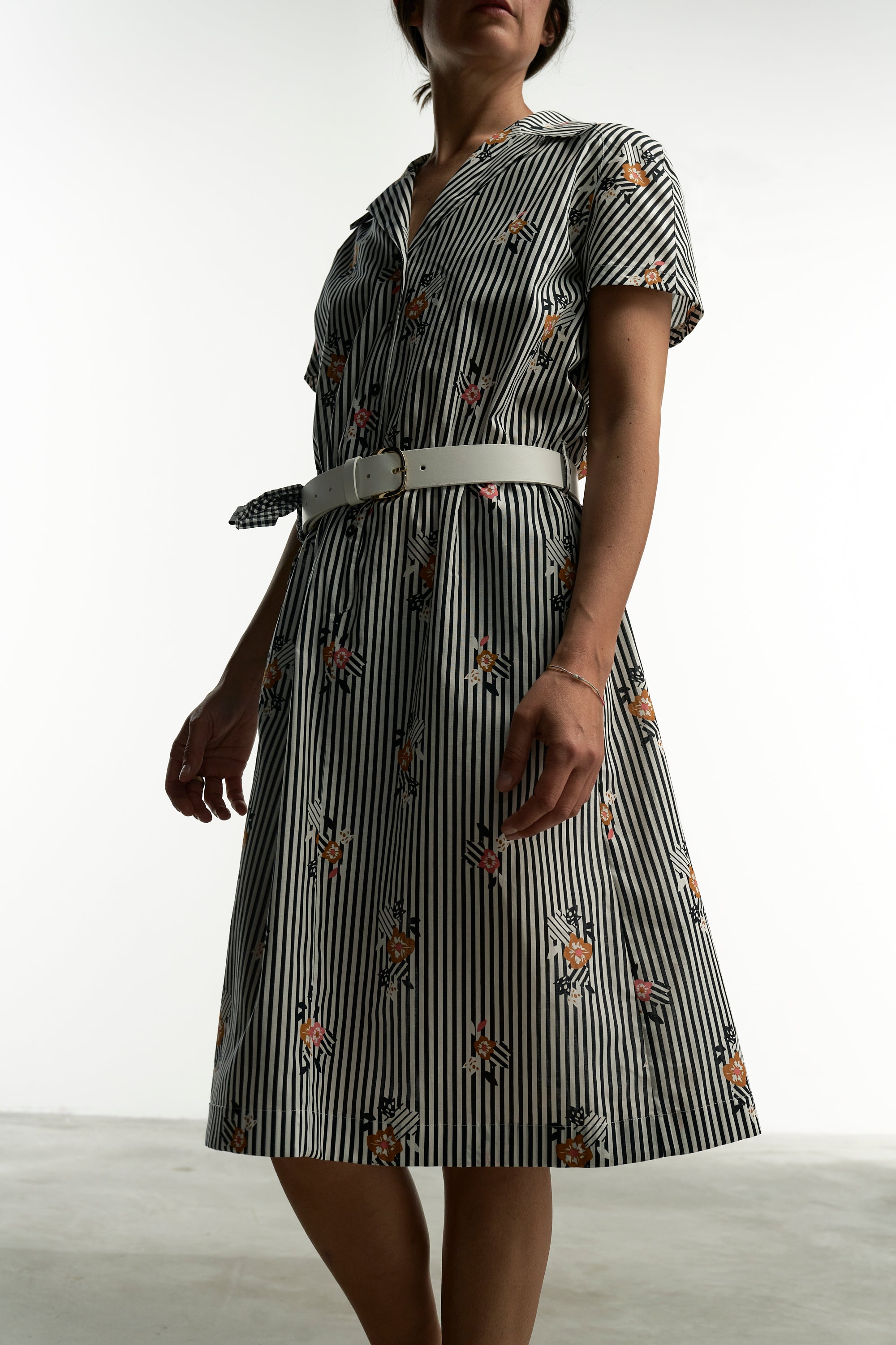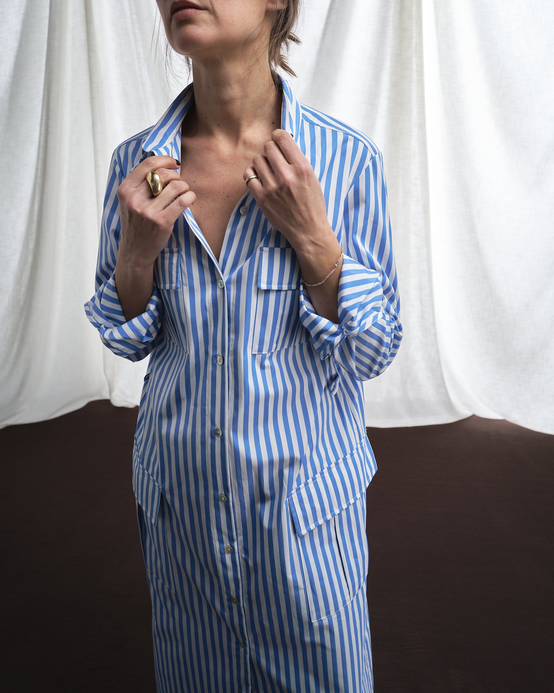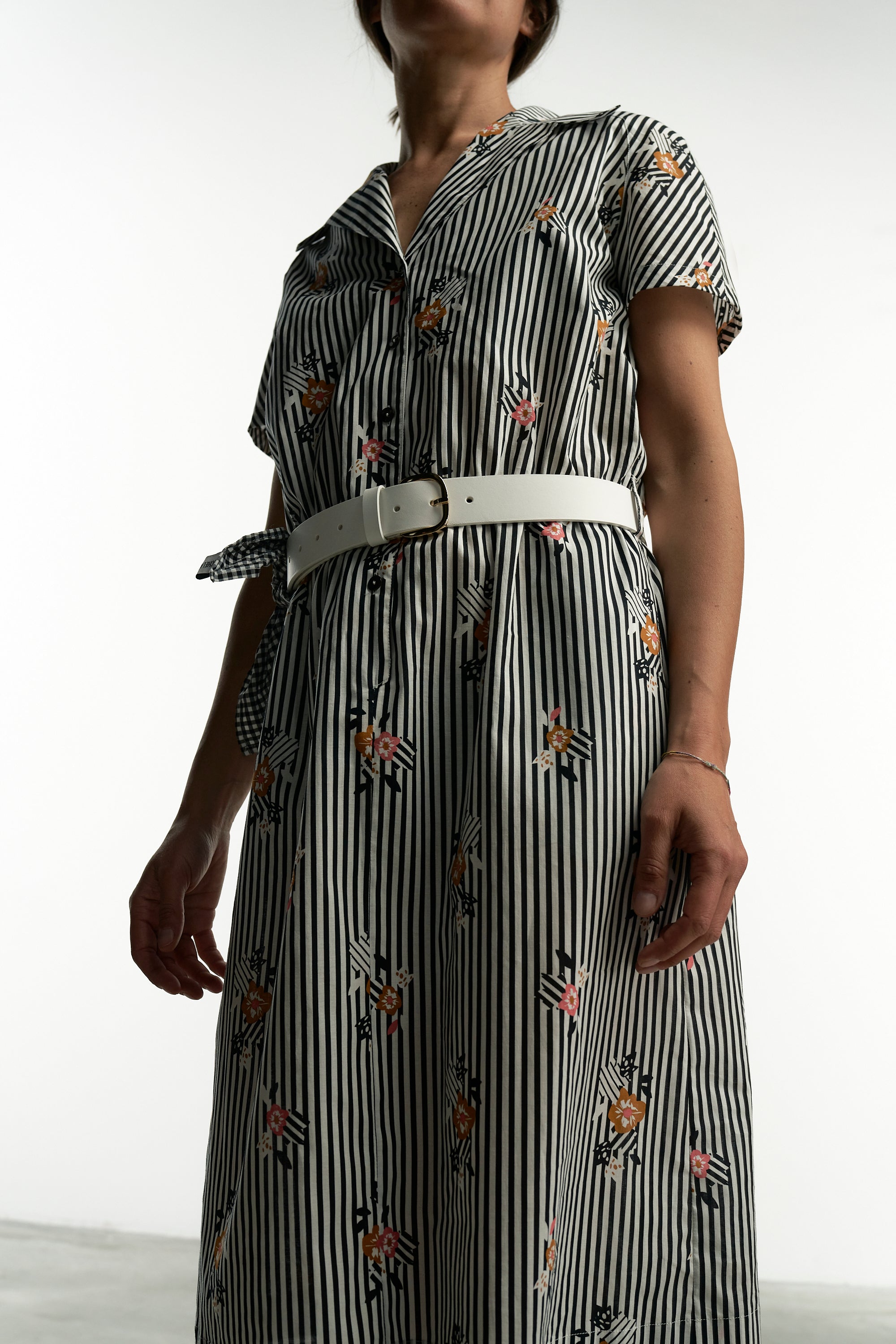 Abito Giovanna | Cotone Righe Bianco e Azzurro