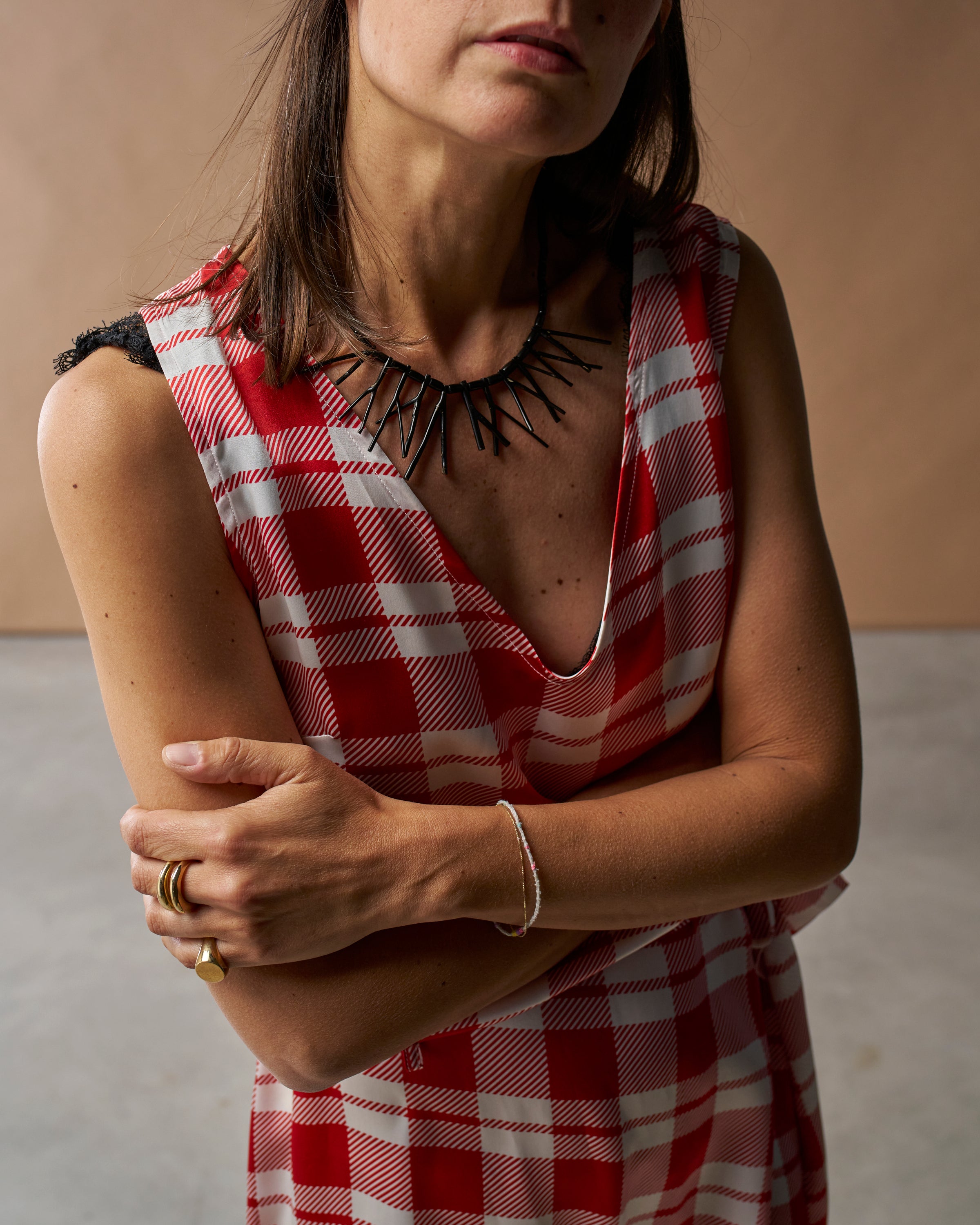 Abito Luisa | Fresco di Lana Principe di Galles Riga Verde