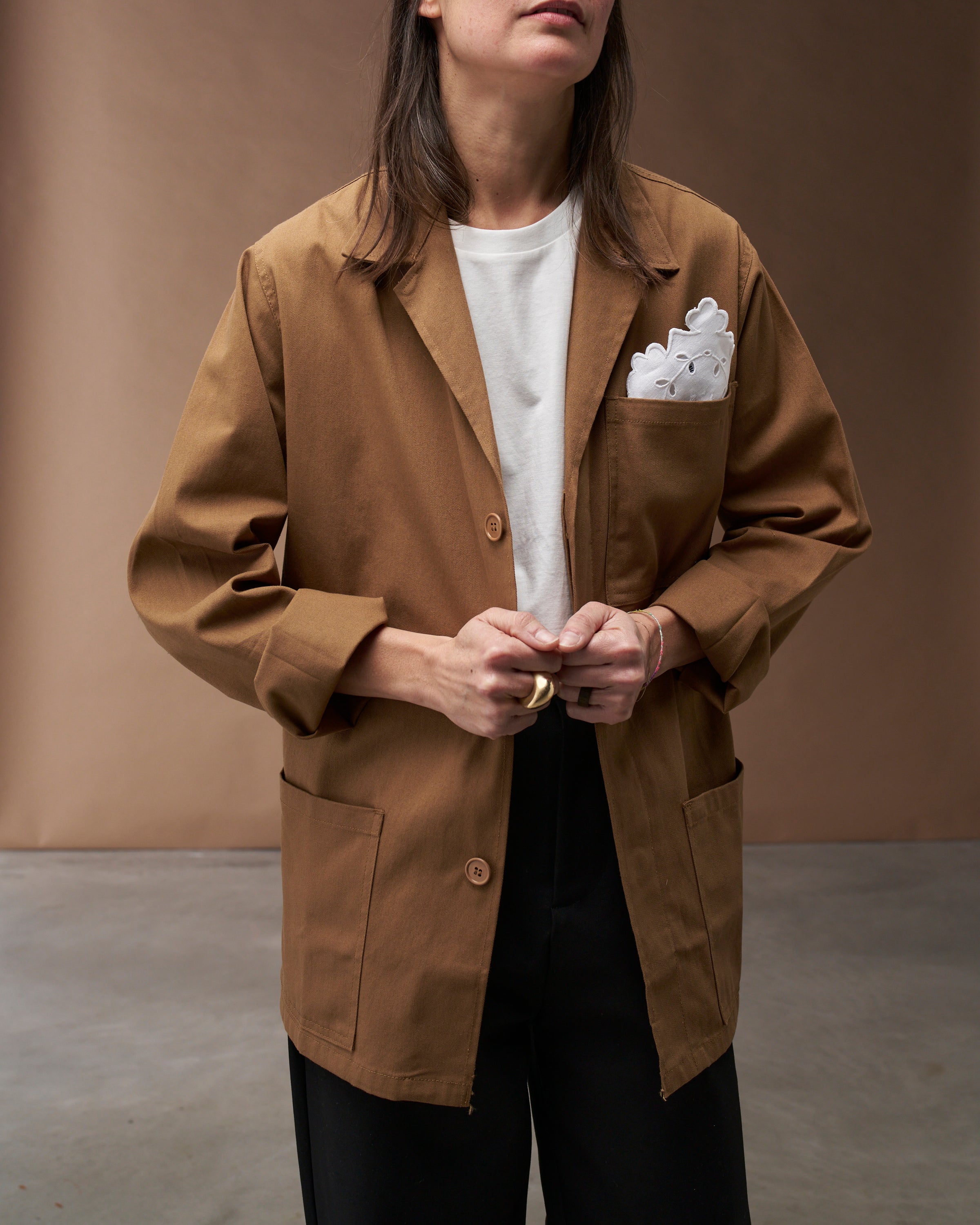 La giacca da lavoro più iconica di sempre, in un colore pass-partout, un bellissimo nocciola.