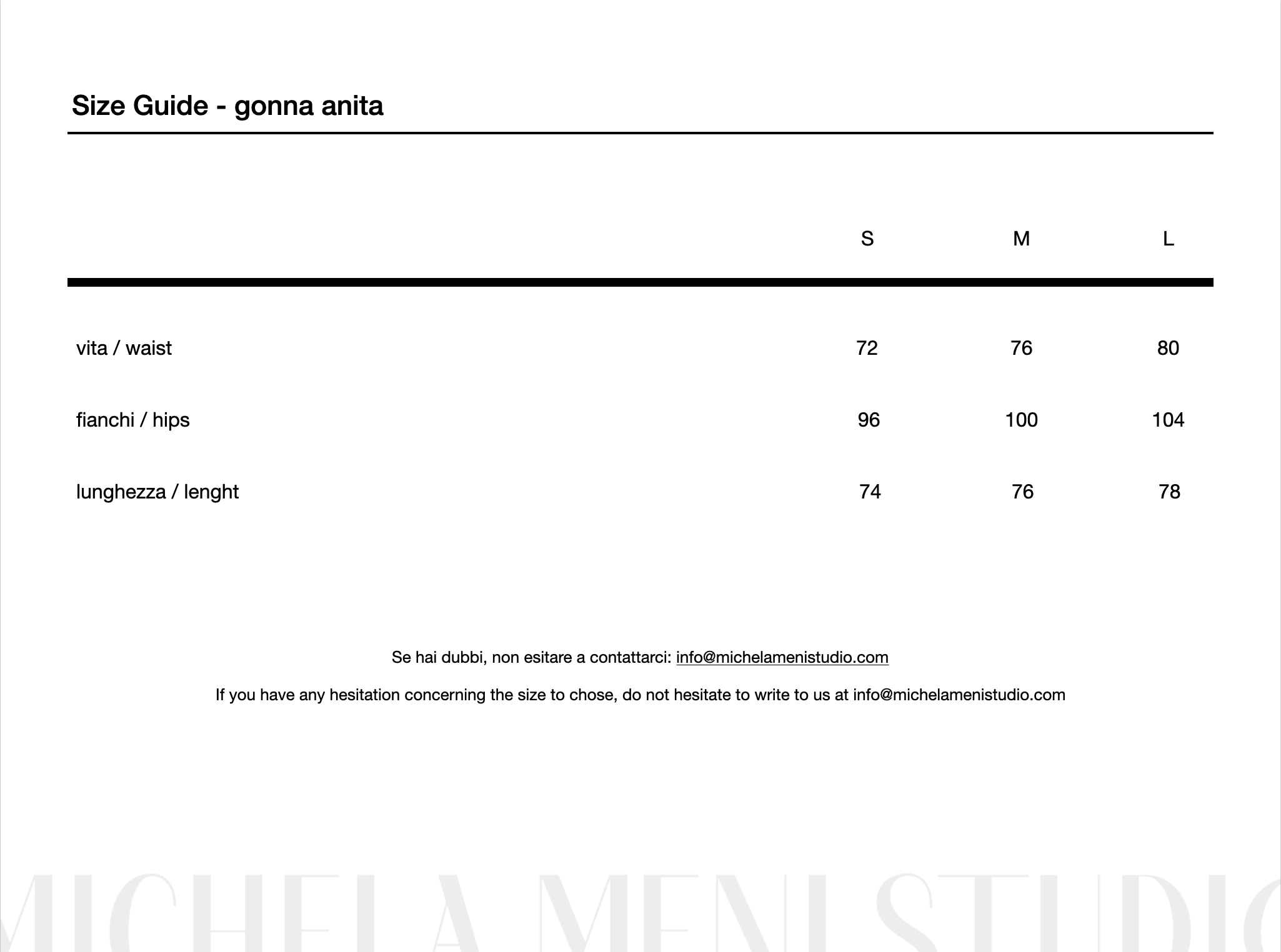 Questa gonna Anita è stata realizzata in pochi pezzi con tessuto deadstock in cotone e una piccola percentuale di elastan (2%) che la rende leggermente elasticizzata e morbida da indossare.
