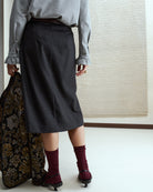 Dalla linea super rigorosa sul davanti, la gonna si adatta alle diverse fisicità grazie alle 2 pinces sul retro.