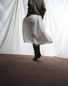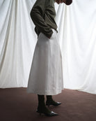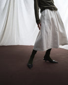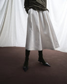 La lunghezza sotto il ginocchio e la linea voluminosa la rendono una gonna passepartout da abbinare ai capi più classici, ma anche ad una semplice t-shirt, perfetta anche con le sneakers e praticamente tutte le tipologie di scarpe.