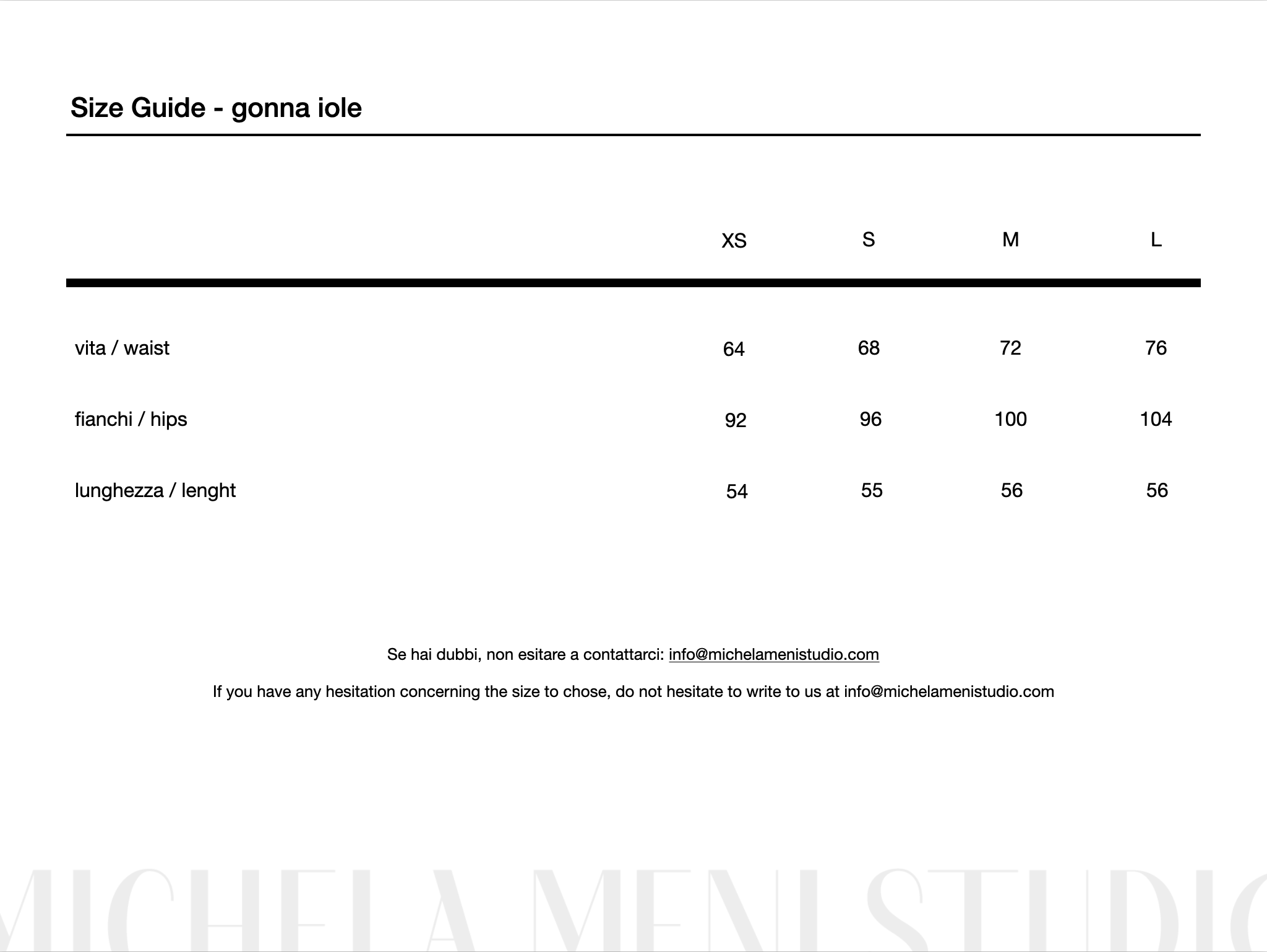 La gonna Iole è la nostra gonna mezza ruota a vita alta.