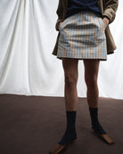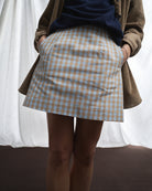 Mini Gonna Fulvia | Cotone Vichy Azzurro e Beige