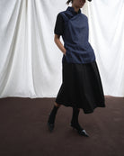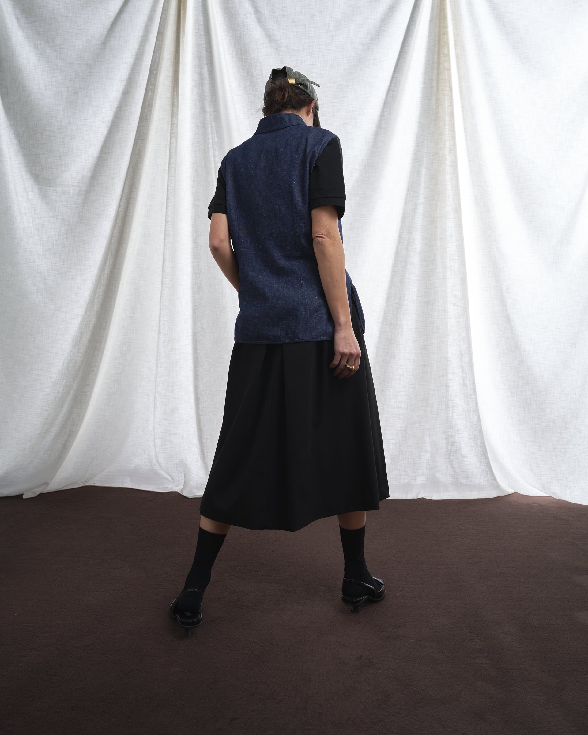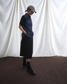Ispirato all’eleganza raffinata del Qipao, il top Macao è un capo esclusivo, realizzato in un classico denim blu.