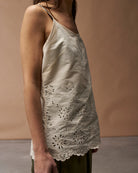 Essenziale, comodo e fresco, ma anche super femminile e raffinato, il bordo smerlato e i ricami del tessuto lo rendono ancora più speciale.