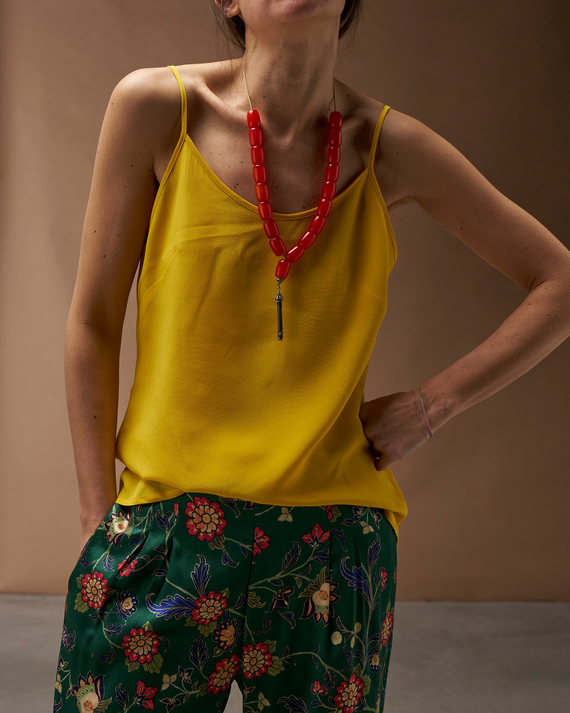 Un classicissimo top con spalline sottili, elegante, ma pratico.