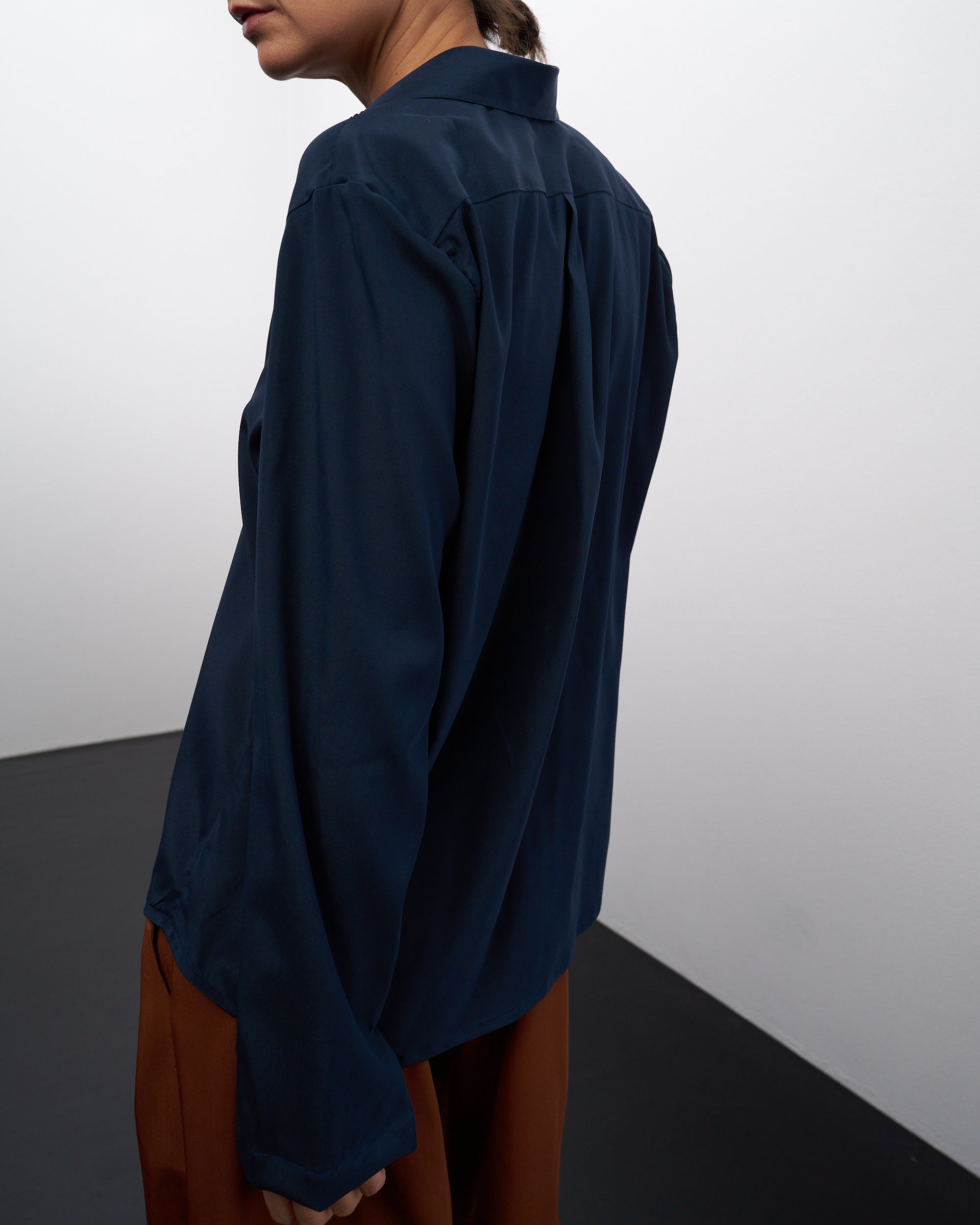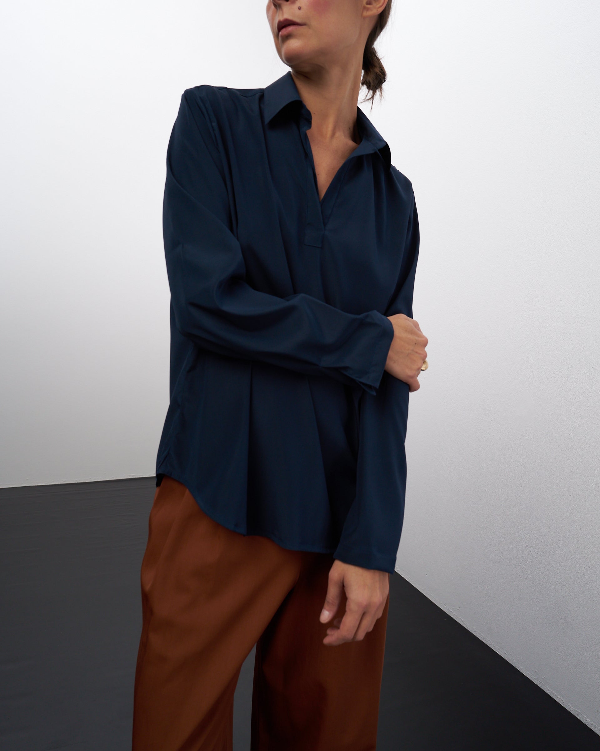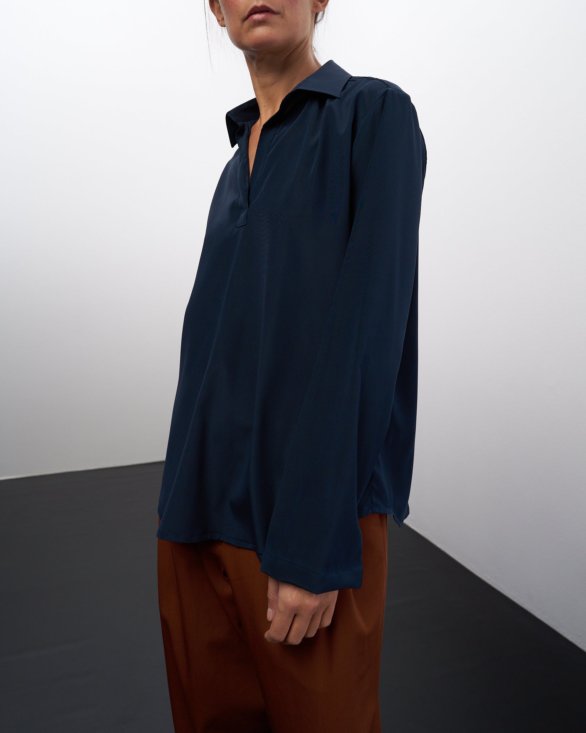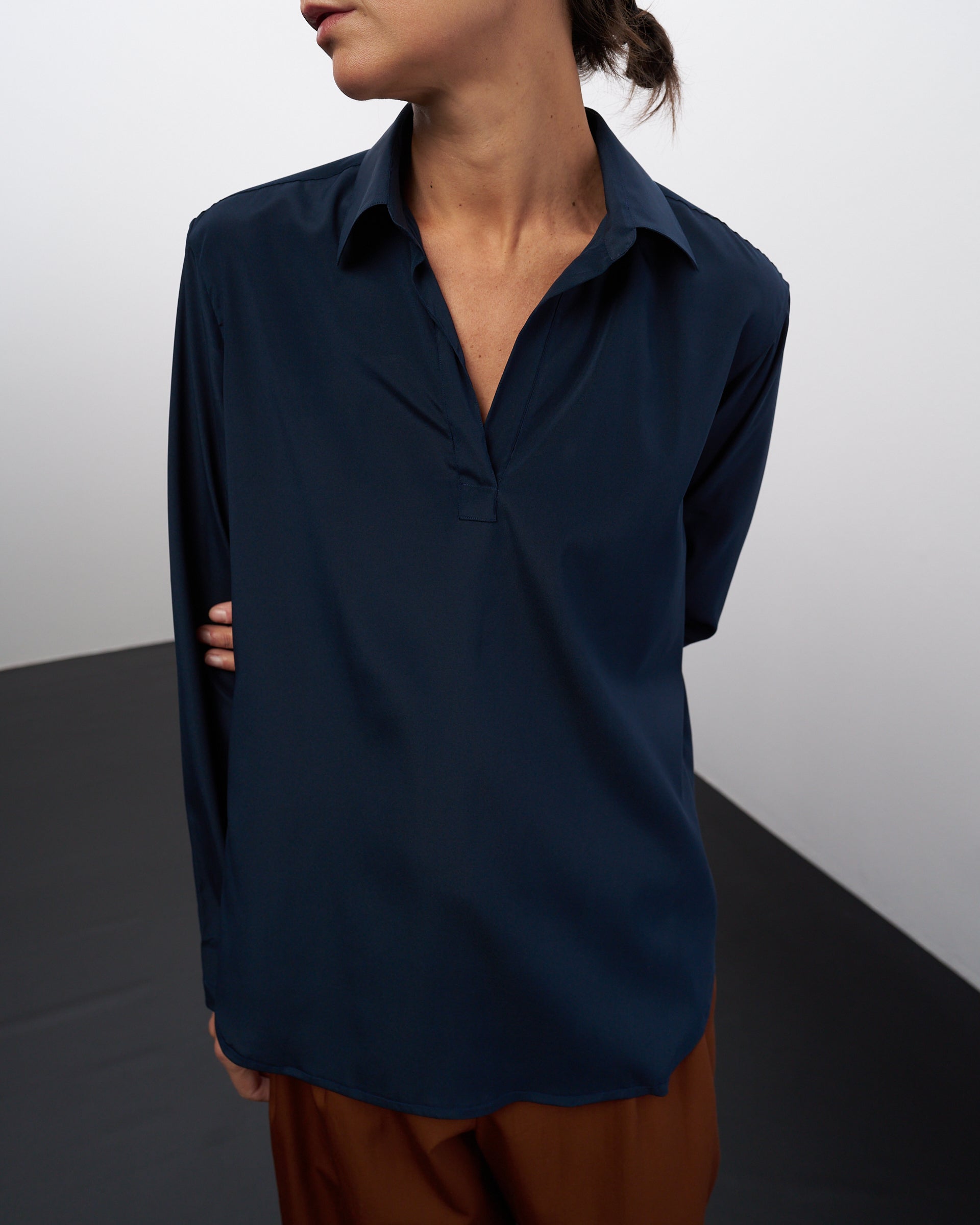 Una blusa dal disegno rigoroso e dal sapore casual, senza rinunciare all'eleganza.