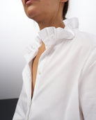 Le ruches ampie e voluminose sul collo e ai polsi, aggiungono un tocco accattivante e irriverente che trasforma con eleganza e femminilità anche i look più basici.