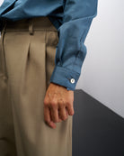 Il collo può essere lasciato slacciato e aperto e appoggiarsi sul davanti (anche se avete una maglia sopra la camicia) oppure essere allacciato a formare un piccolo fiocco.