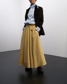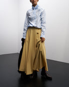 La silhouette leggermente sciancrata, le maniche lunghe e non troppo ampie, i bottoni coperti e soprattutto il collo a fiocco, la rendono davvero unica.