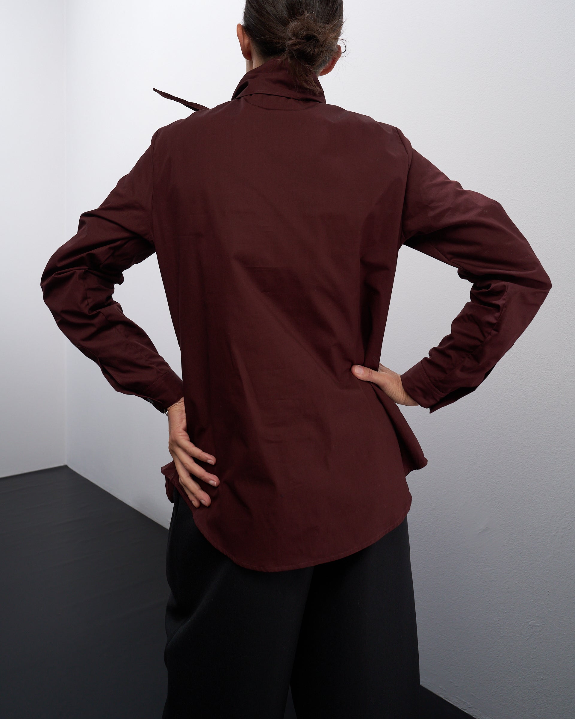 Il collo può essere lasciato slacciato e aperto e appoggiarsi sul davanti (anche se avete una maglia sopra la camicia) oppure essere allacciato a formare un piccolo fiocco.