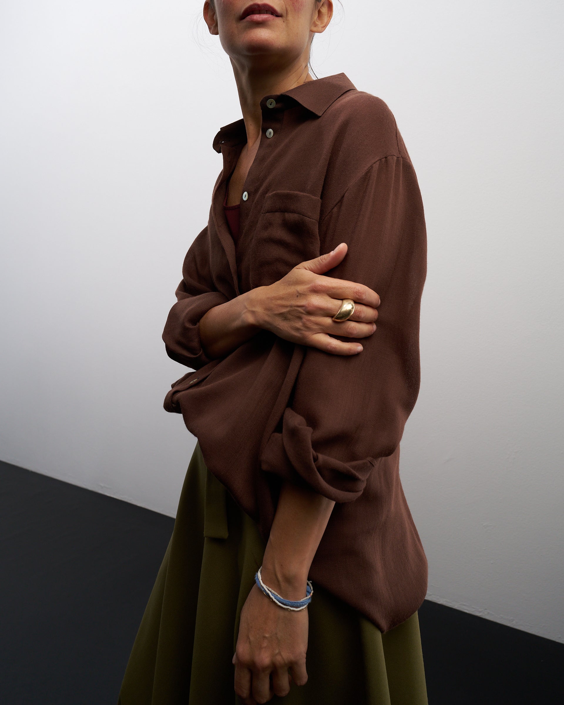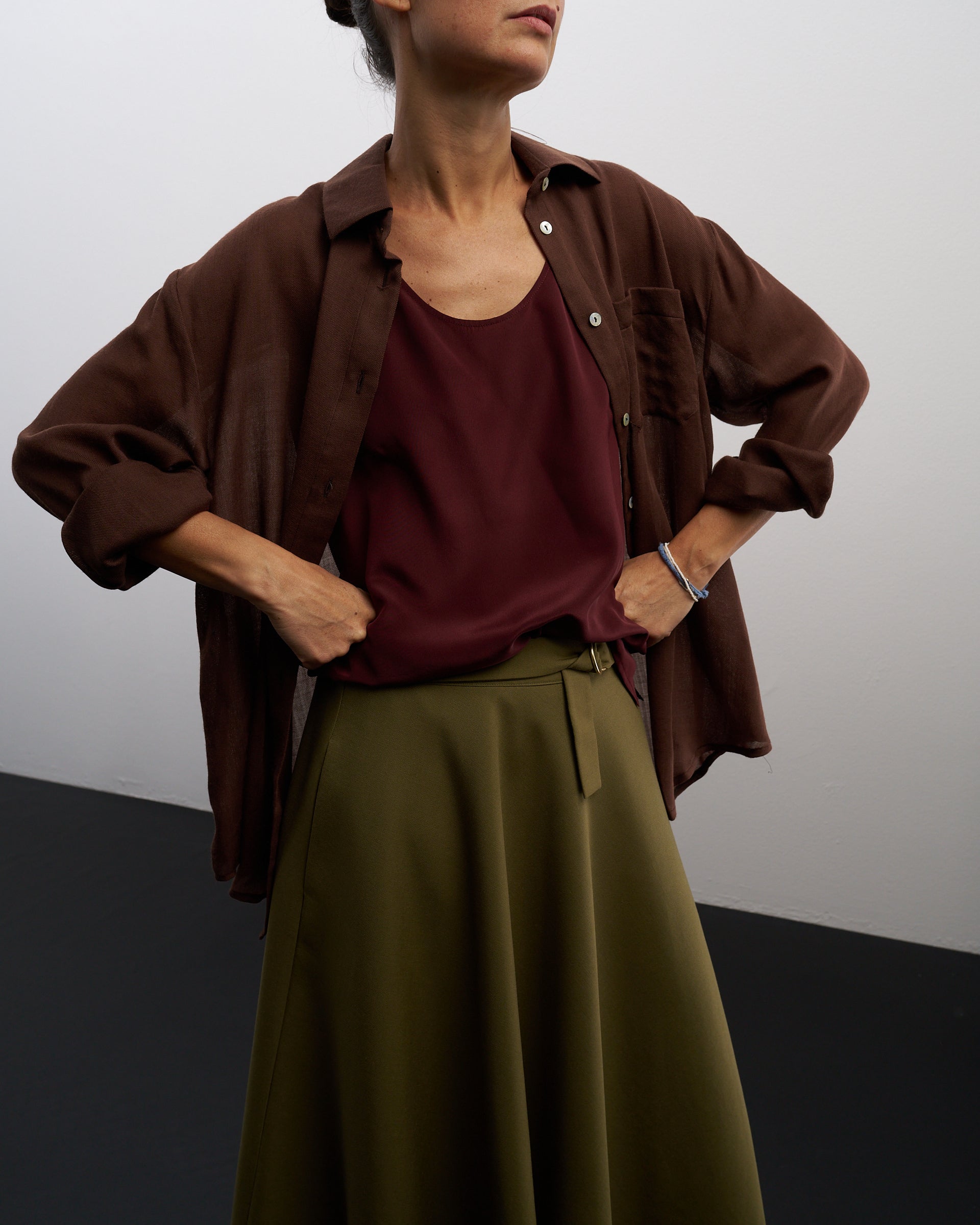 Abbinata a pantaloni e gonne, la camicia Lina sarà un'ottima alleata per i tuoi look.