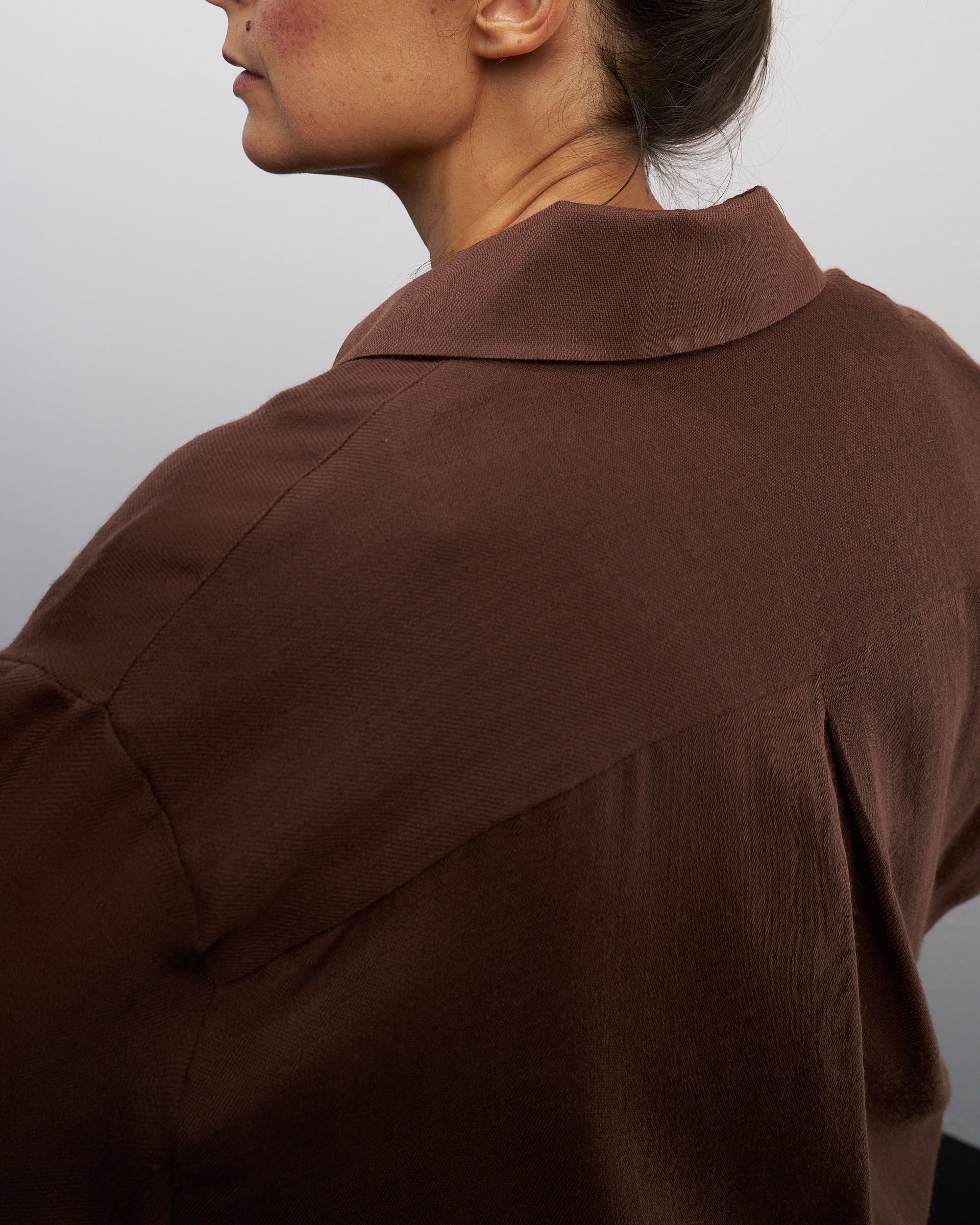 Una camicia classica e indispensabile, in una morbida garza di lana, a maniche lunghe, con tasca applicata sul davanti e sfondo piega sul retro.