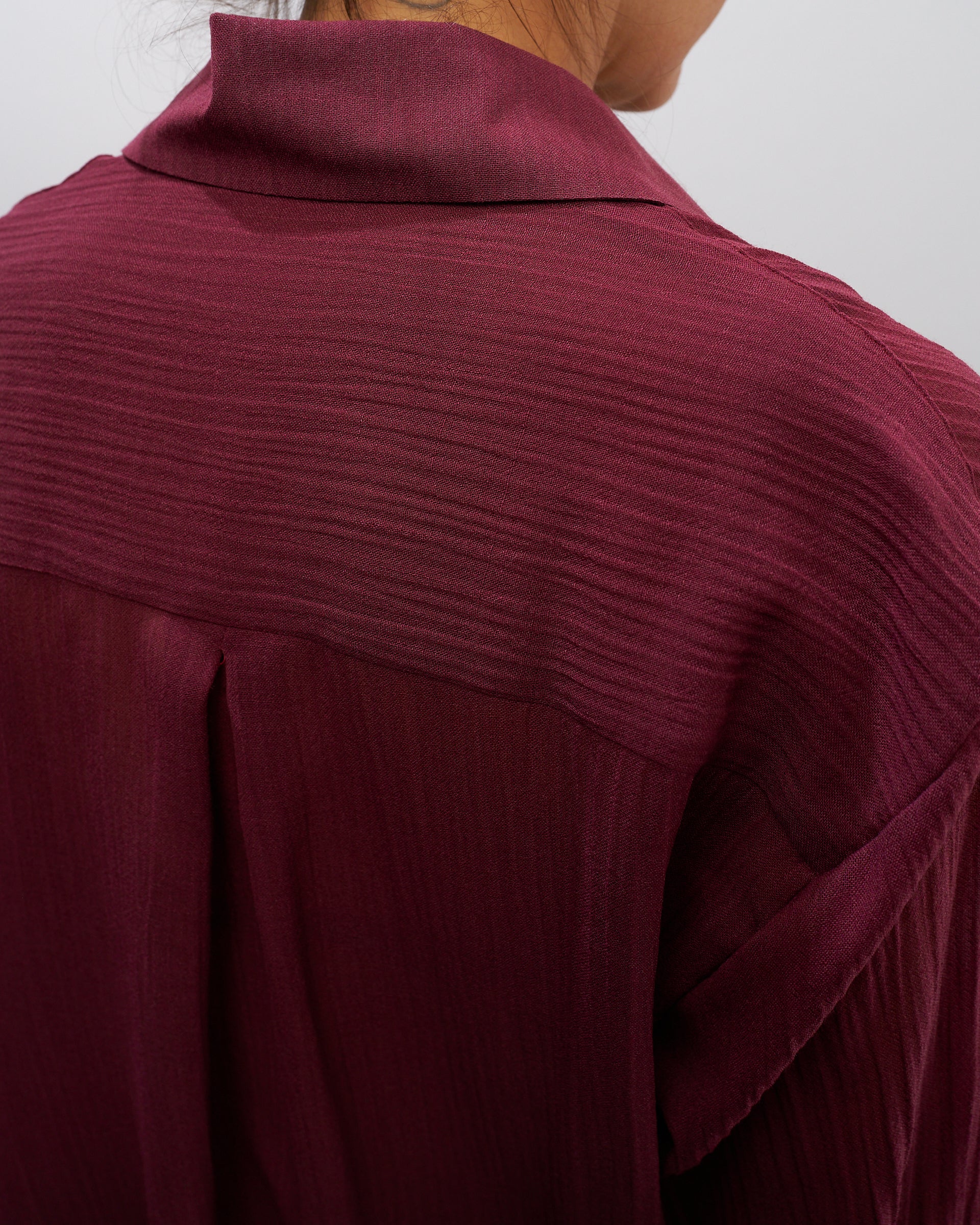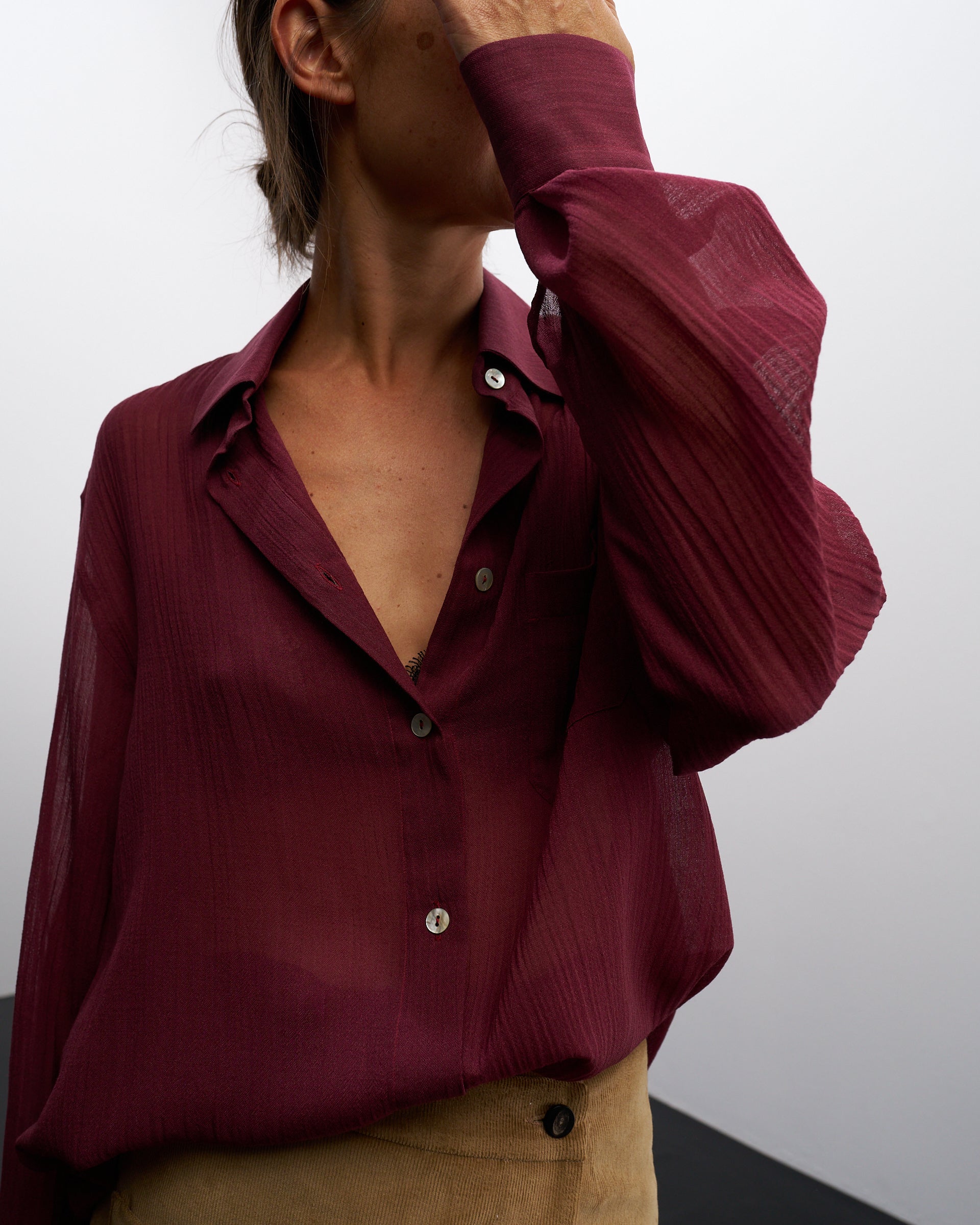 Una camicia classica e indispensabile, in una morbida garza di lana, a maniche lunghe, con tasca applicata sul davanti e sfondo piega sul retro.