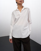 Una blusa dal disegno rigoroso e dal sapore casual, senza rinunciare all'eleganza.