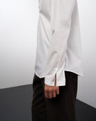 La silhouette è dritta e pulita, realizzata quì nel più classico popeline bianco, per diventare il vostro nuovo must have.