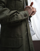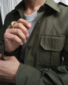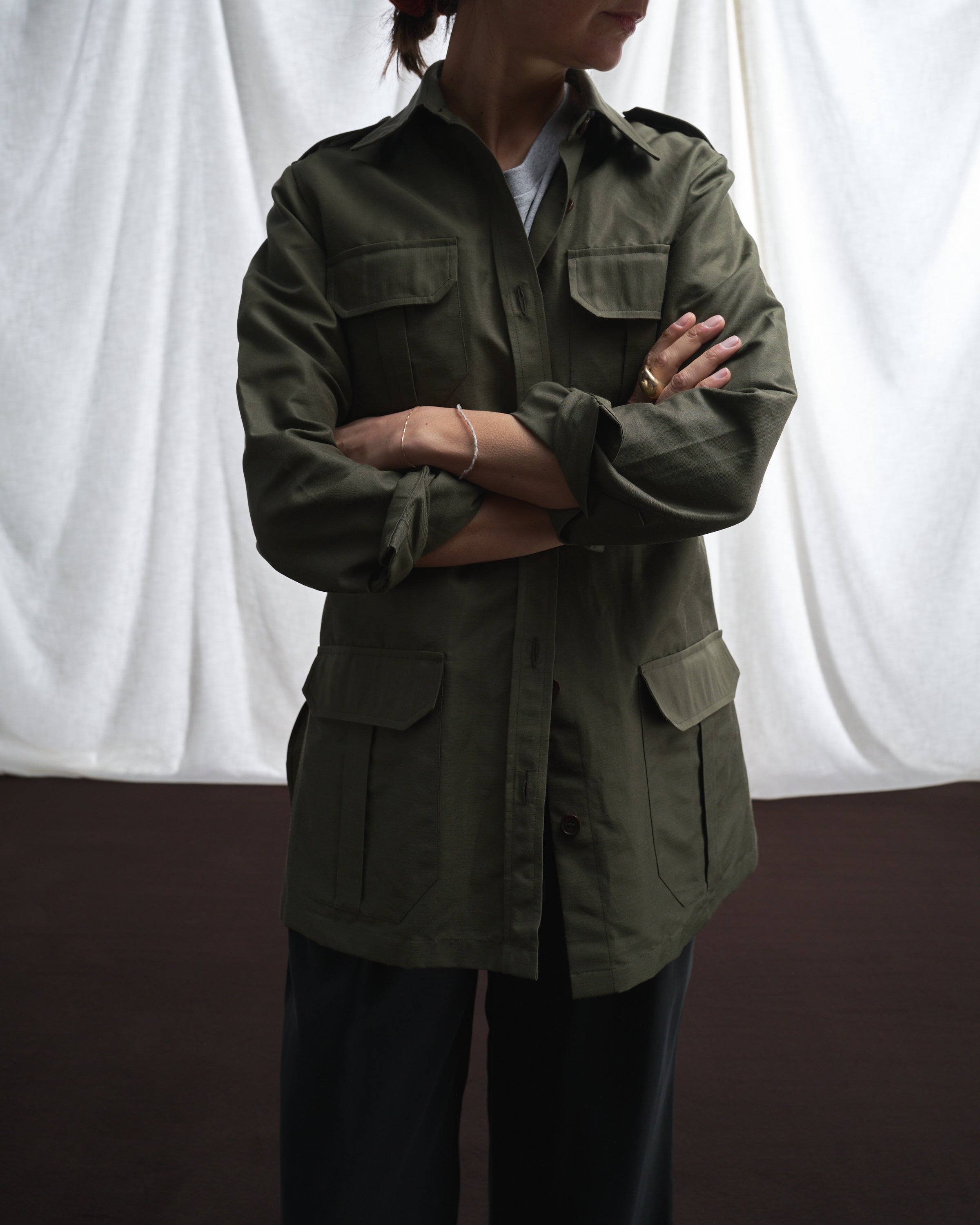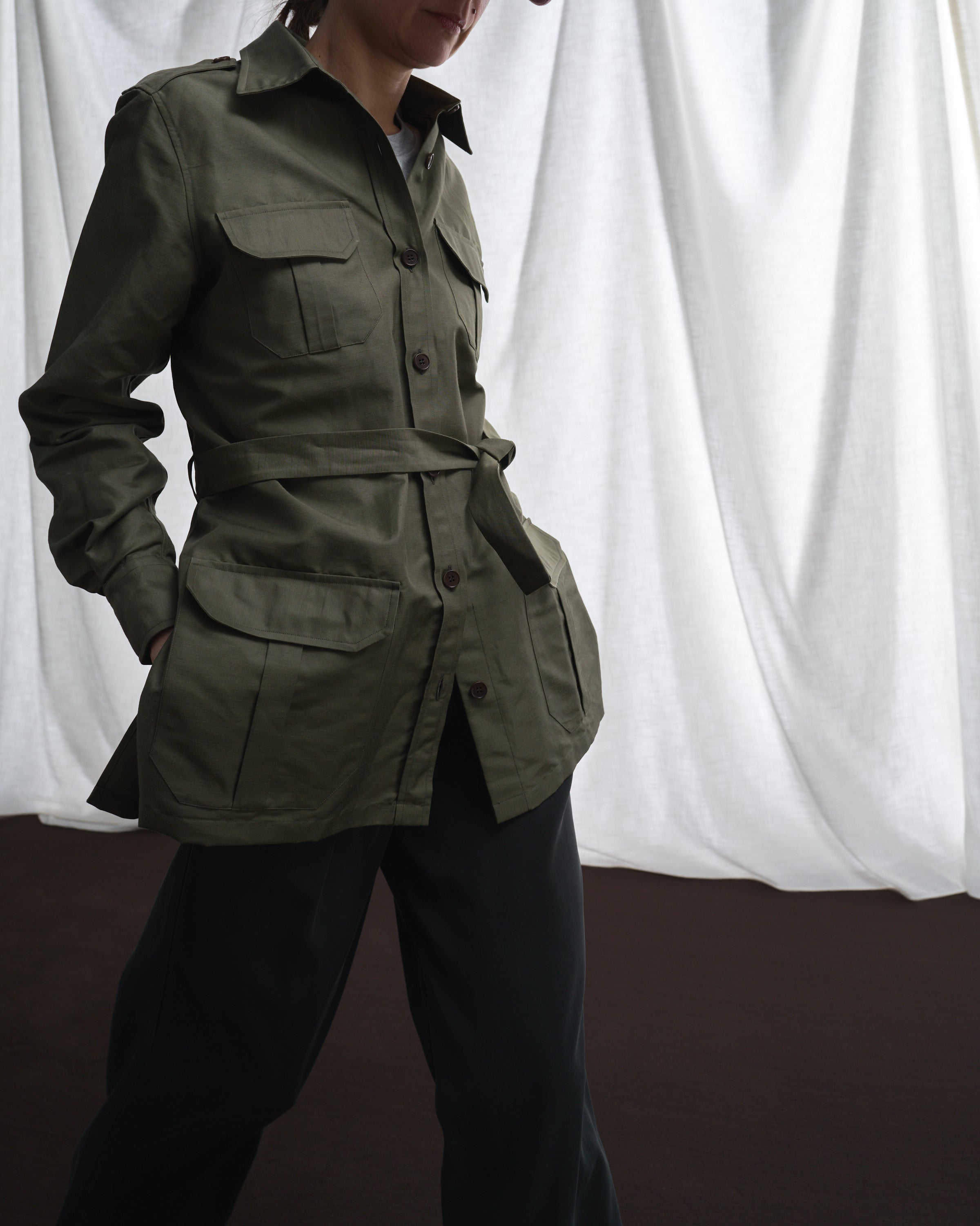 Fondamentali i dettagli che la caratterizzano: quattro tasche applicate, fusciacca alta, mostrine sulle spalle. Tutti elementi imprescindibili che arricchiscono questa giacca/camicia dal forte carattere e fascino senza tempo.