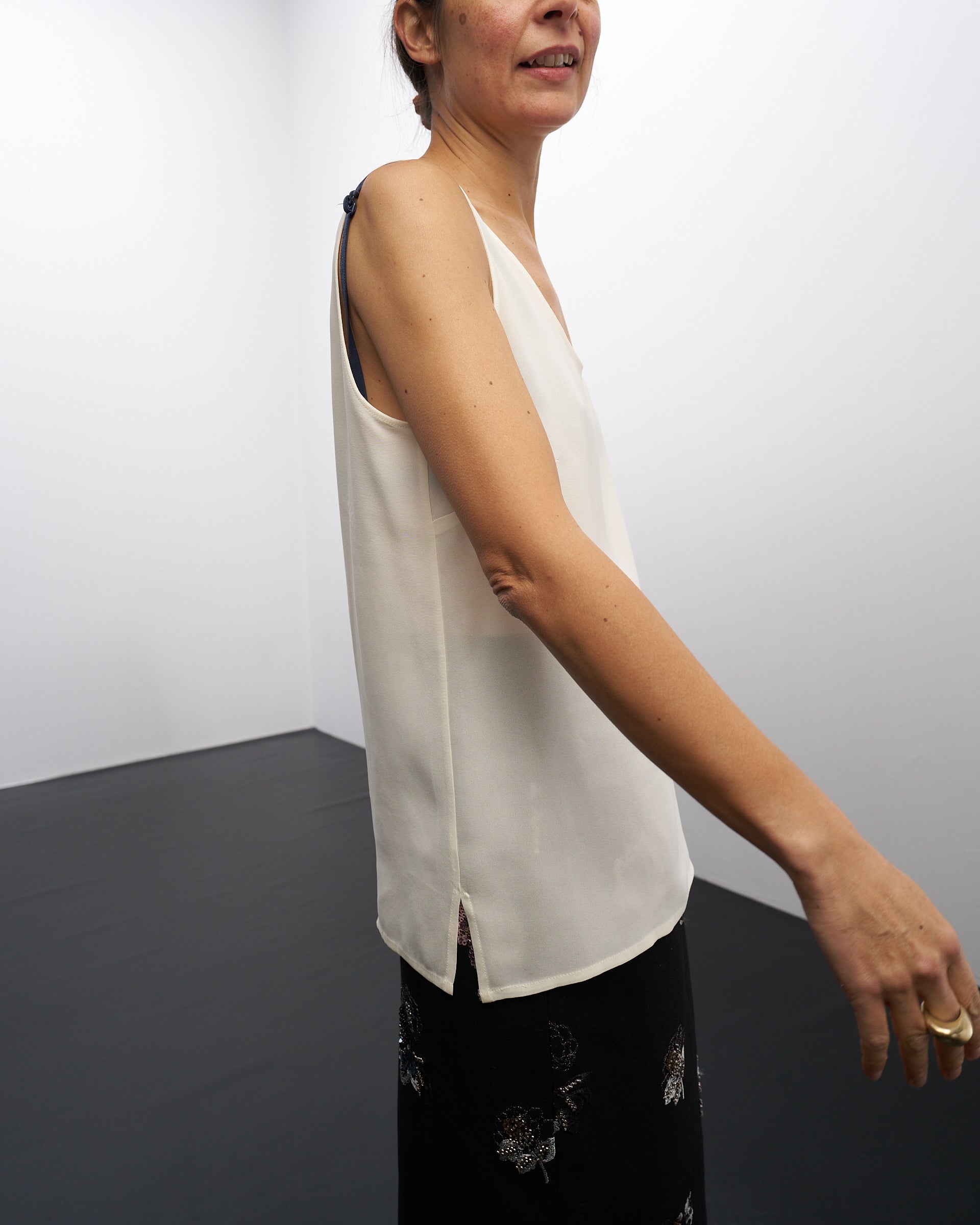 Un top ampio e comodo, ma super femminile ed elegante, realizzato in seta.