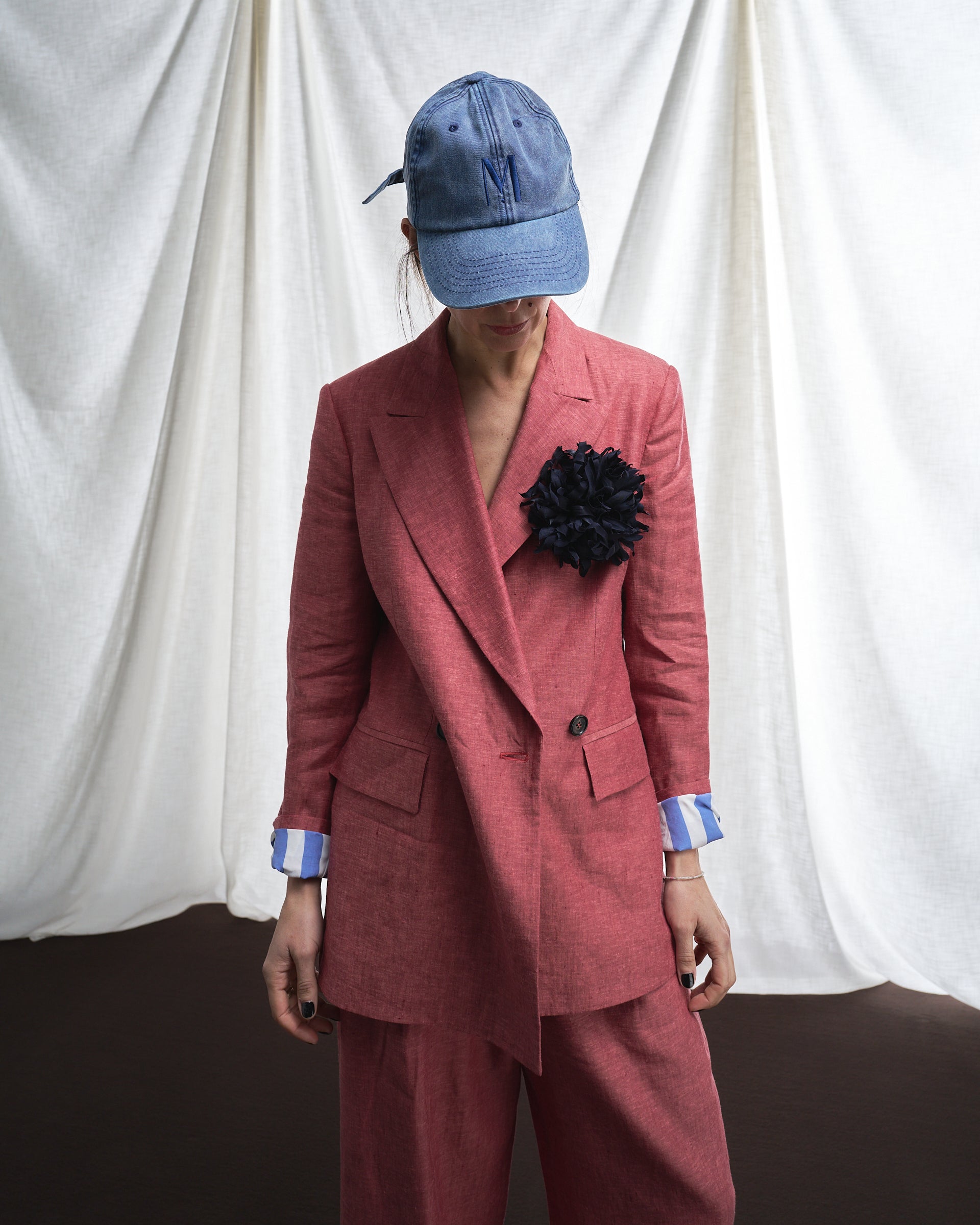 Design a 6 pannelli basso profilo, calotta morbida senza intelaiatura, visiera pre-curvata, occhielli di ventilazione cuciti, chiusura dello stesso tessuto con fibbia effetto ottone, logo ricamato.