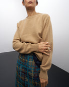 La maglia girocollo, realizzata in cachemire rigenerato, è un capo versatile e confortevole.