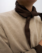 La maglia girocollo, realizzata in cachemire rigenerato, è un capo versatile e confortevole.