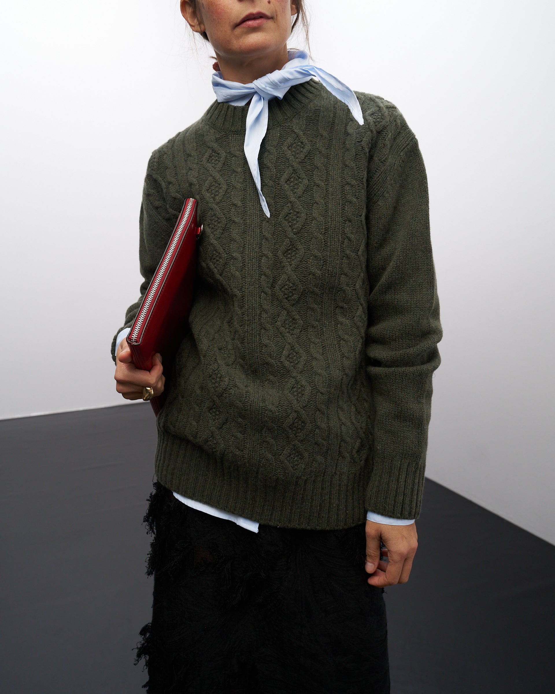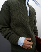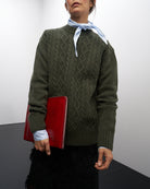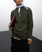 Maglione Trecce | Lana Rigenerata Verde Bosco