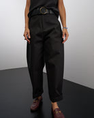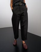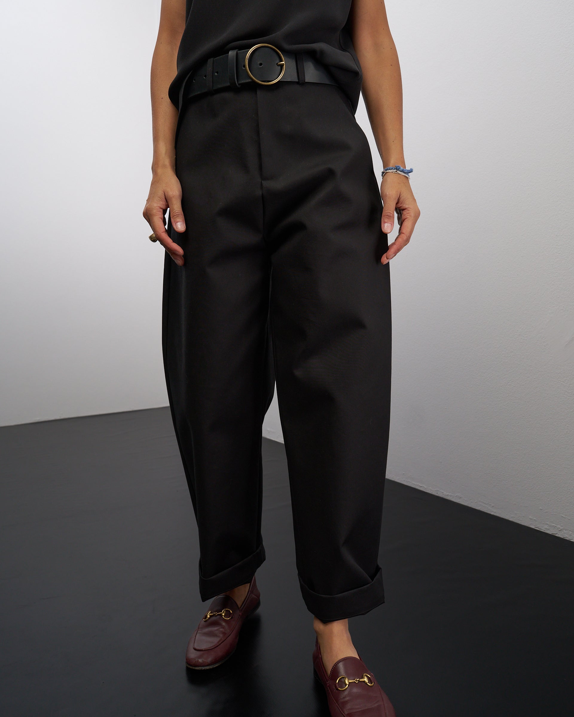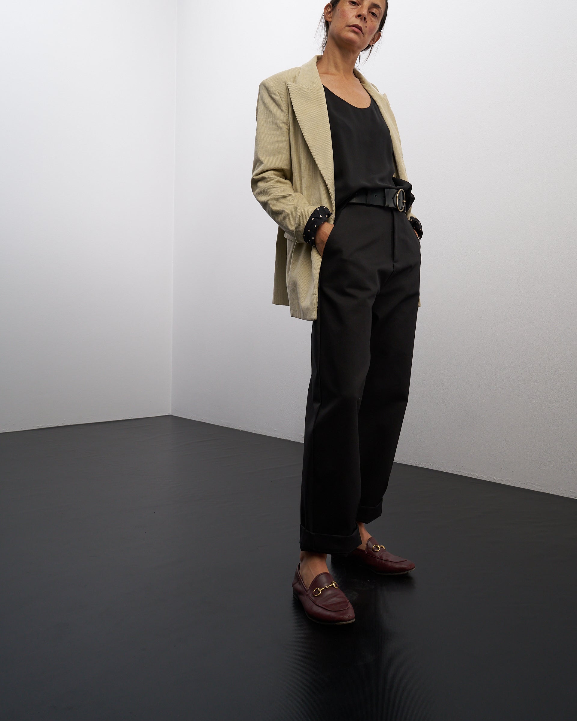 Ettore è un pantalone dalla linea leggermente a uovo, lunghezza alla caviglia, da regolare con un risvolto o come più vi piace.