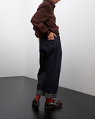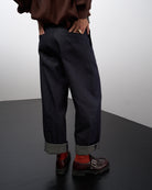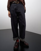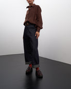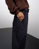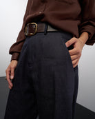 Ettore è un pantalone dalla linea leggermente a uovo, lunghezza alla caviglia, da regolare con un risvolto o come più vi piace.