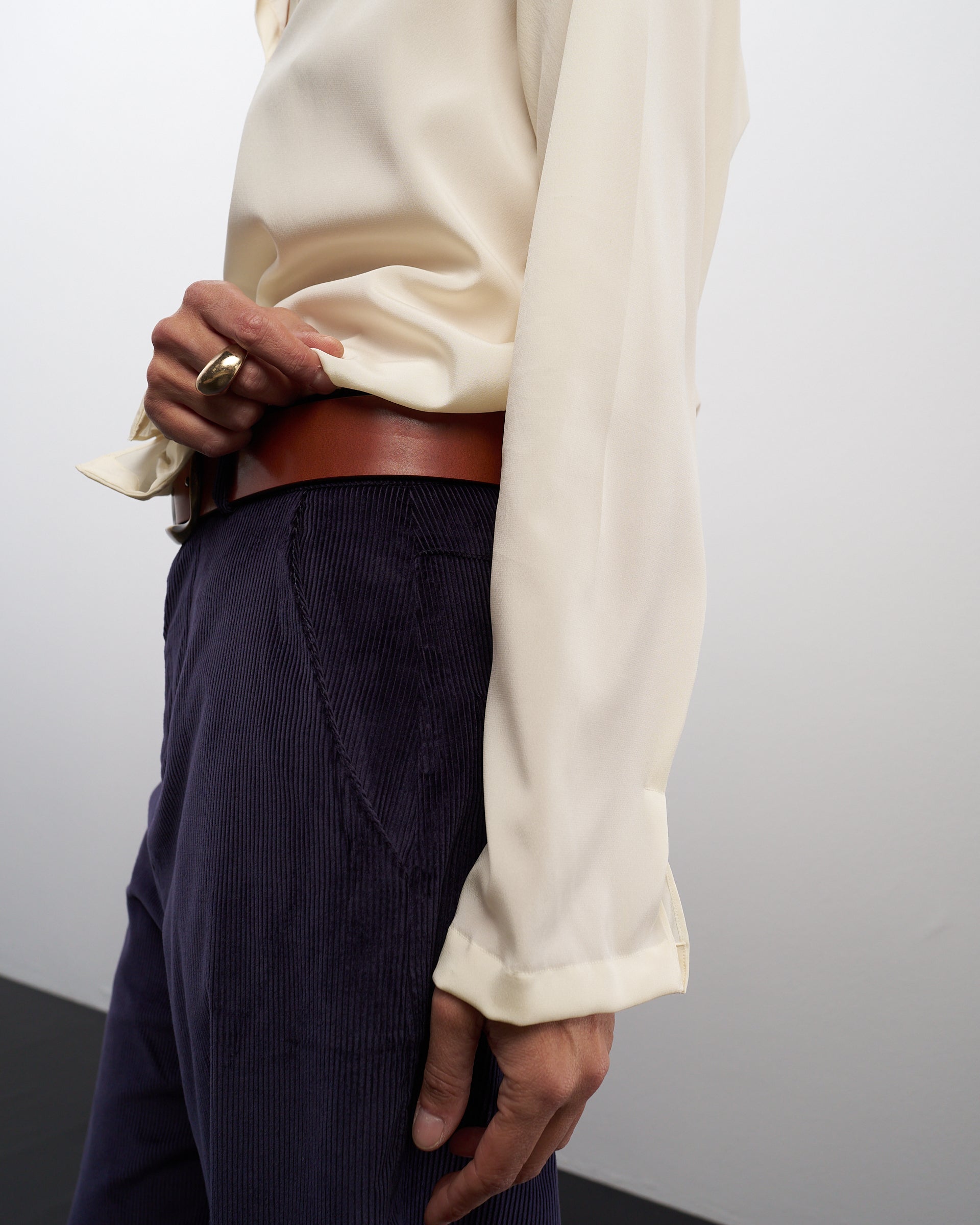Ettore è un pantalone dalla linea leggermente a uovo, lunghezza alla caviglia, da regolare con un risvolto o come più vi piace.