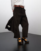 Ettore è un pantalone dalla linea leggermente a uovo, lunghezza alla caviglia, da regolare con un risvolto o come più vi piace.