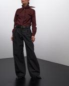 Il pantalone Orlando è un pantalone dal taglio maschile, con gamba dritta e ampia, vita media e dettagli maschili, come la cintura preformata in vita e le tasche sui fianchi, che incontrano la femminilità e l'eleganza senza tempo di un pantalone di qualità.