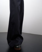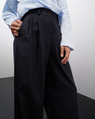 Un pantalone palazzo con gamba ampia, a vita alta, dai forti e irriverenti dettagli maschili, che incontrano la femminilità e l'eleganza senza tempo di un pantalone di qualità.