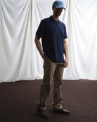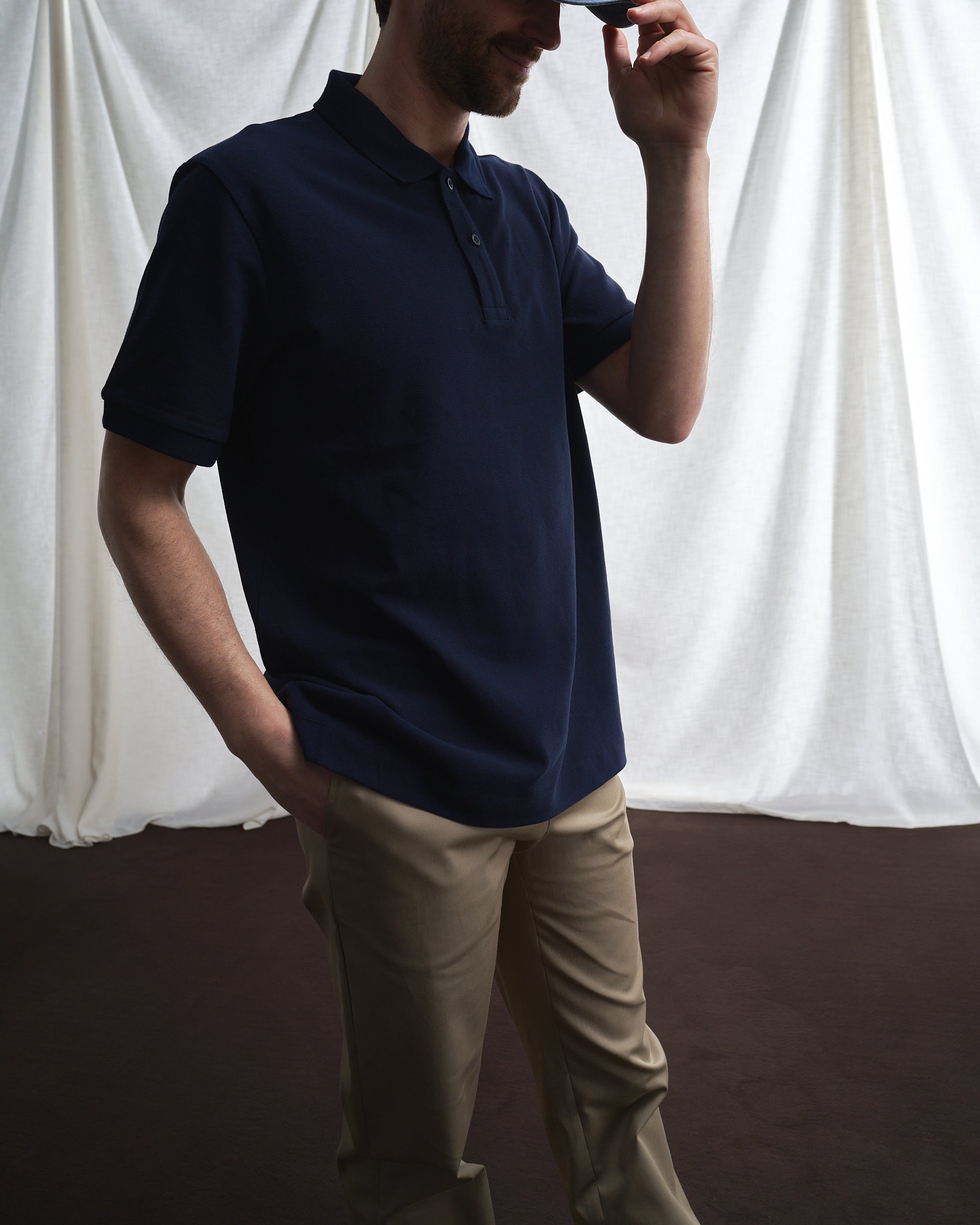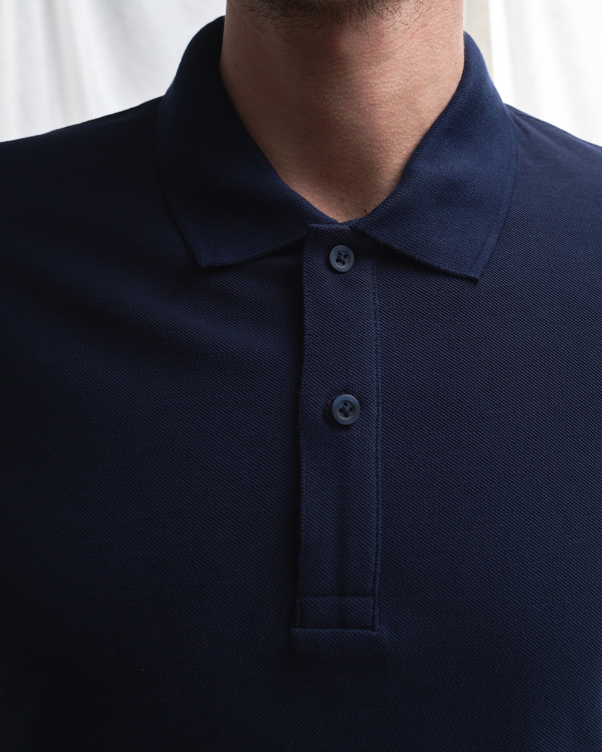 Realizzata in piqué 100% cotone biologico filato e pettinato, presenta un capo lavato e tinto per garantire un aspetto sempre impeccabile. La manica a giro e il dettaglio della costina a maglia piatta su colletto e orlo delle maniche conferiscono una vestibilità curata, mentre il nastro interno in jersey pesante sul retro del collo assicura un supporto extra e una sensazione di comfort superiore. Il cannoncino anteriore inserito con due bottoni in tinta con il corpo aggiunge un tocco di raffinatezza, arricchito dallo spacco e dalla finitura con travetta sull'orlo della cucitura laterale. Inoltre, la cucitura con ago singolo sulle spalle e l'orlo inferiore rifinito con cucitura stretta a doppio ago garantiscono resistenza e durata nel tempo.