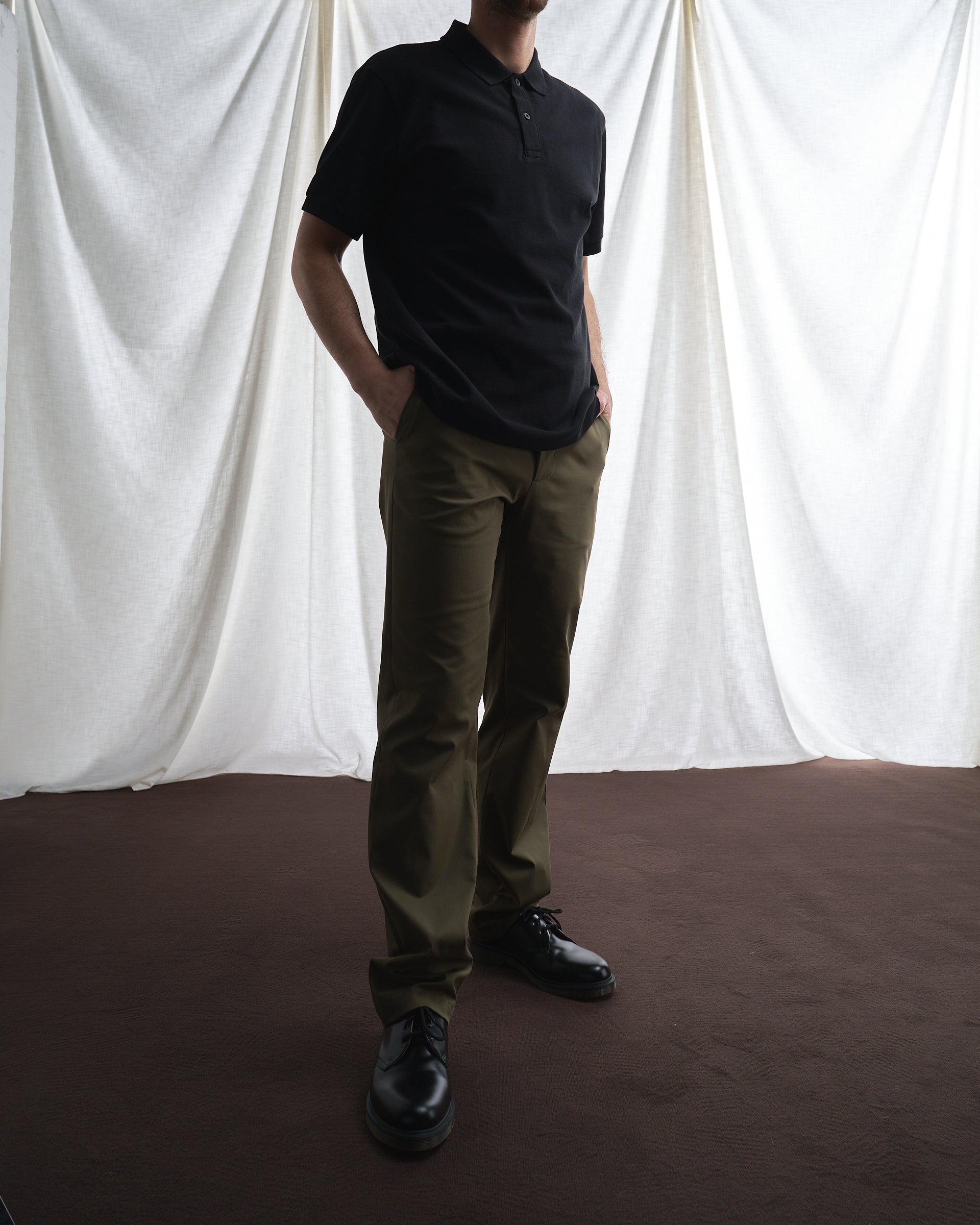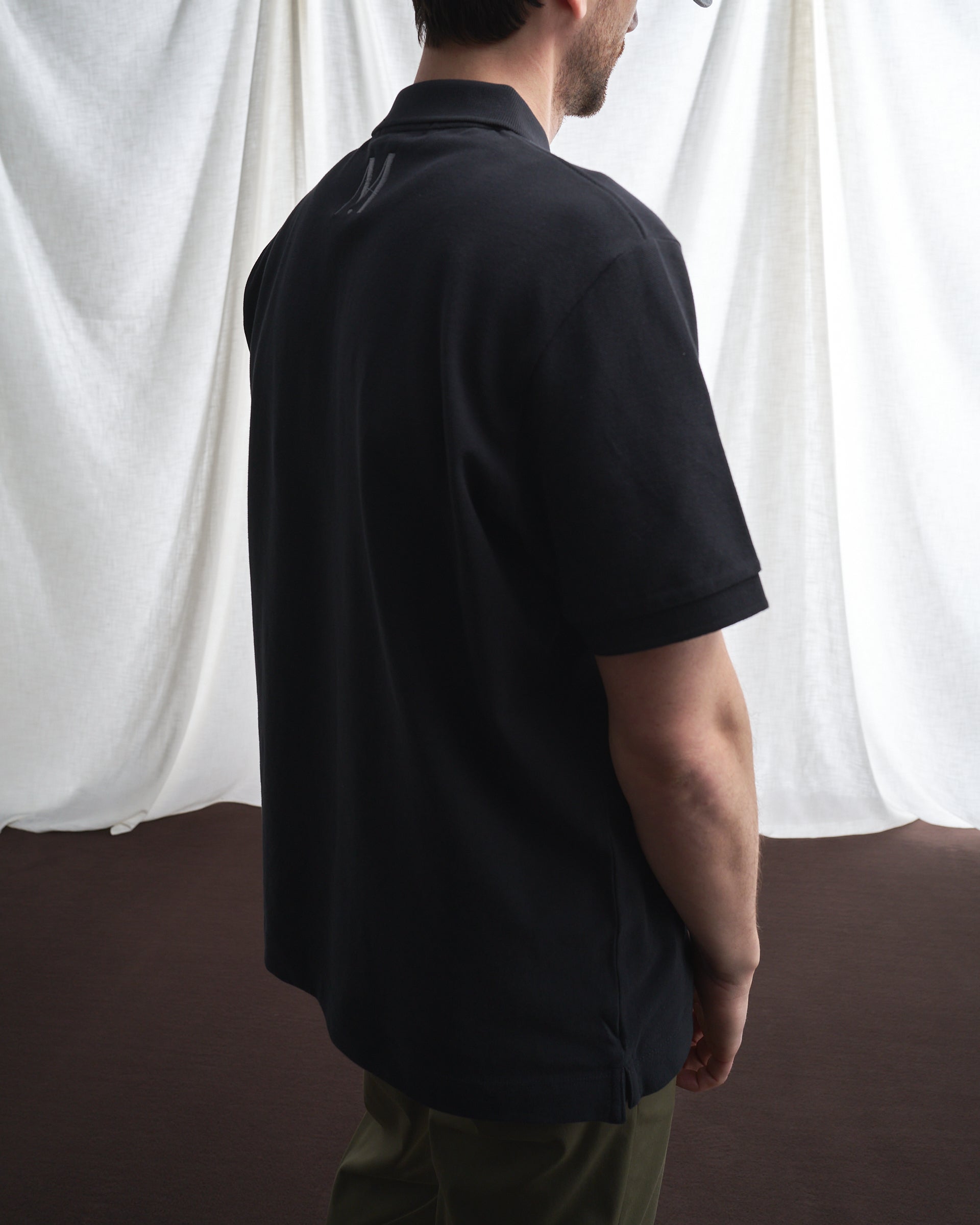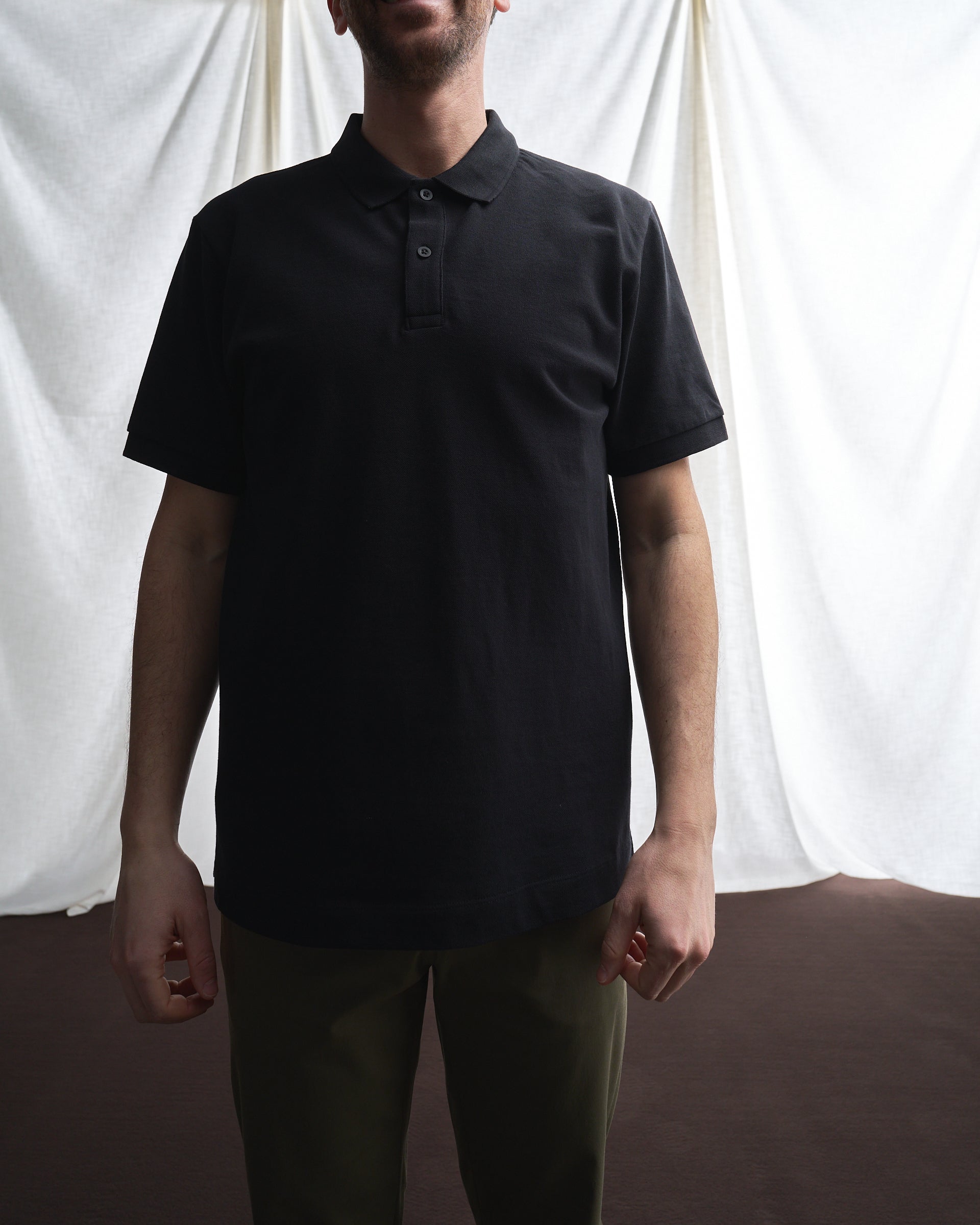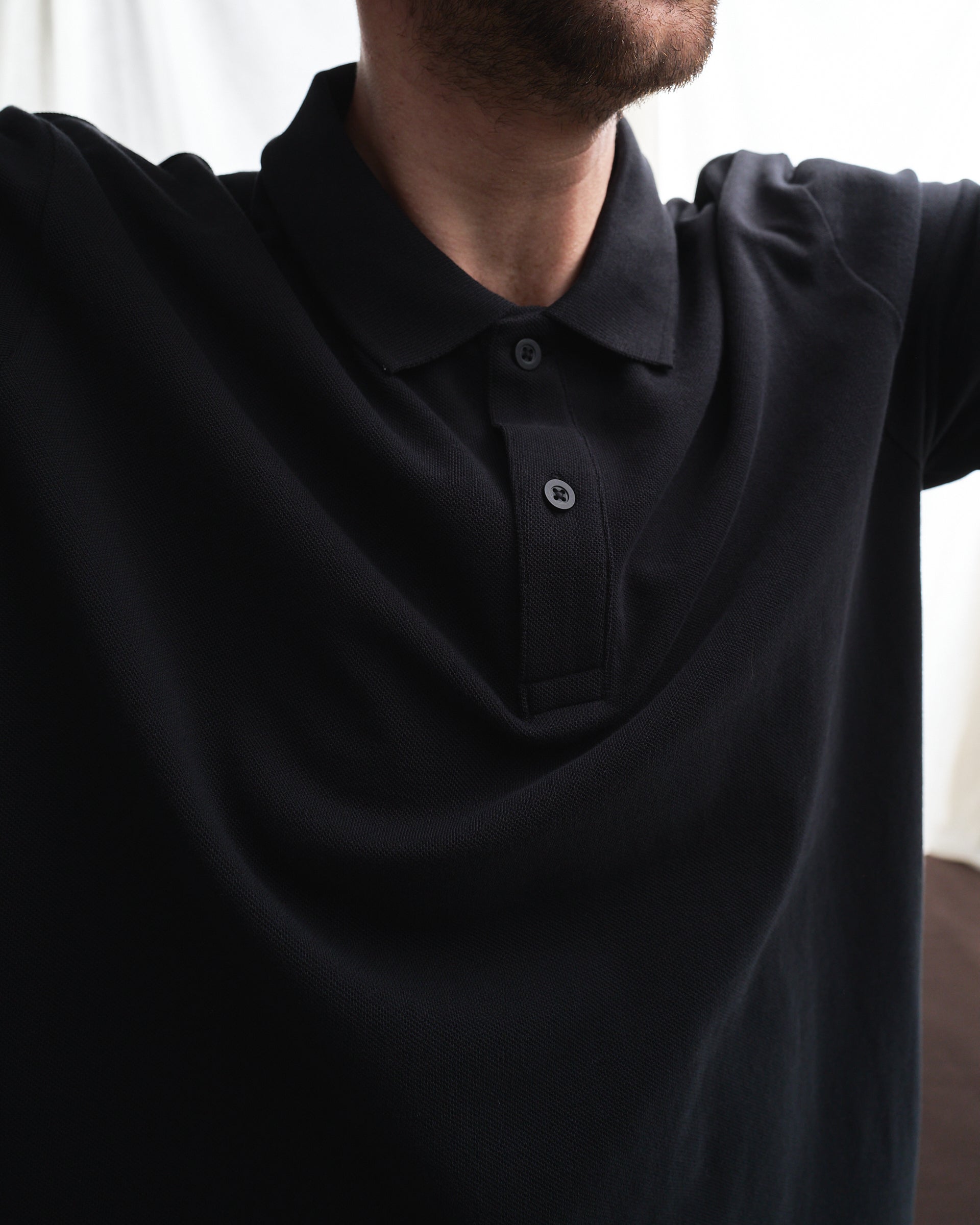 Realizzata in piqué 100% cotone biologico filato e pettinato, presenta un capo lavato e tinto per garantire un aspetto sempre impeccabile. La manica a giro e il dettaglio della costina a maglia piatta su colletto e orlo delle maniche conferiscono una vestibilità curata, mentre il nastro interno in jersey pesante sul retro del collo assicura un supporto extra e una sensazione di comfort superiore. Il cannoncino anteriore inserito con due bottoni in tinta con il corpo aggiunge un tocco di raffinatezza, arricchito dallo spacco e dalla finitura con travetta sull'orlo della cucitura laterale. Inoltre, la cucitura con ago singolo sulle spalle e l'orlo inferiore rifinito con cucitura stretta a doppio ago garantiscono resistenza e durata nel tempo.