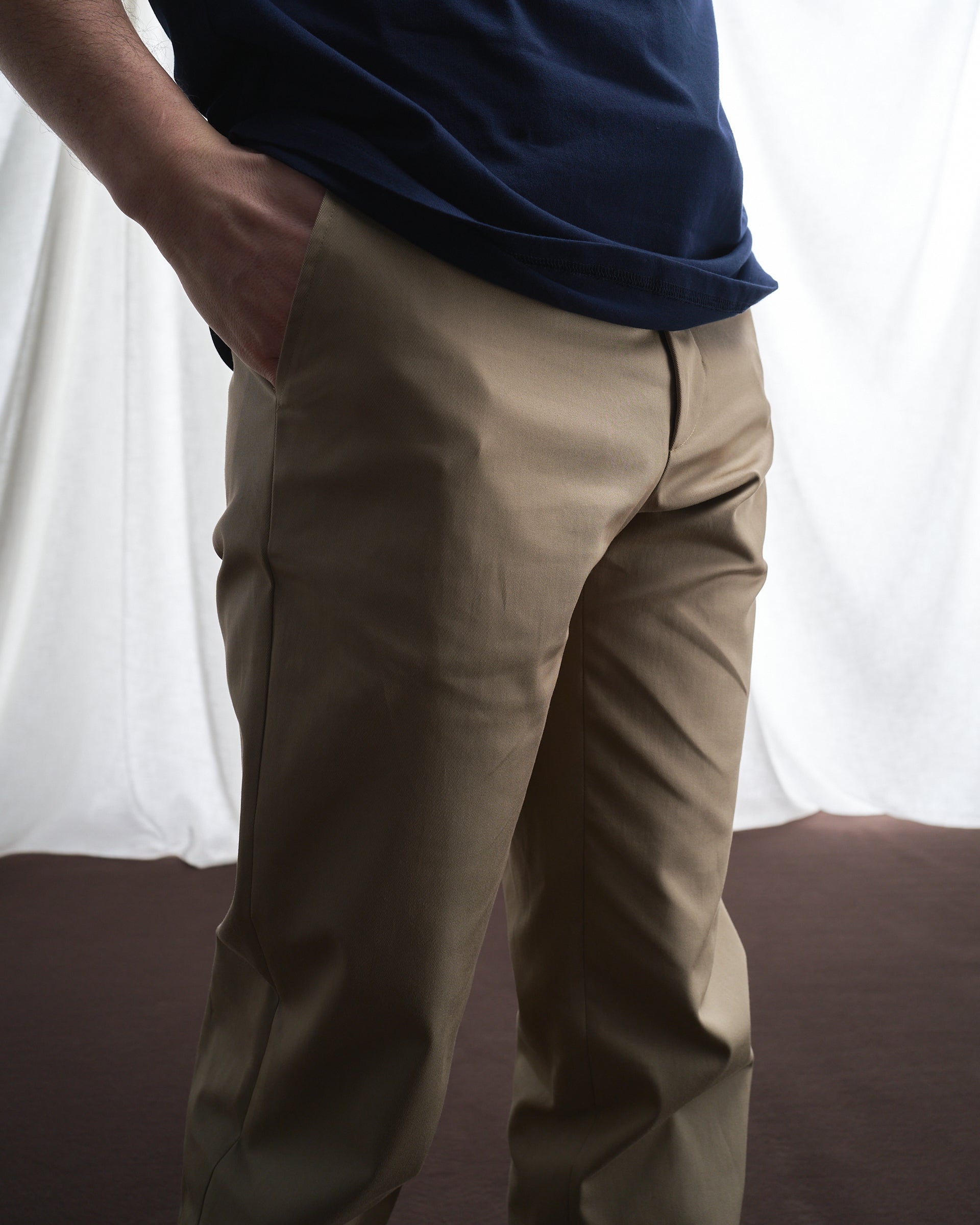 Pantalone a quattro tasche con gamba dritta e vestibilità regolare, un capo classico e imprescindibile, che unisce funzionalità e stile.